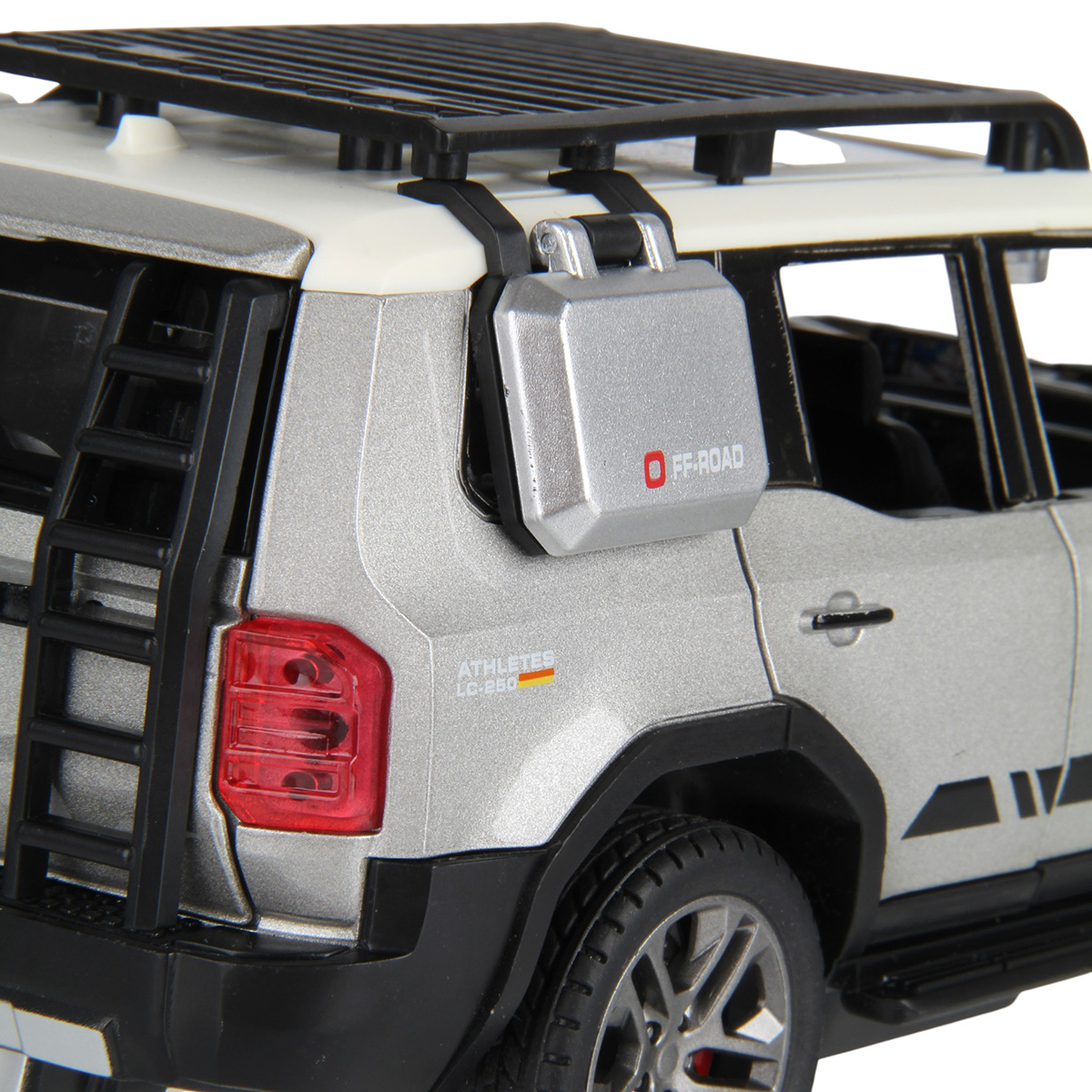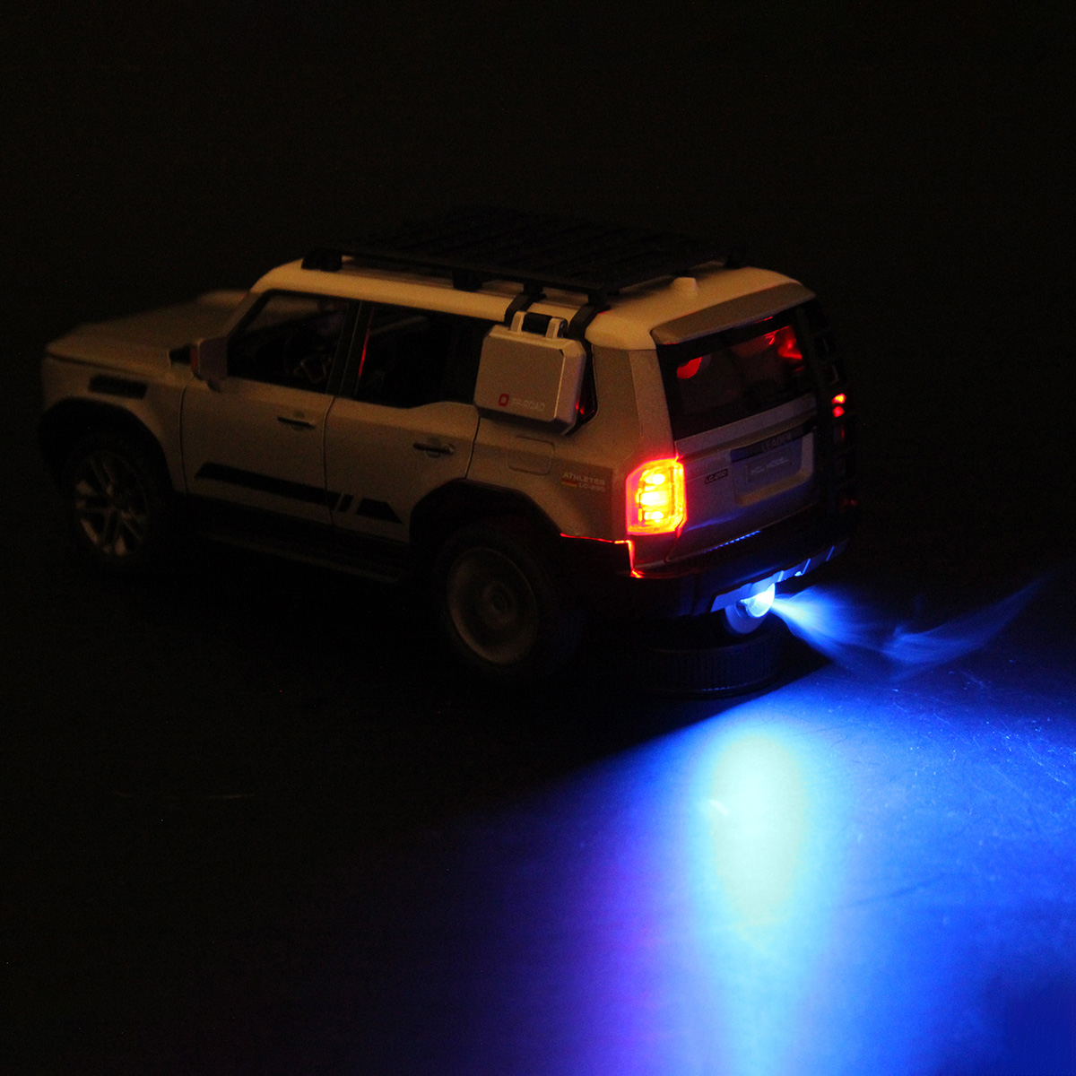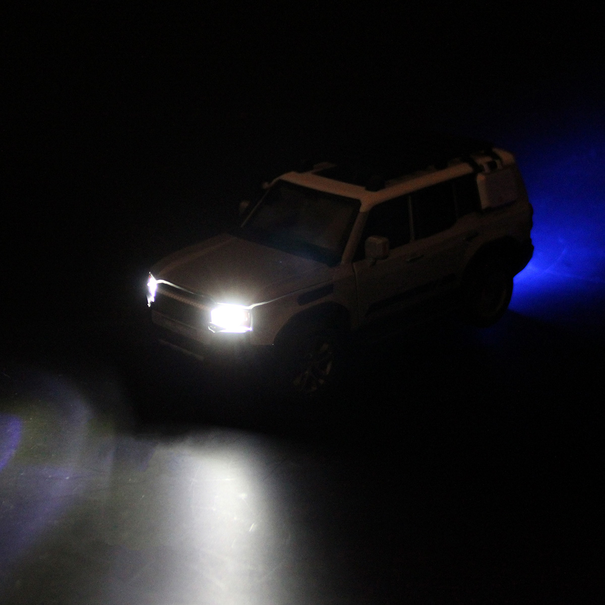 1. Машинка катается во все стороны. При движении вперёд у машинки подсвечиваются передние фары, при движении назад подсвечиваются задние фары. Задний привод, передние колеса поворачивают. Колеса прорезиненные.