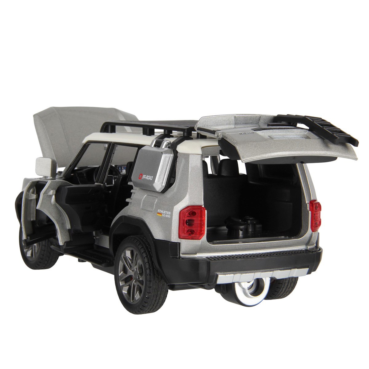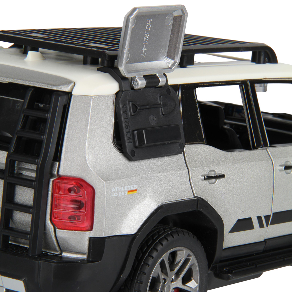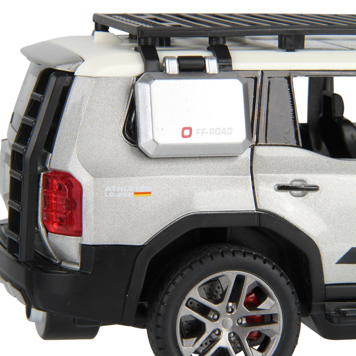 1. Машинка катается во все стороны. При движении вперёд у машинки подсвечиваются передние фары, при движении назад подсвечиваются задние фары. Задний привод, передние колеса поворачивают. Колеса прорезиненные.