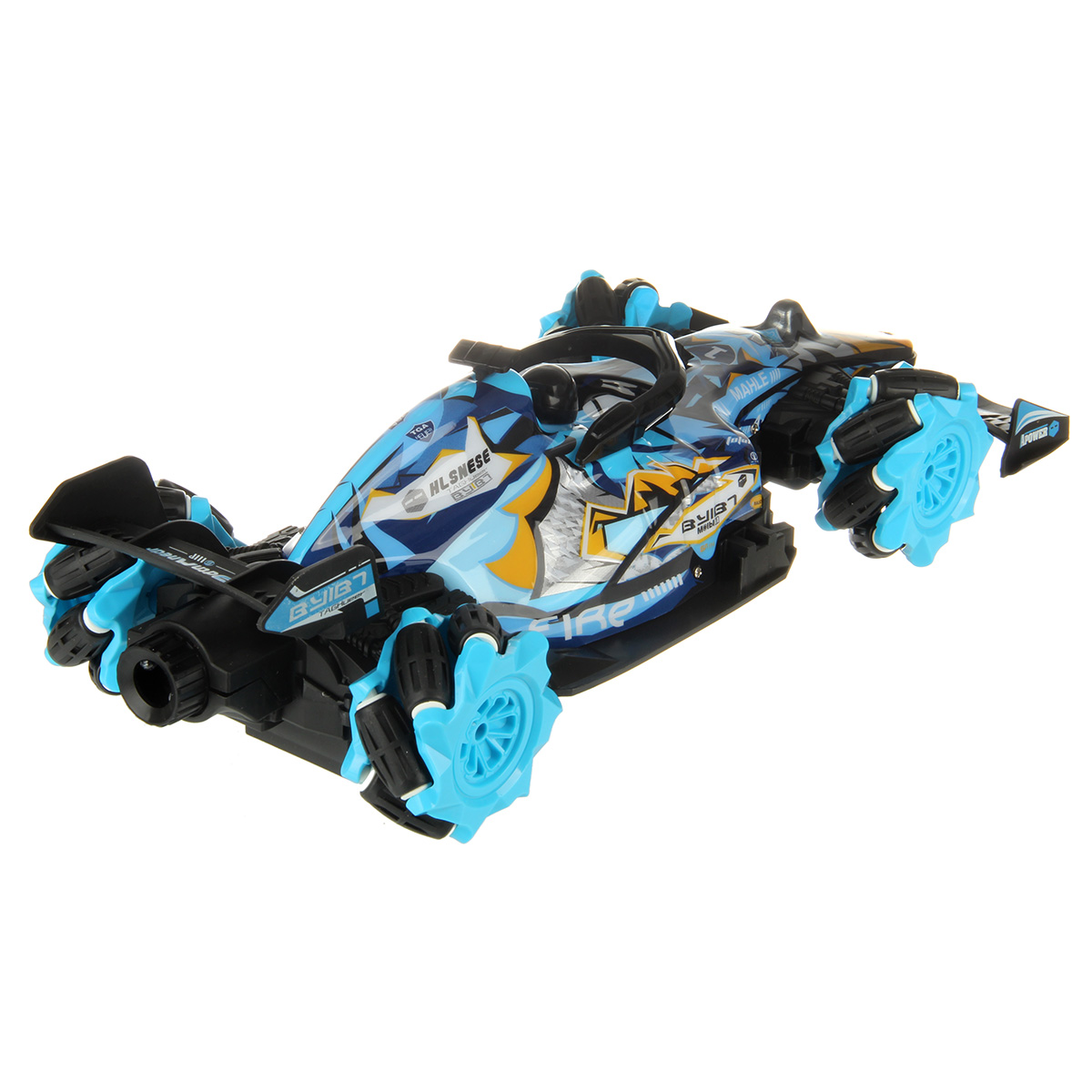 В комплекте машинка, пульт управления, аккумулятор для машинки, USB кабель для зарядки, бутылочка для воды.