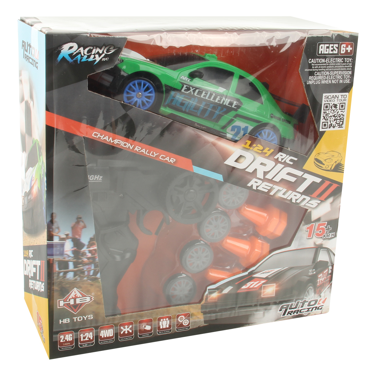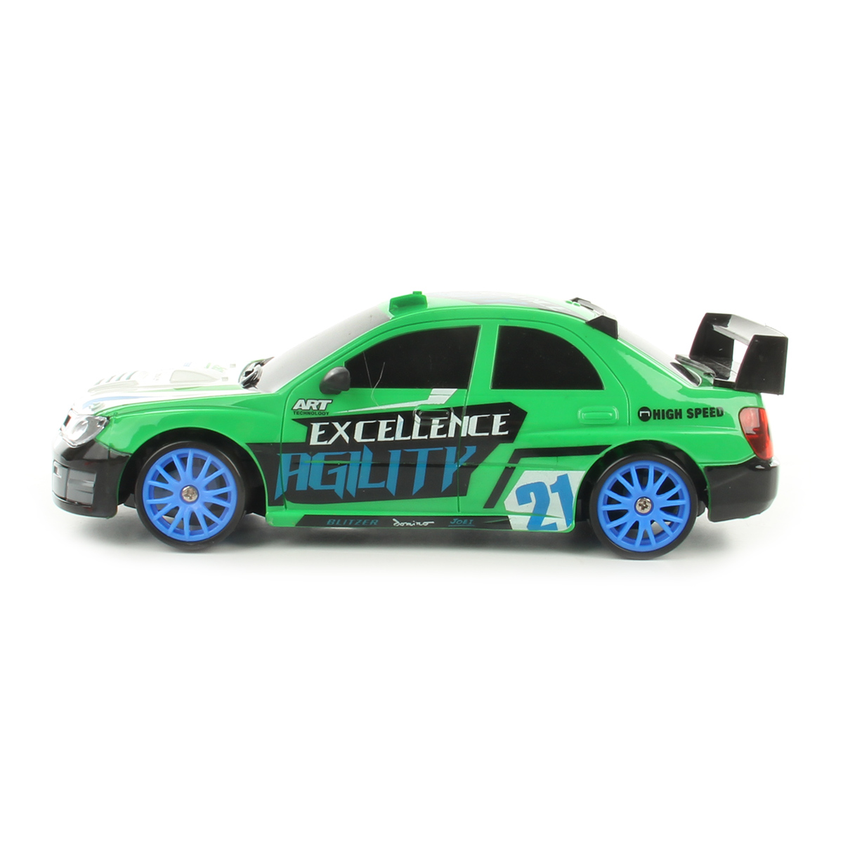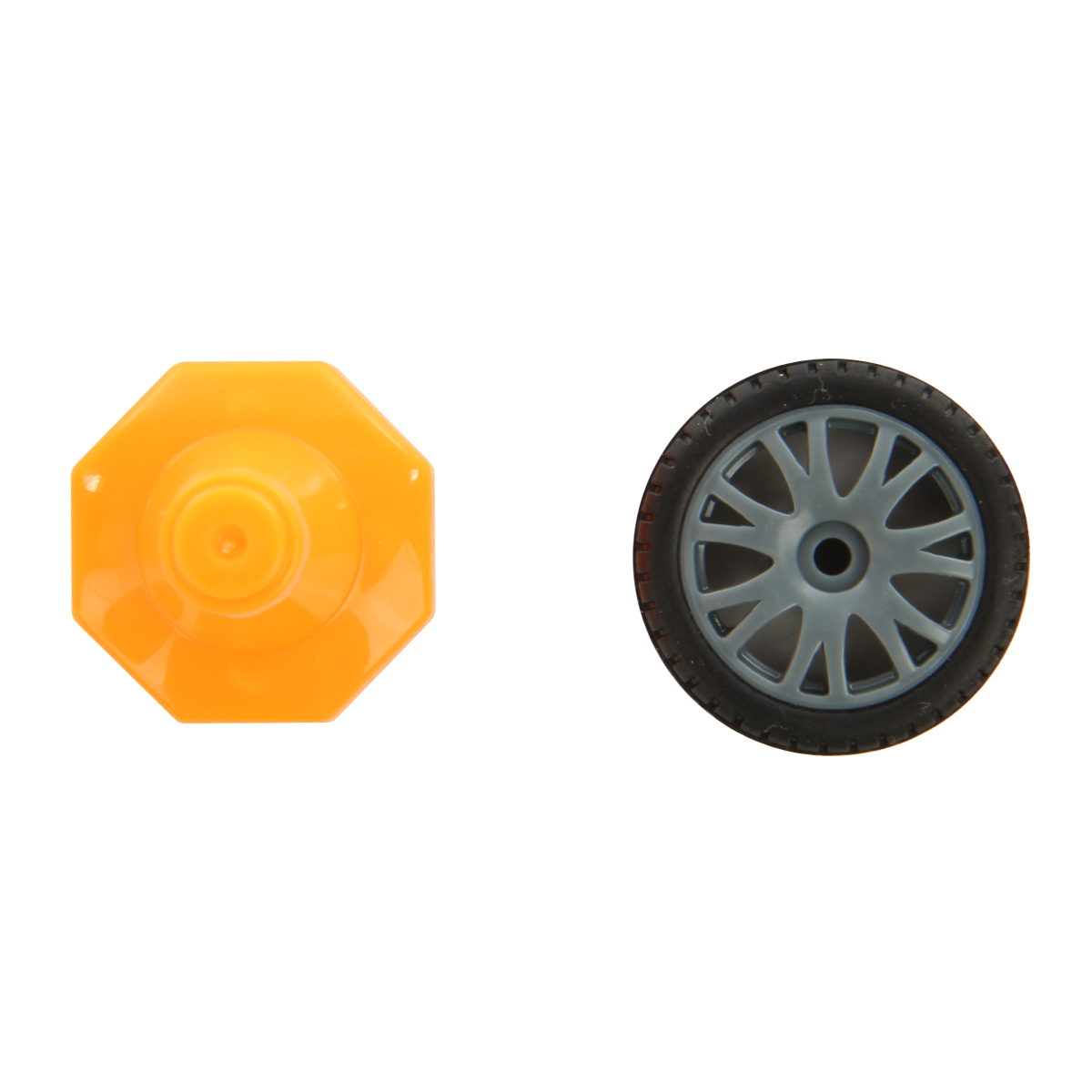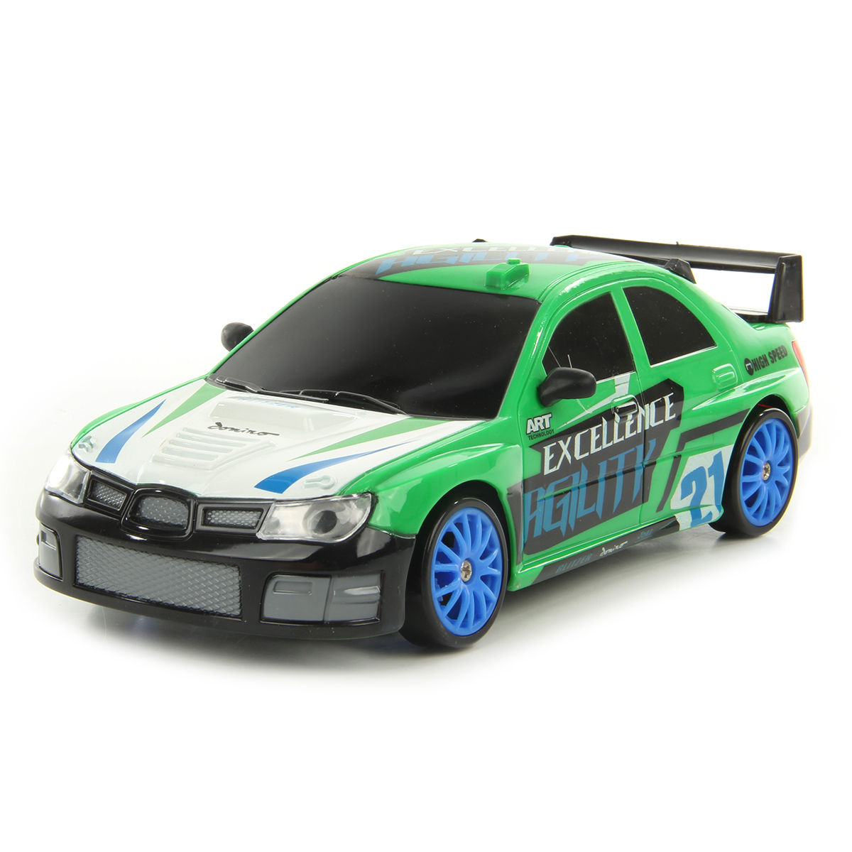 В наборе машинка, пульт управления, 4 прорезиненных колеса, 6 конусов, инструкция на английском и китайском языках.
