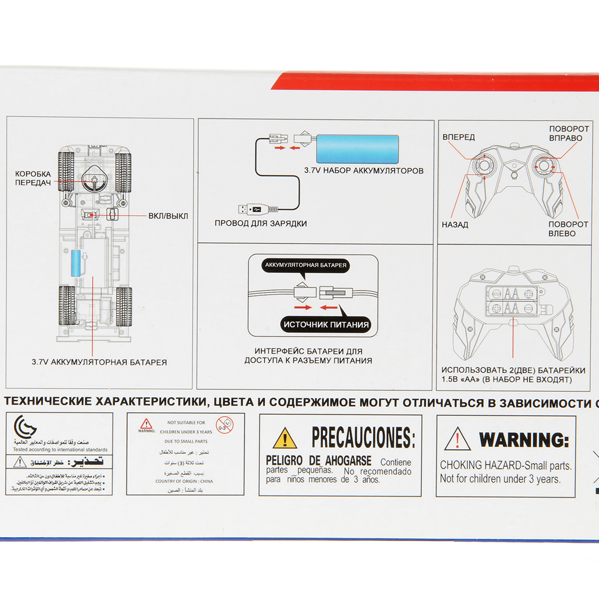 В наборе машина, пульт управления, аккумулятор 3.7V, USB кабель.