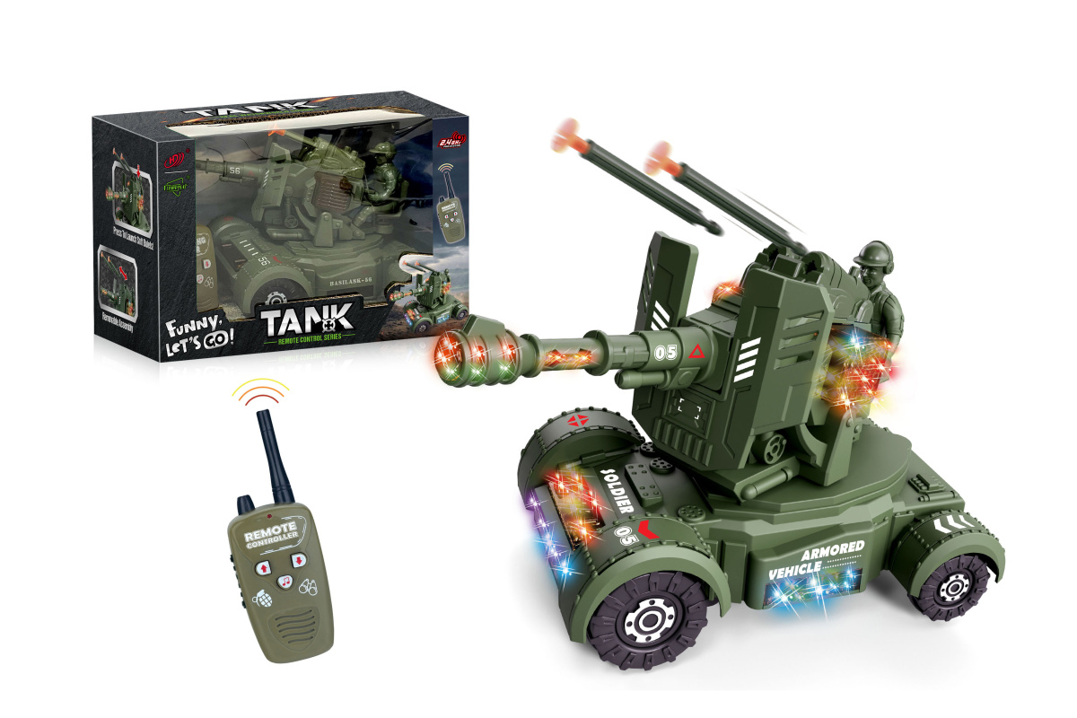 Танк игрушечный со множеством функций, едет вперед, поворачивает башню, стрельба снарядами, безопасные снаряды.