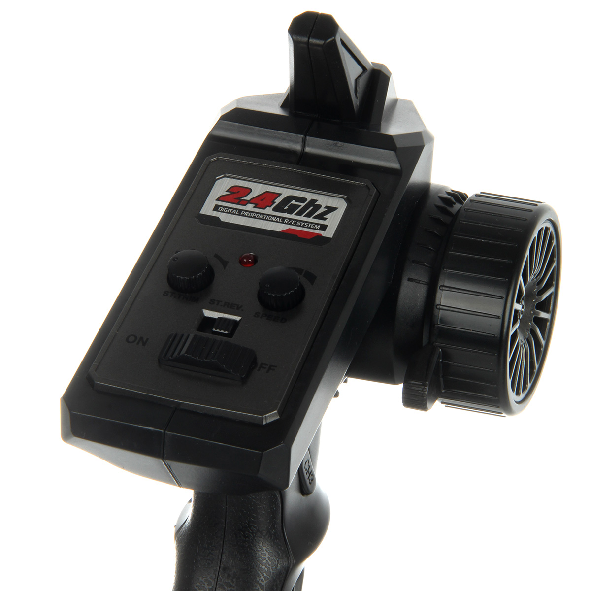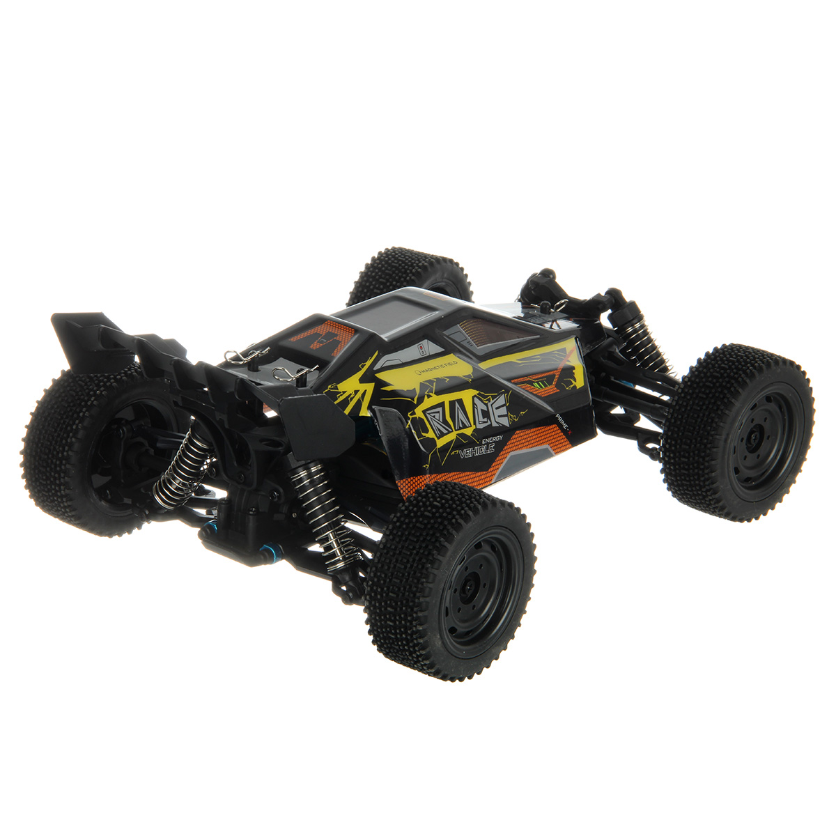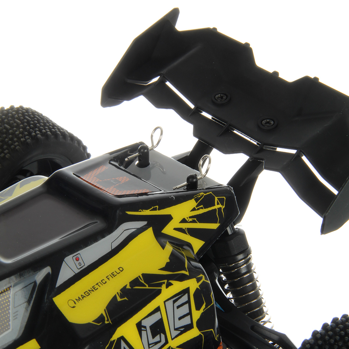 1. Кнопка включения находится под корпусом машинки на подвеске. Машина очень маневренная и мобильная. Быстрый разгон обеспечивает мотор RC390.