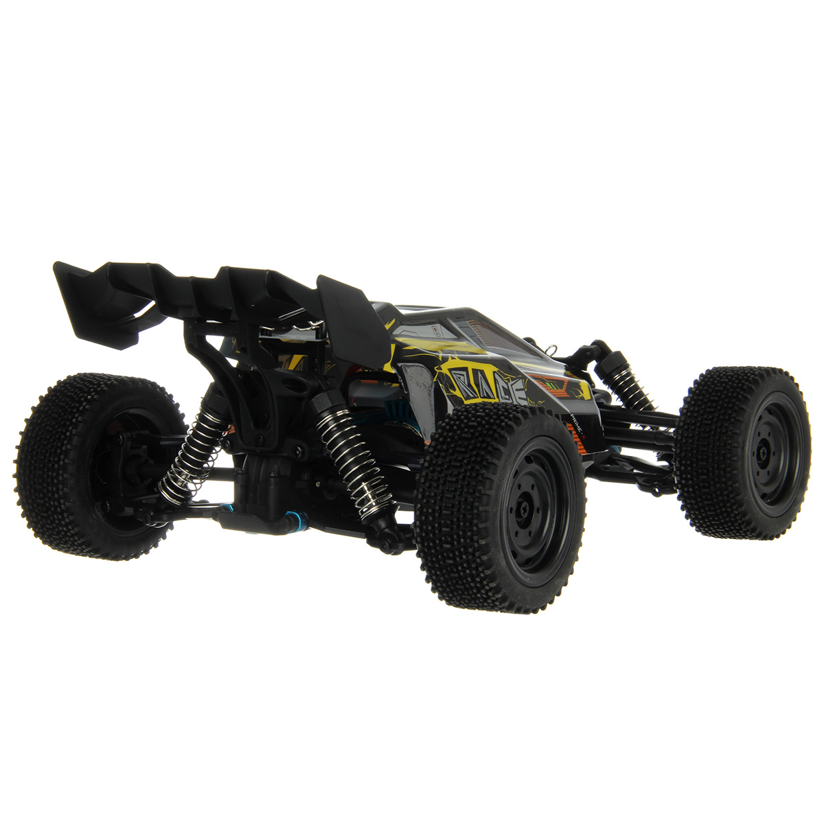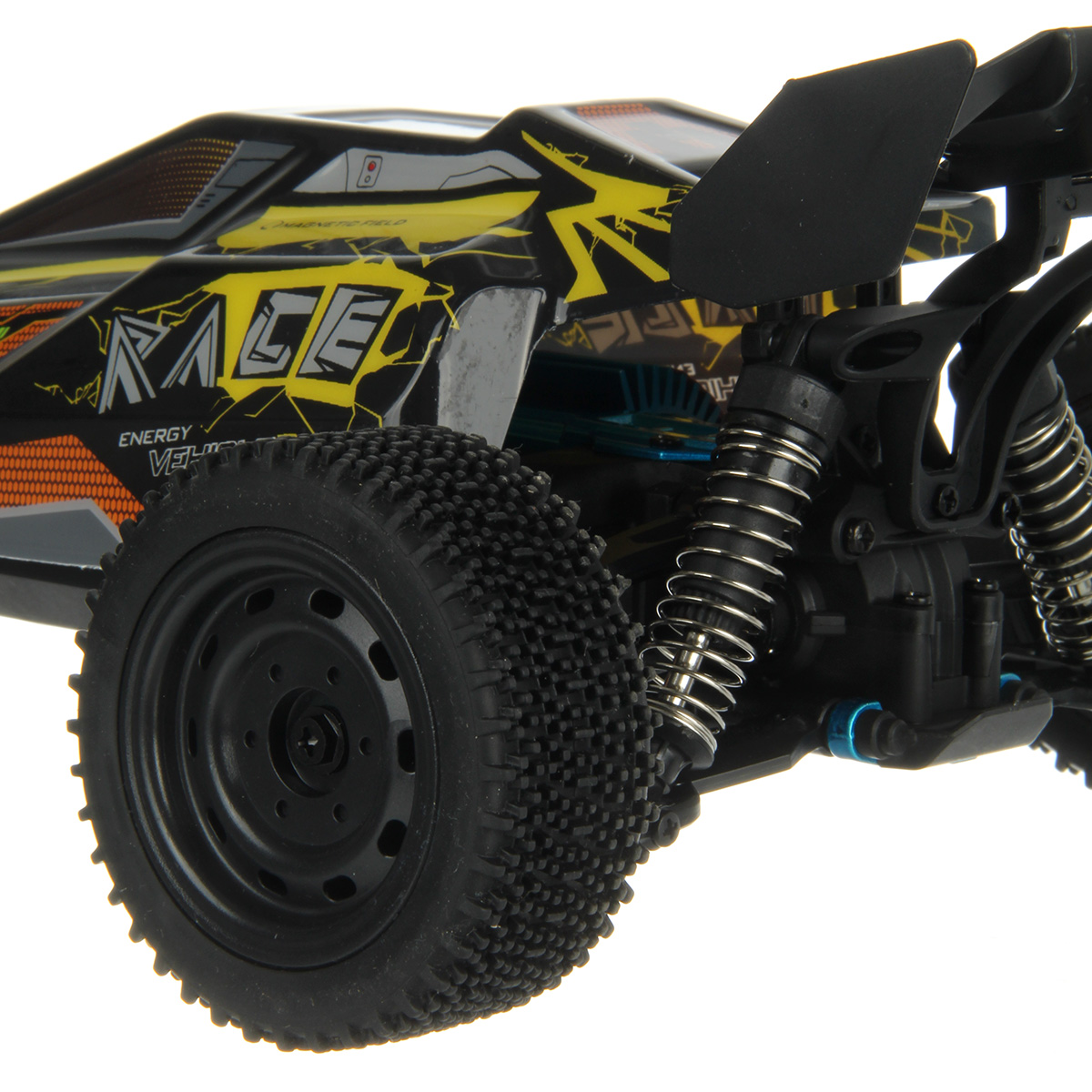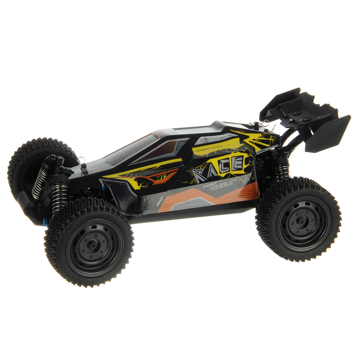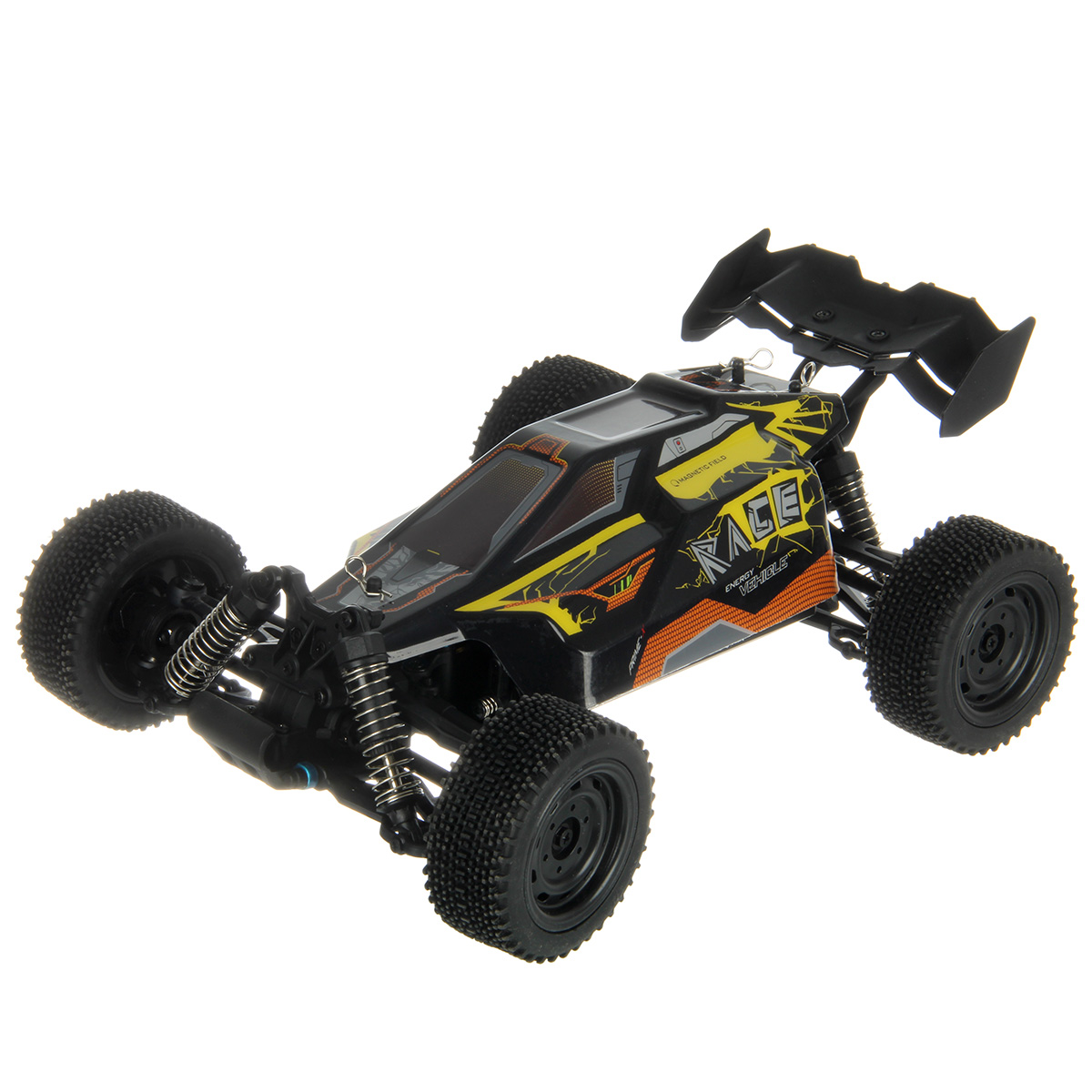 1. Кнопка включения находится под корпусом машинки на подвеске. Машина очень маневренная и мобильная. Быстрый разгон обеспечивает мотор RC390.