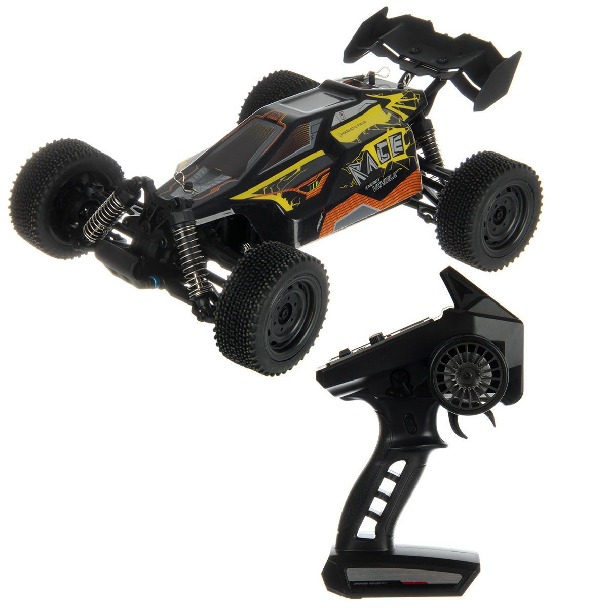 Трагги, это мощная машина, сочетающая в себе характеристики гоночного автомобиля и монстр трака. Максимальная скорость до 40 км в час, быстрый разгон машинки, движение во все стороны, полный привод, прорезиненные колеса с агрессивным протектором, что повышает проходимость машины на неровном рельефе дороги. Идеальное решение для езды по ровным дорогам и бездорожью. Переключение реверса управления, увеличение и уменьшение скорости, амортизация, 4 независимые подвески на каждое колесо, пропорциональное управление. Полностью разборная машина с карбоновым мотором, усиленным алюминием корпусом и сервомотором, есть металлический дифференциал и подшипники, мотор с радиатором охлаждения. Машина имеет влагозащиту, изготовлена из антикоррозийных и высокопрочных материалов, армированного нейлона, алюминия и полимера.
