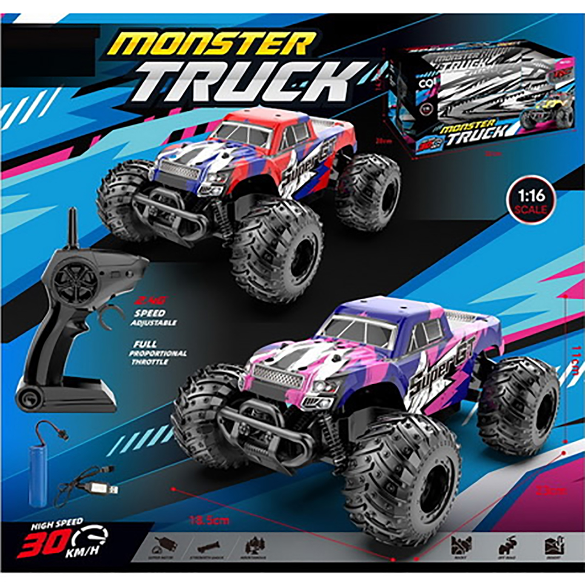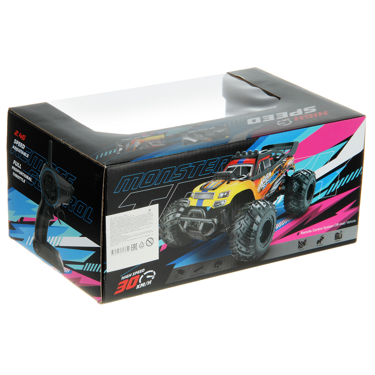 Машинка на радиоуправлении в оригинальном дизайне и красивой расцветке. Радиоуправляемая машина с движением во все стороны, имеет полые прорезиненные шины, пропорциональное управление скоростью, переднюю независимую подвеску, корпус машинки сменный. Машинка вездеход, может подниматься в гору под уклоном в 45 градусов, широкие шины с протектором, пульт удобно ложится в руки. Детская игрушка изготовлена из прочных и долговечных материалов, отличается качественным исполнением. Машина на пульте управления станет замечательным подарком мальчику на Новый год, День рождения, 23 февраля.