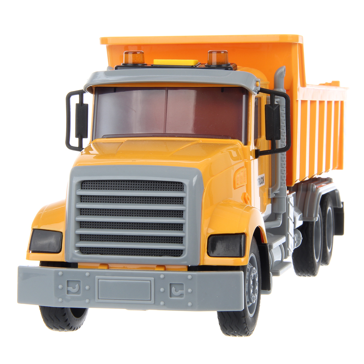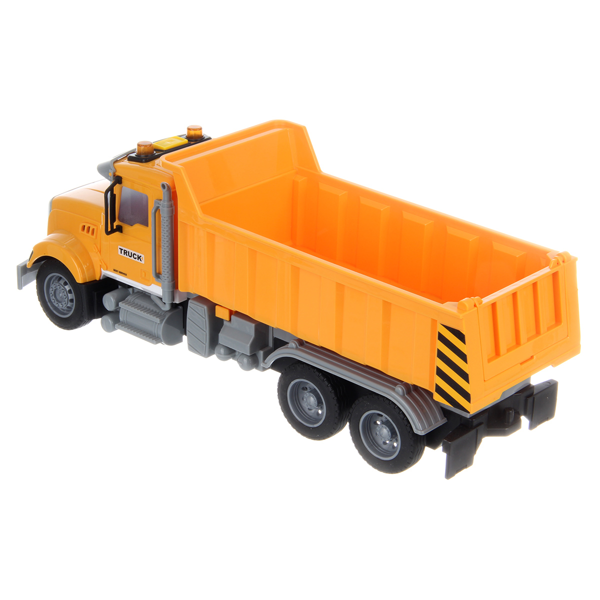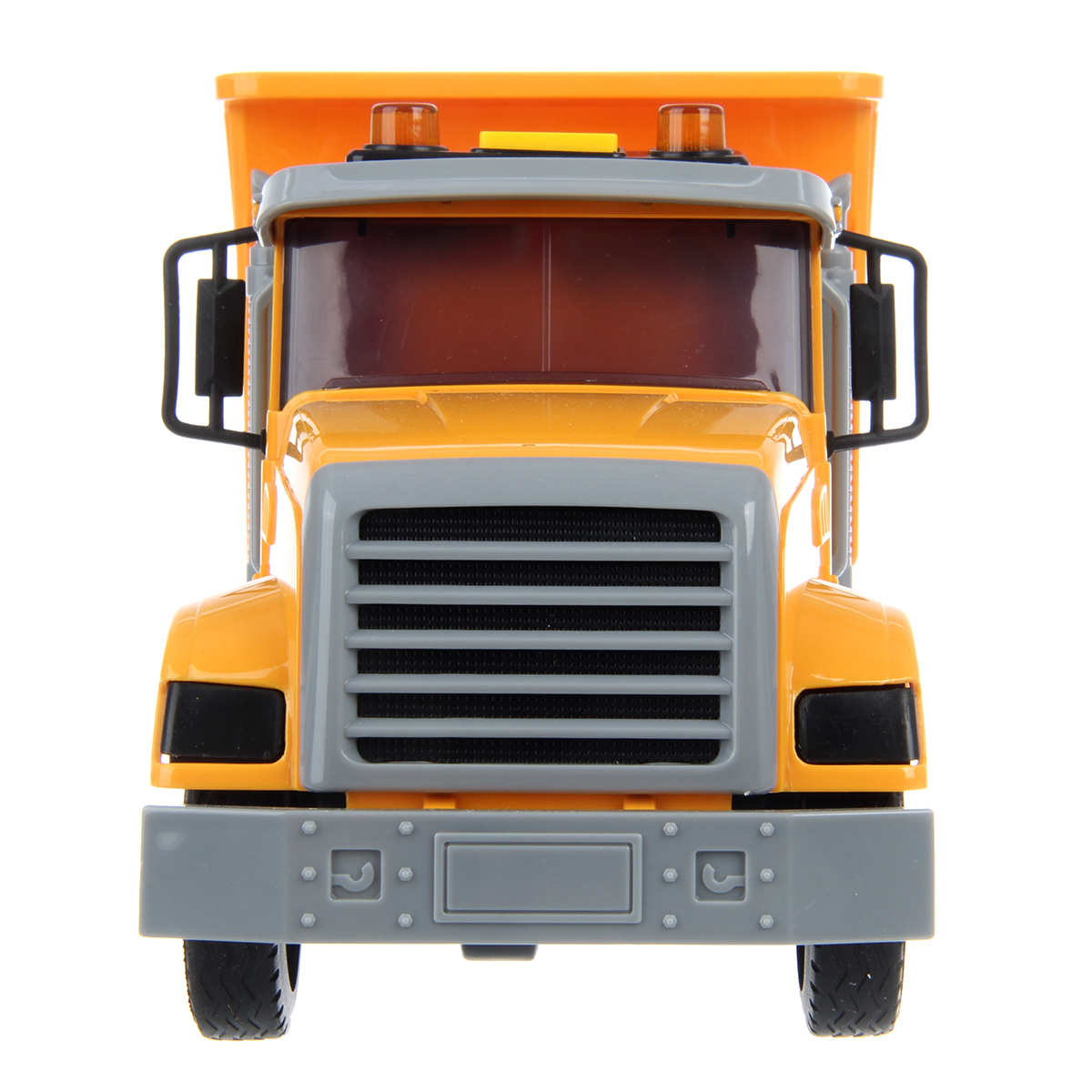 1. Самосвал катается вперед и назад, оснащен фрикционным механизмом, колеса прорезинены, боковые зеркала мягкие.