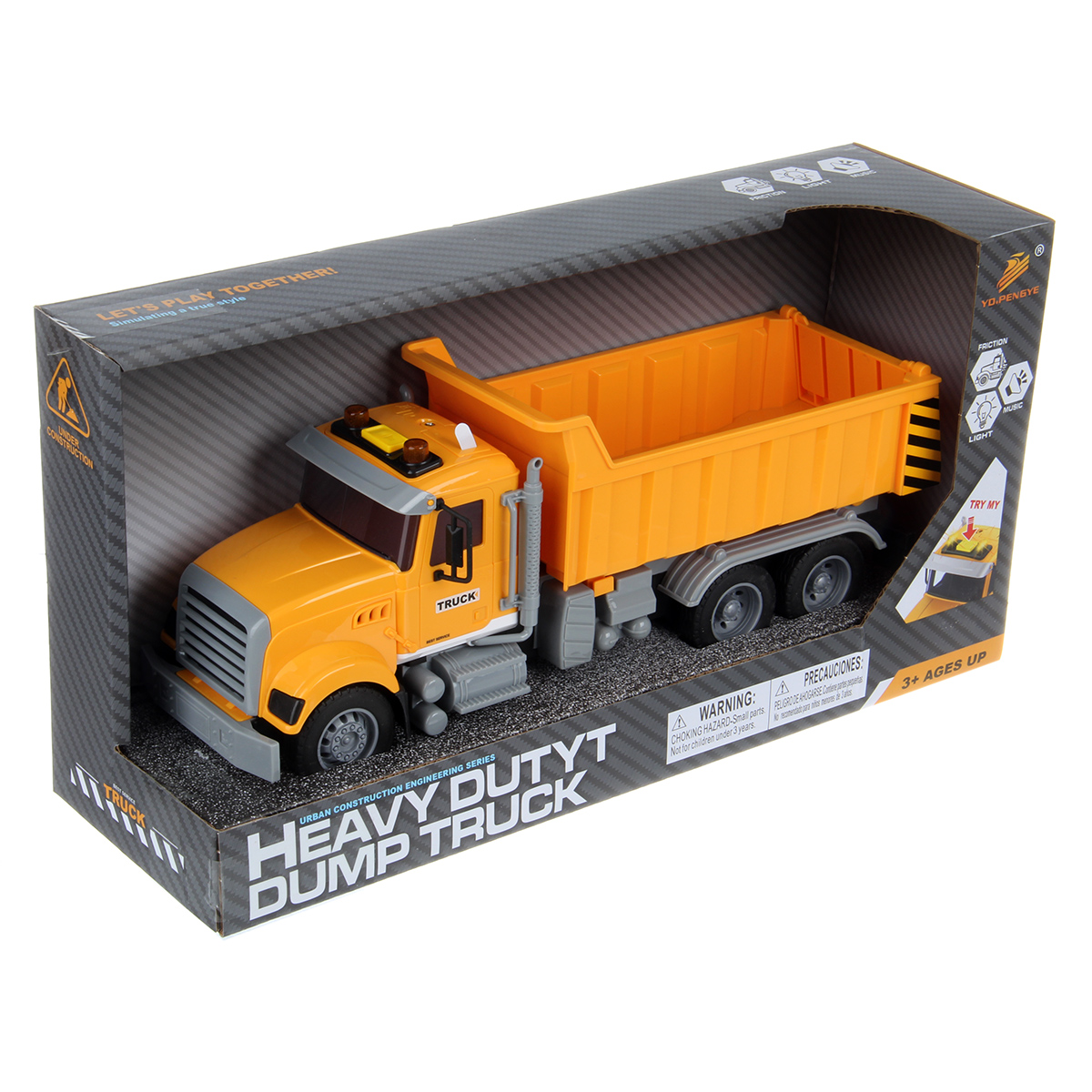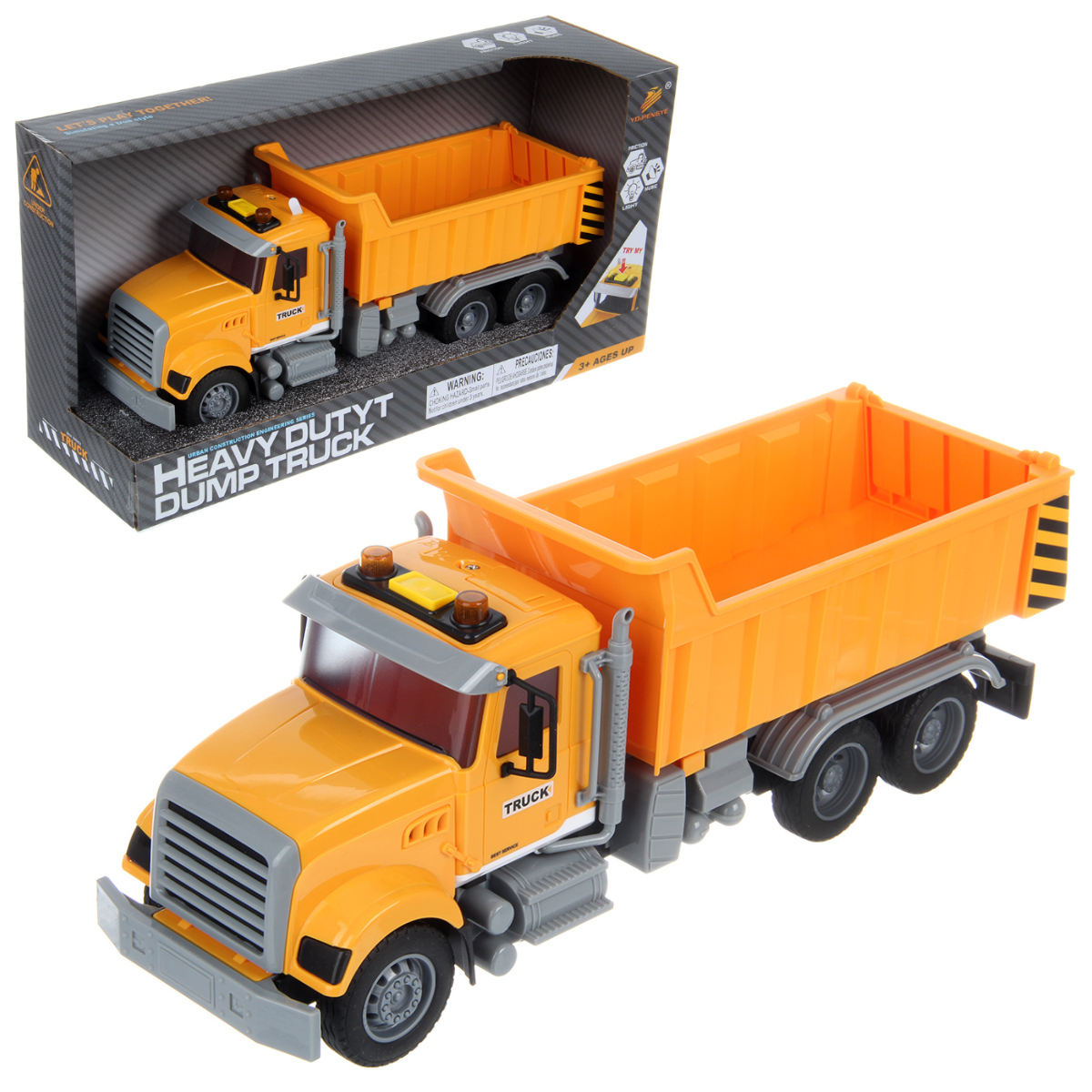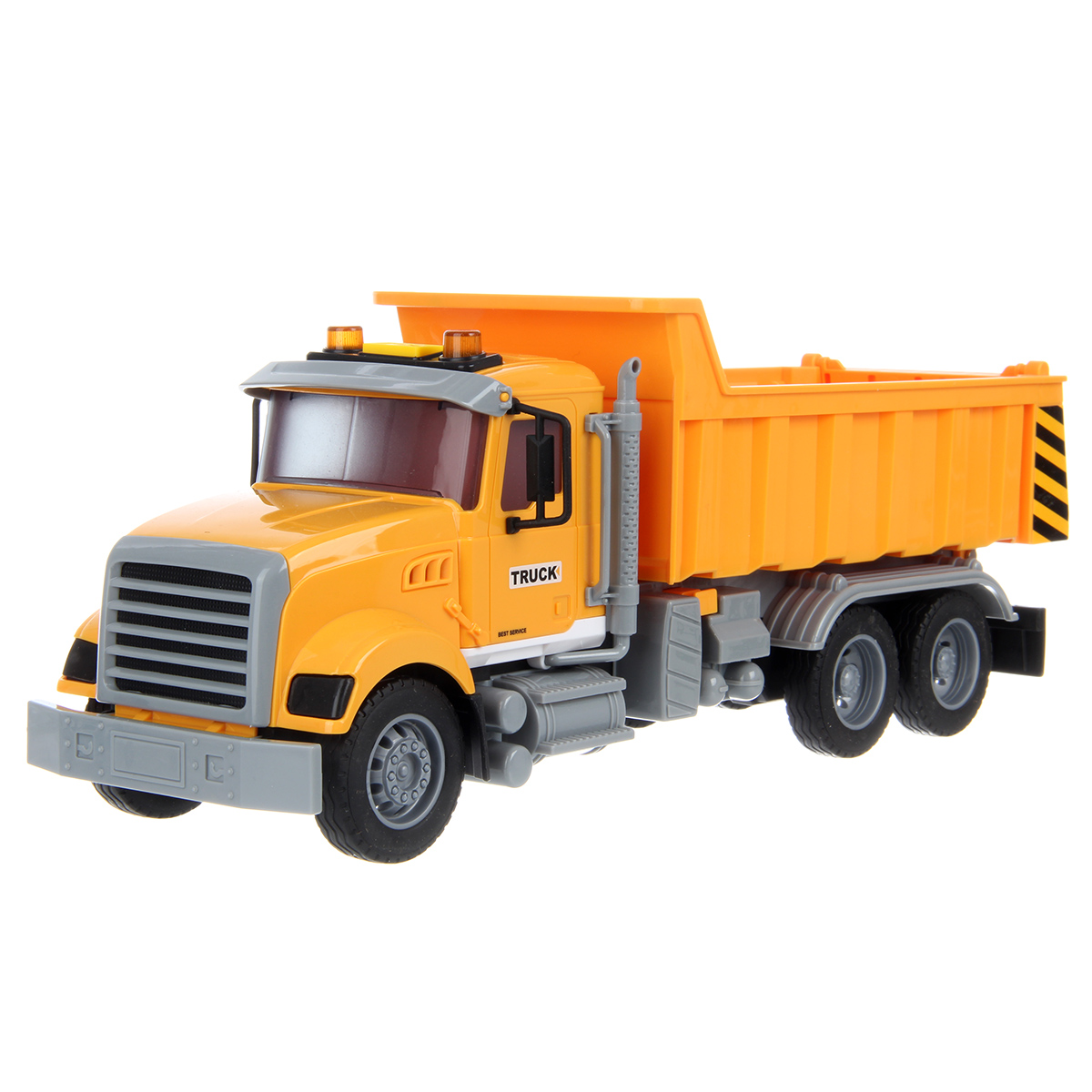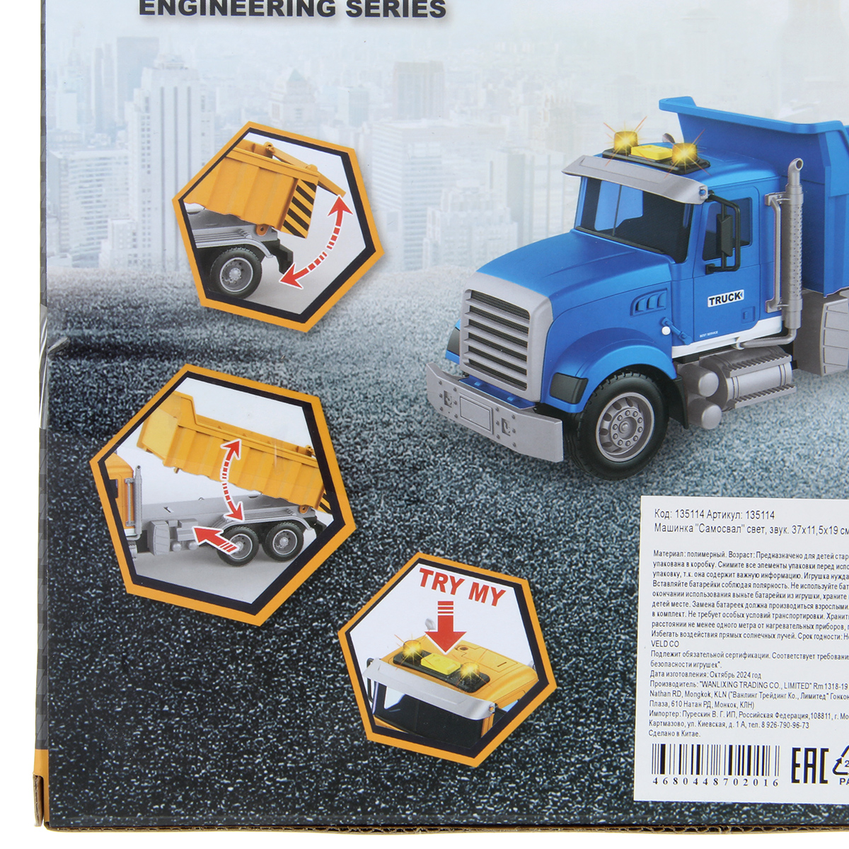 1. Самосвал катается вперед и назад, оснащен фрикционным механизмом, колеса прорезинены, боковые зеркала мягкие.