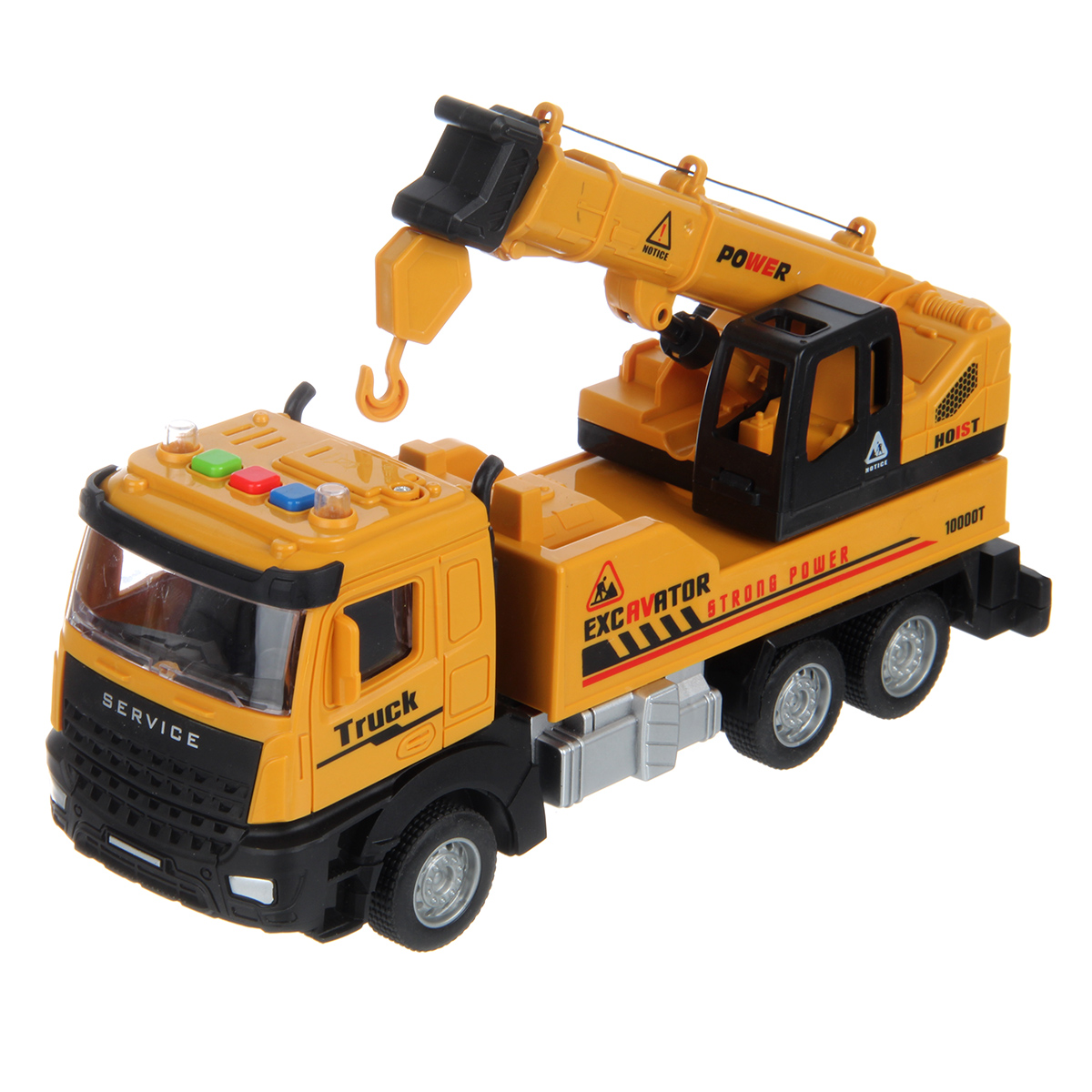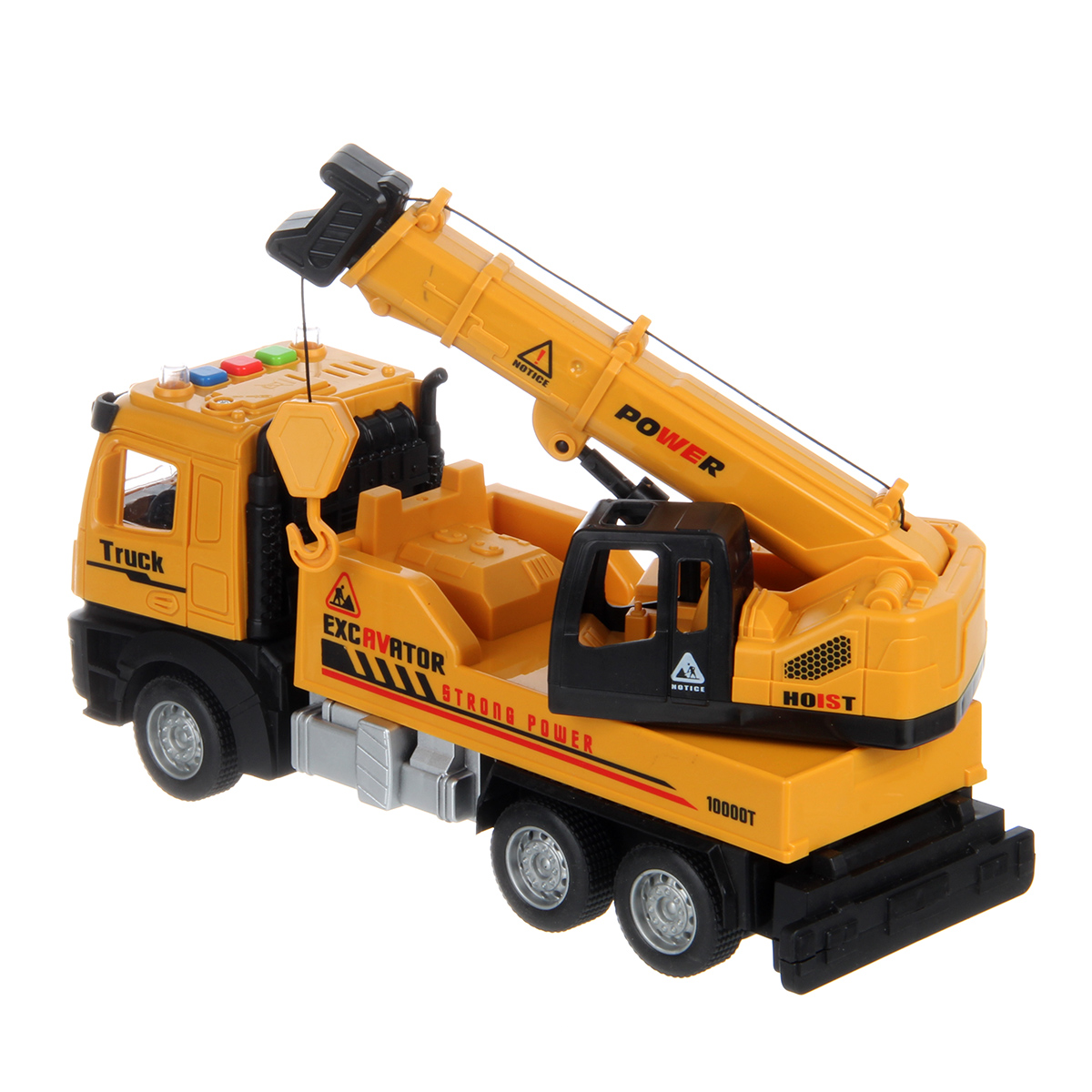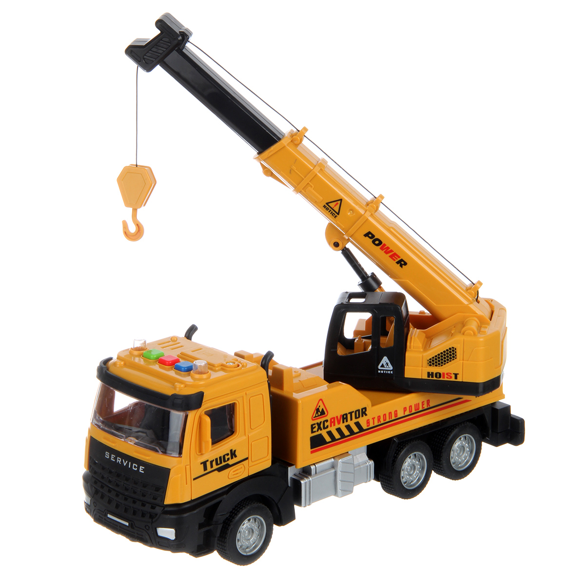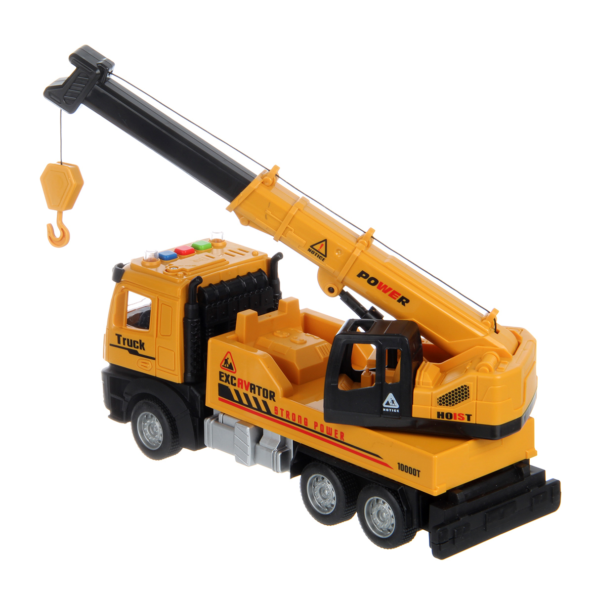 Фрикционная машинка со звуковыми эффектами, красивой подсветкой лампочек и подвижными деталями. Игрушка автокран с выдвижной стрелой, веревка с крюком опускается с помощью рычага, игрушечная спецтехника выполнена в реалистичном дизайне и красивой расцветке. Игрушечный автокран с прорезиненными колесами изготовлен из прочных и долговечных материалов. Игрушечная машина станет замечательным подарком на Новый год и День рождения, поставляется в красивой упаковке.