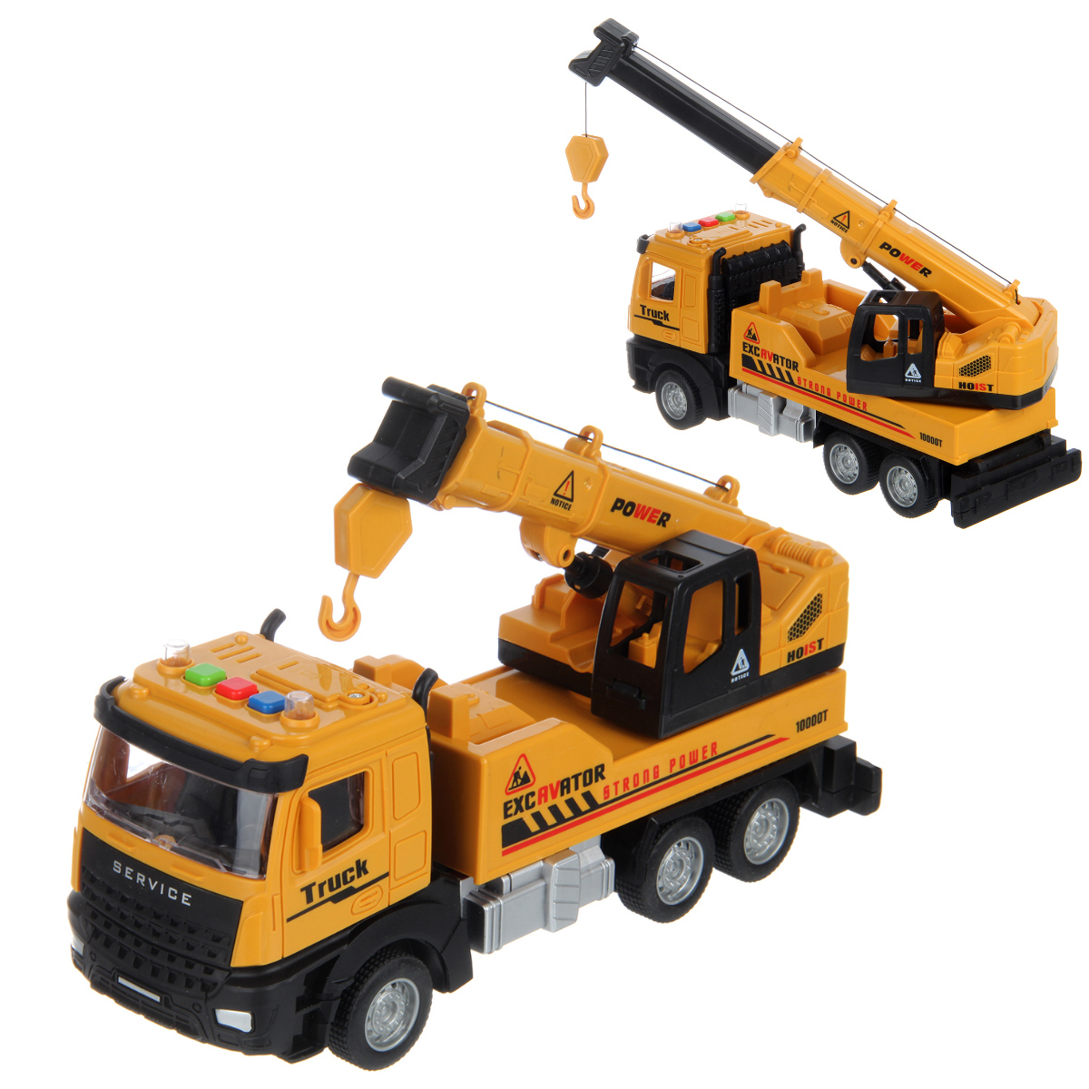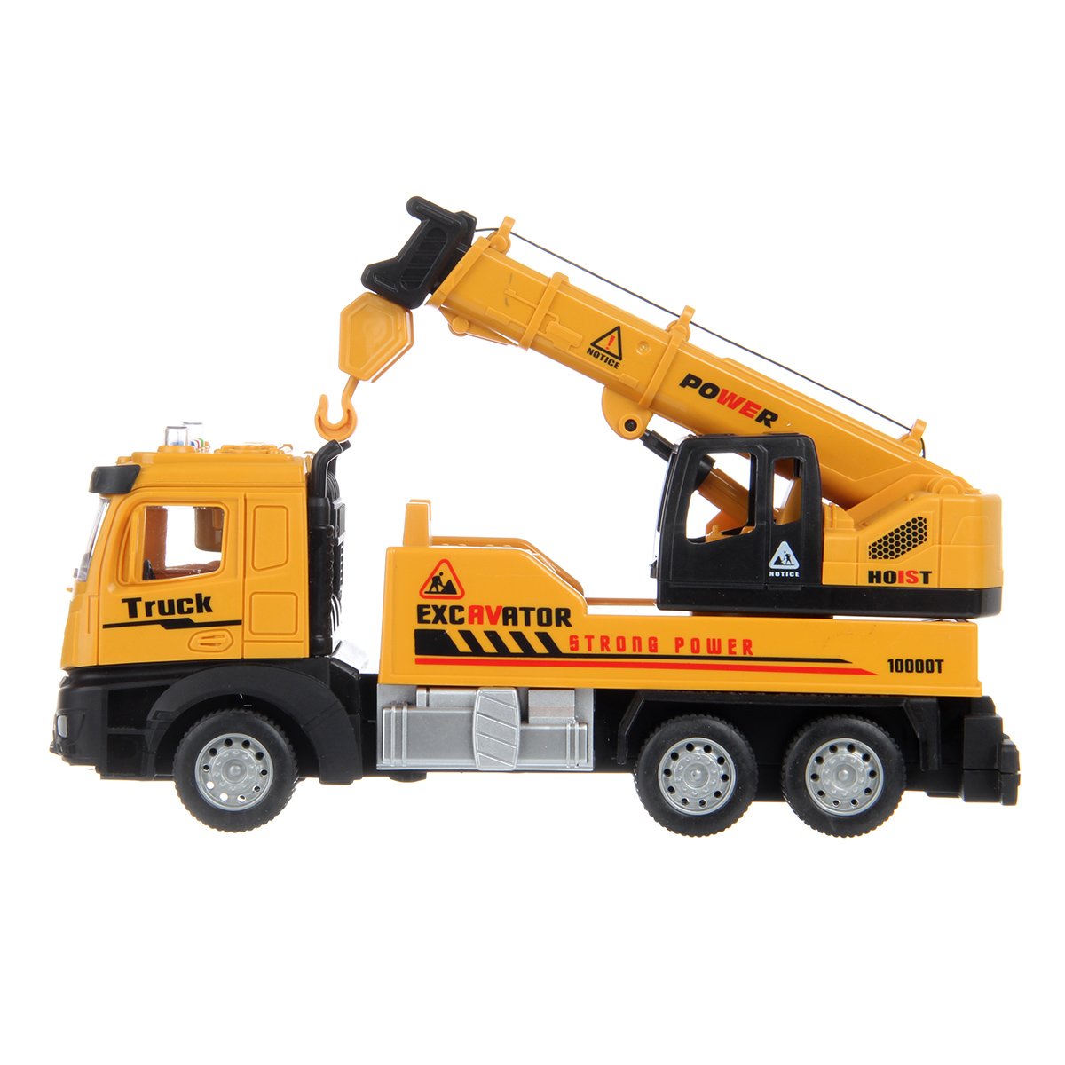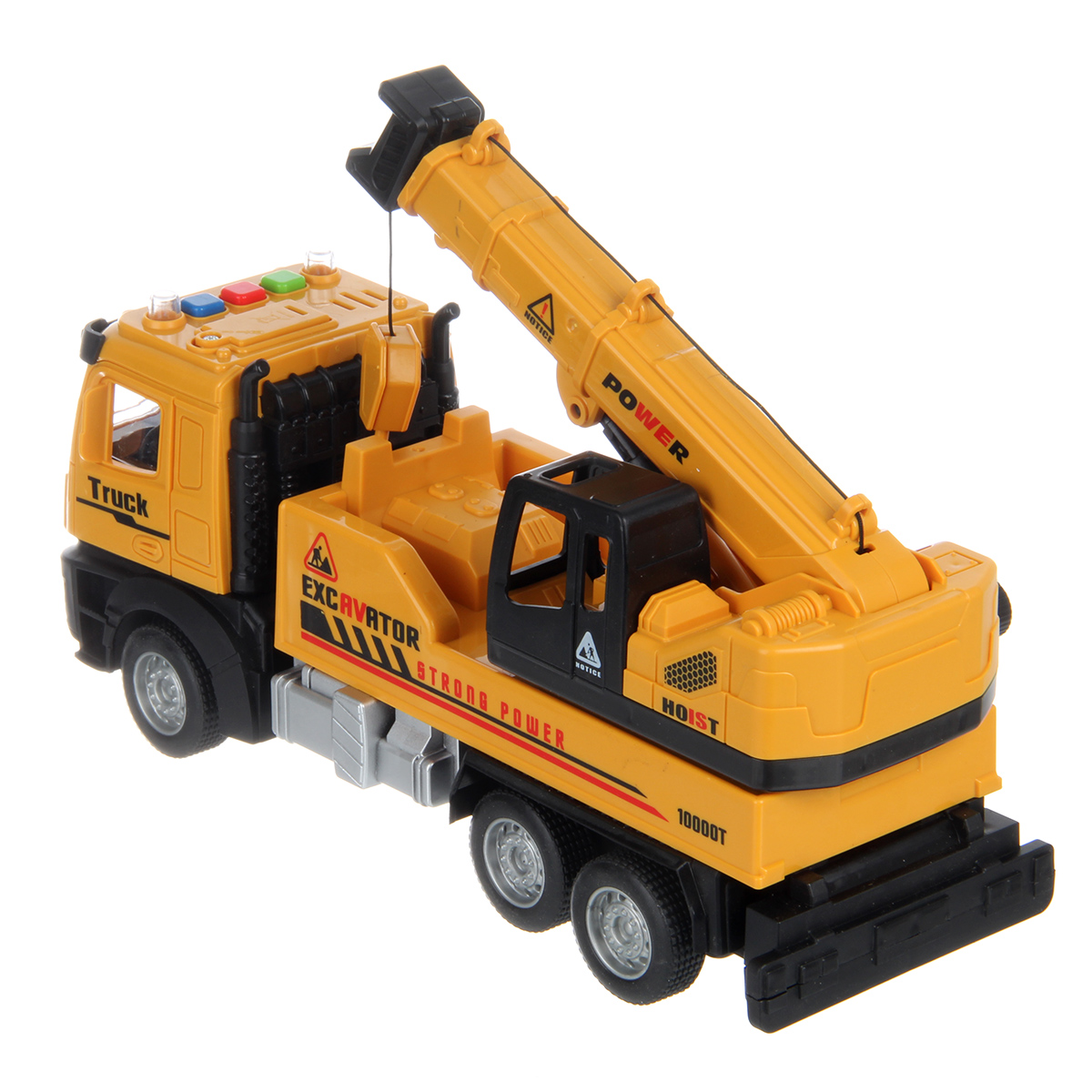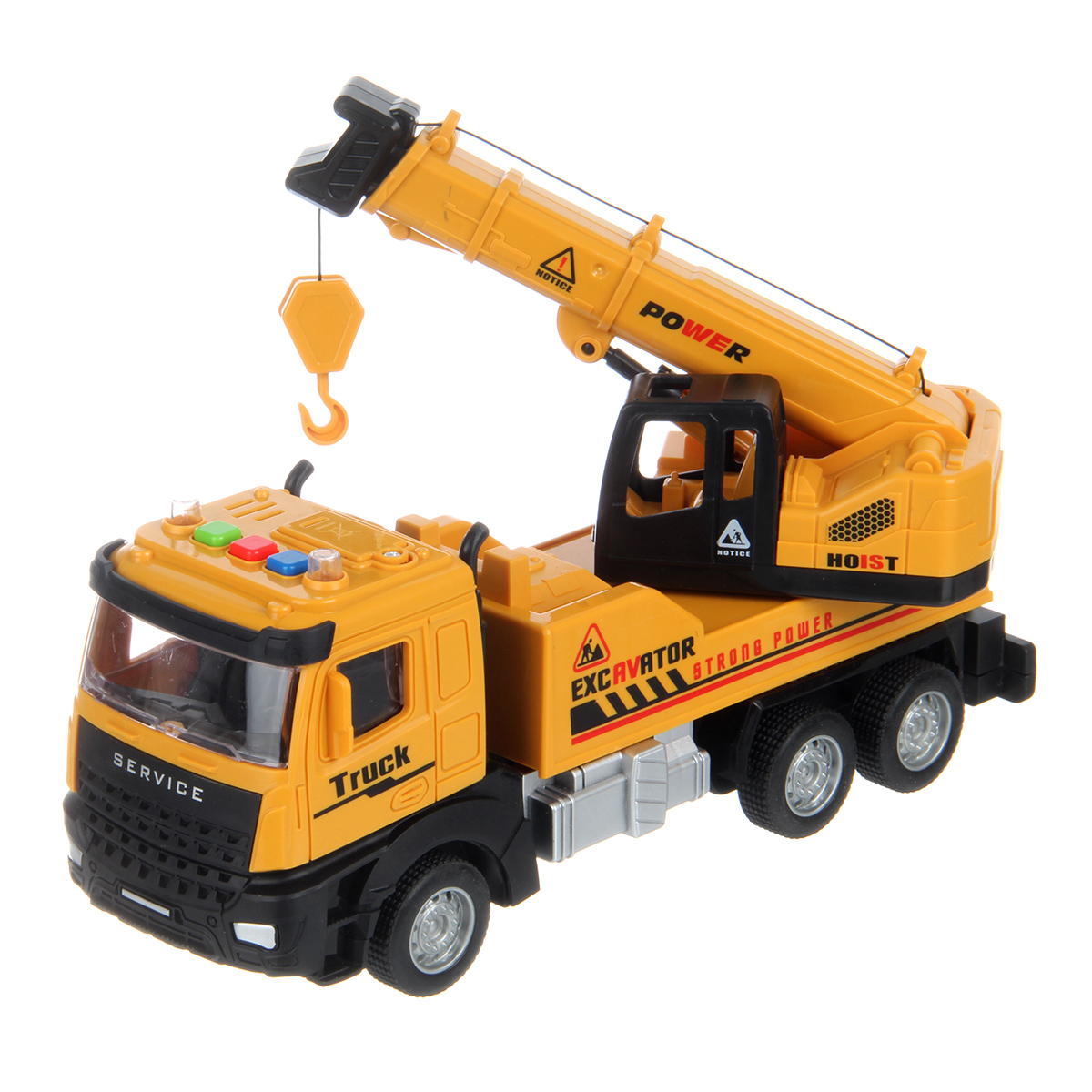 Фрикционная машинка со звуковыми эффектами, красивой подсветкой лампочек и подвижными деталями. Игрушка автокран с выдвижной стрелой, веревка с крюком опускается с помощью рычага, игрушечная спецтехника выполнена в реалистичном дизайне и красивой расцветке. Игрушечный автокран с прорезиненными колесами изготовлен из прочных и долговечных материалов. Игрушечная машина станет замечательным подарком на Новый год и День рождения, поставляется в красивой упаковке.