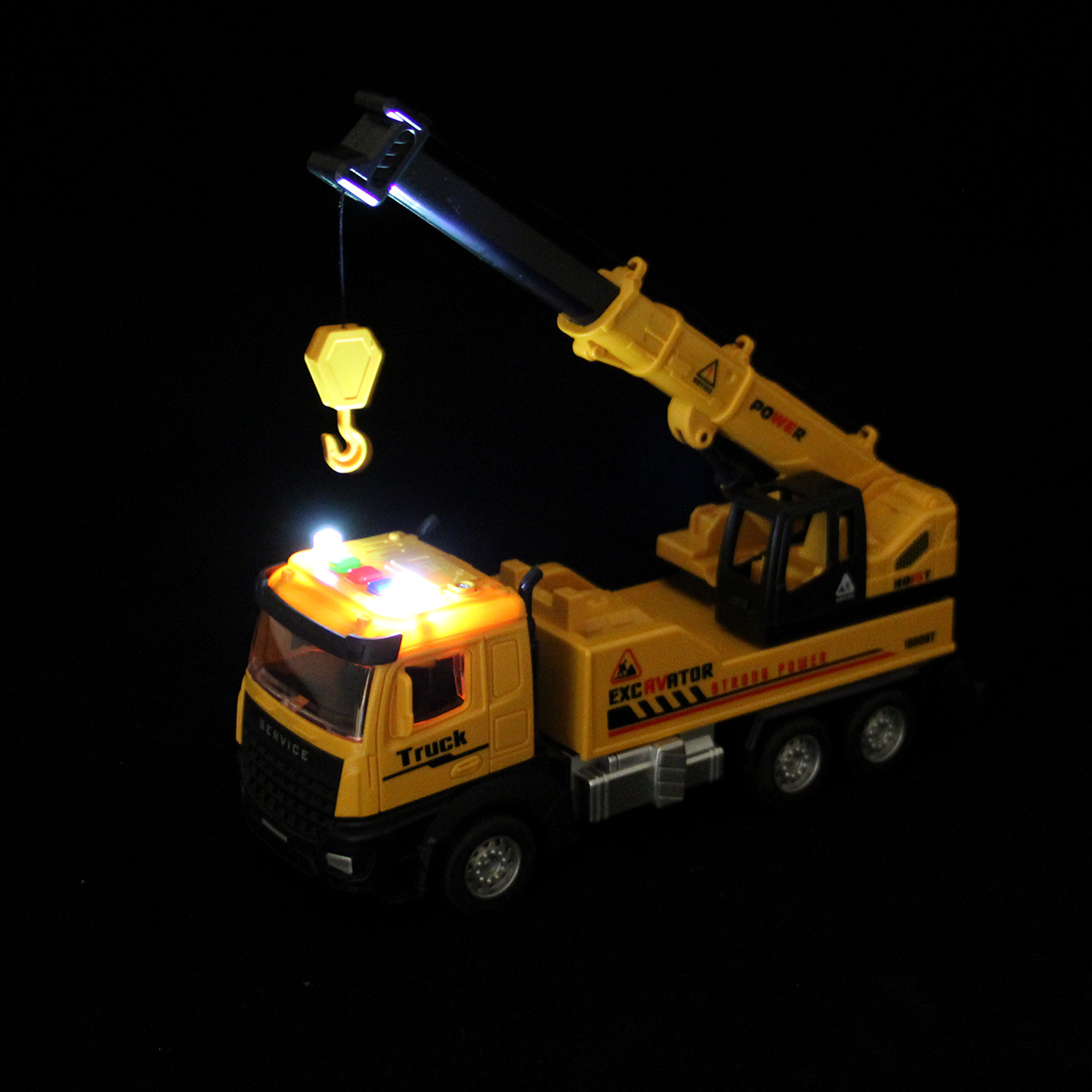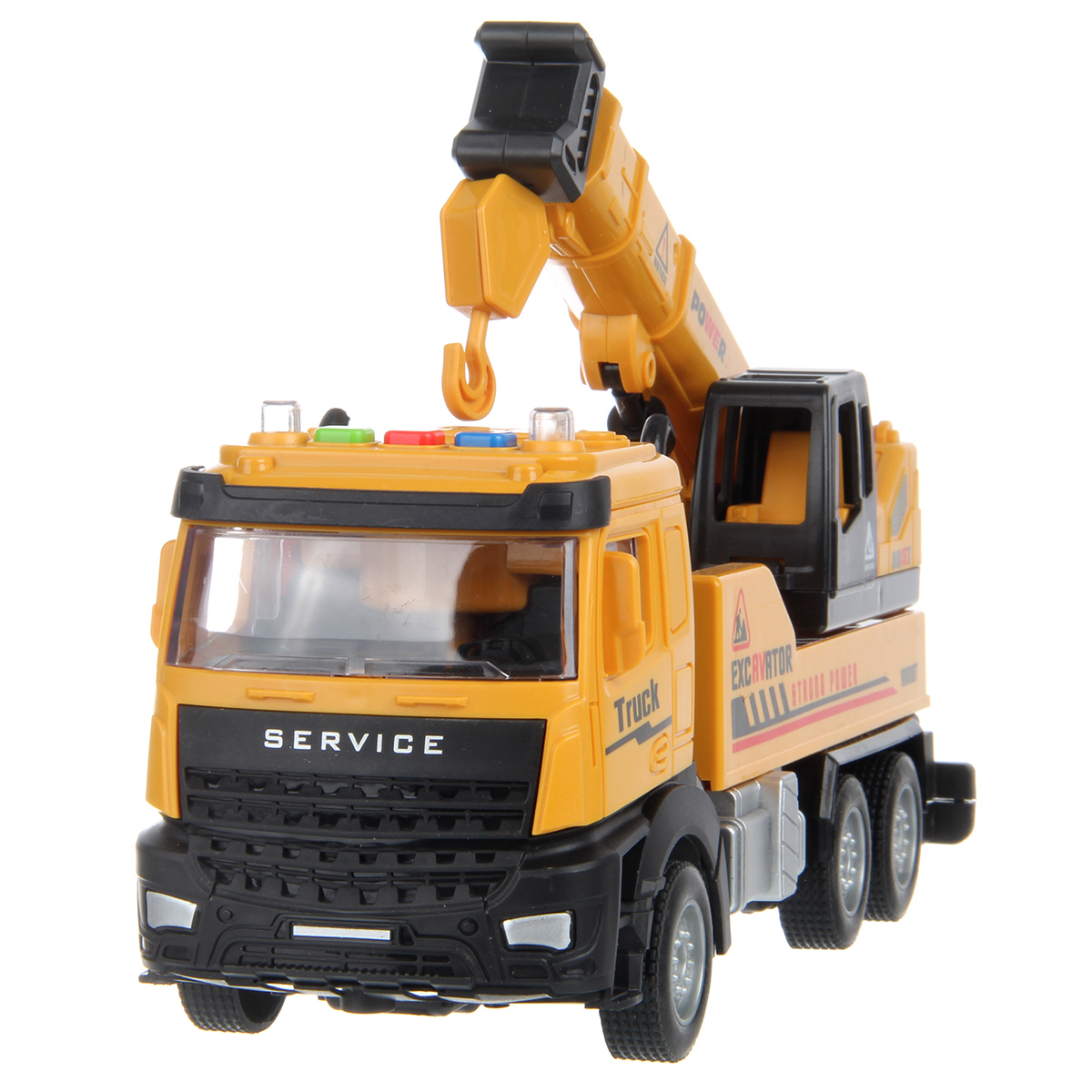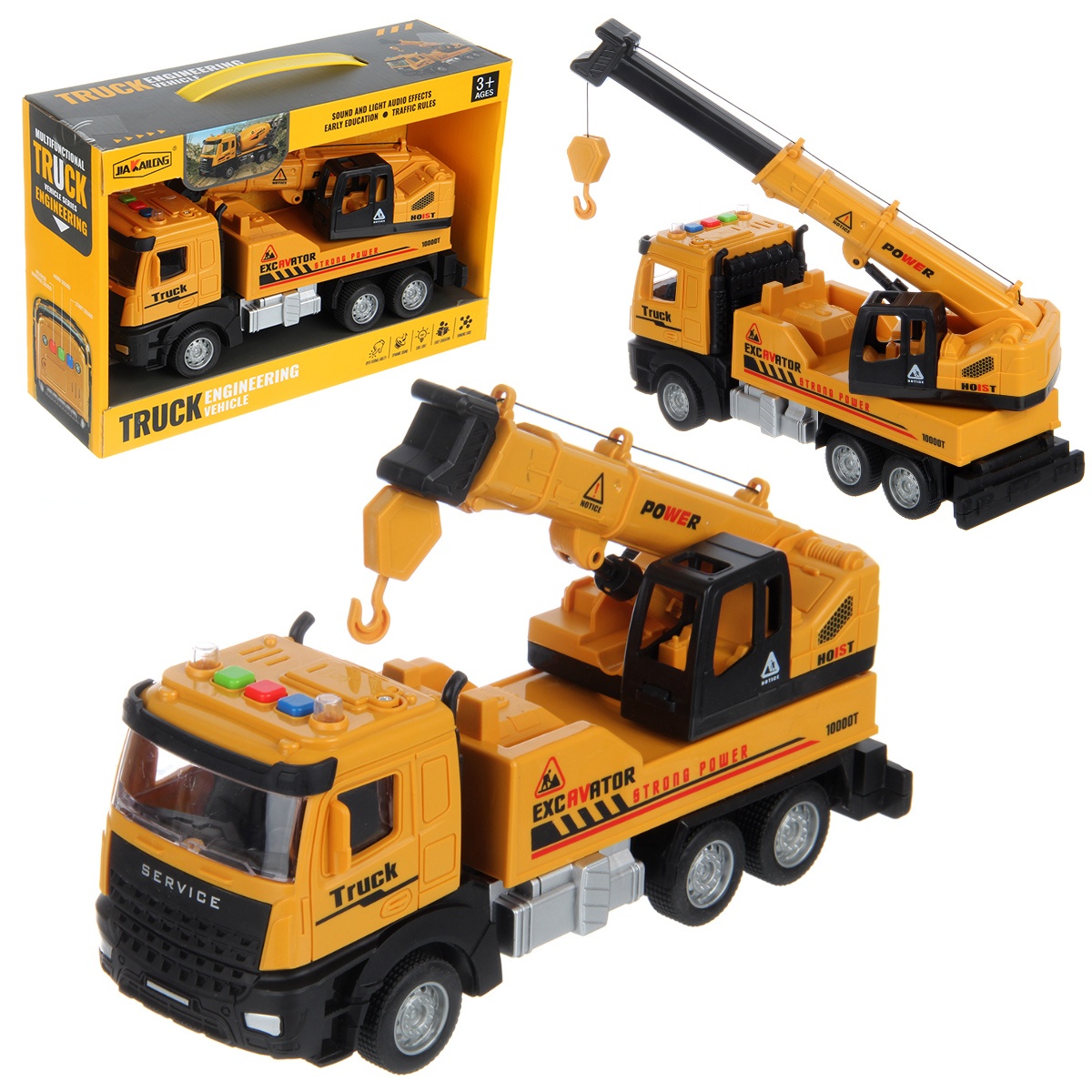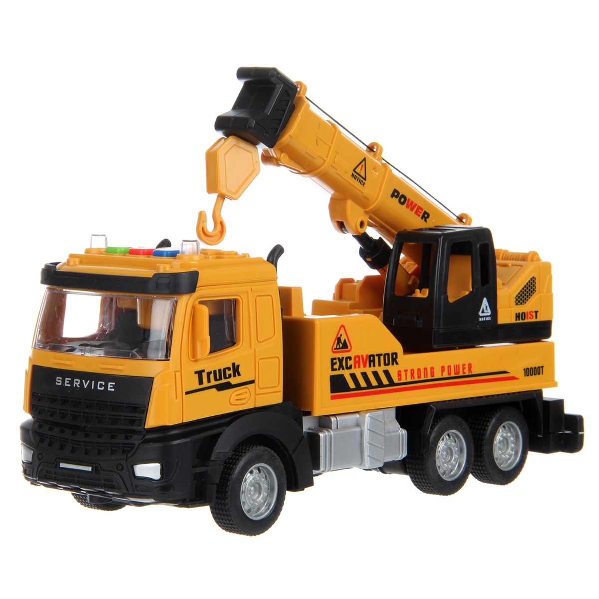Фрикционная машинка со звуковыми эффектами, красивой подсветкой лампочек и подвижными деталями. Игрушка автокран с выдвижной стрелой, веревка с крюком опускается с помощью рычага, игрушечная спецтехника выполнена в реалистичном дизайне и красивой расцветке. Игрушечный автокран с прорезиненными колесами изготовлен из прочных и долговечных материалов. Игрушечная машина станет замечательным подарком на Новый год и День рождения, поставляется в красивой упаковке.