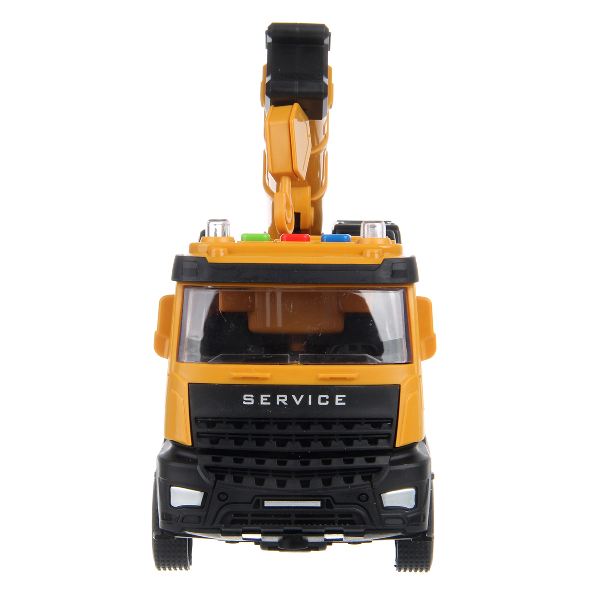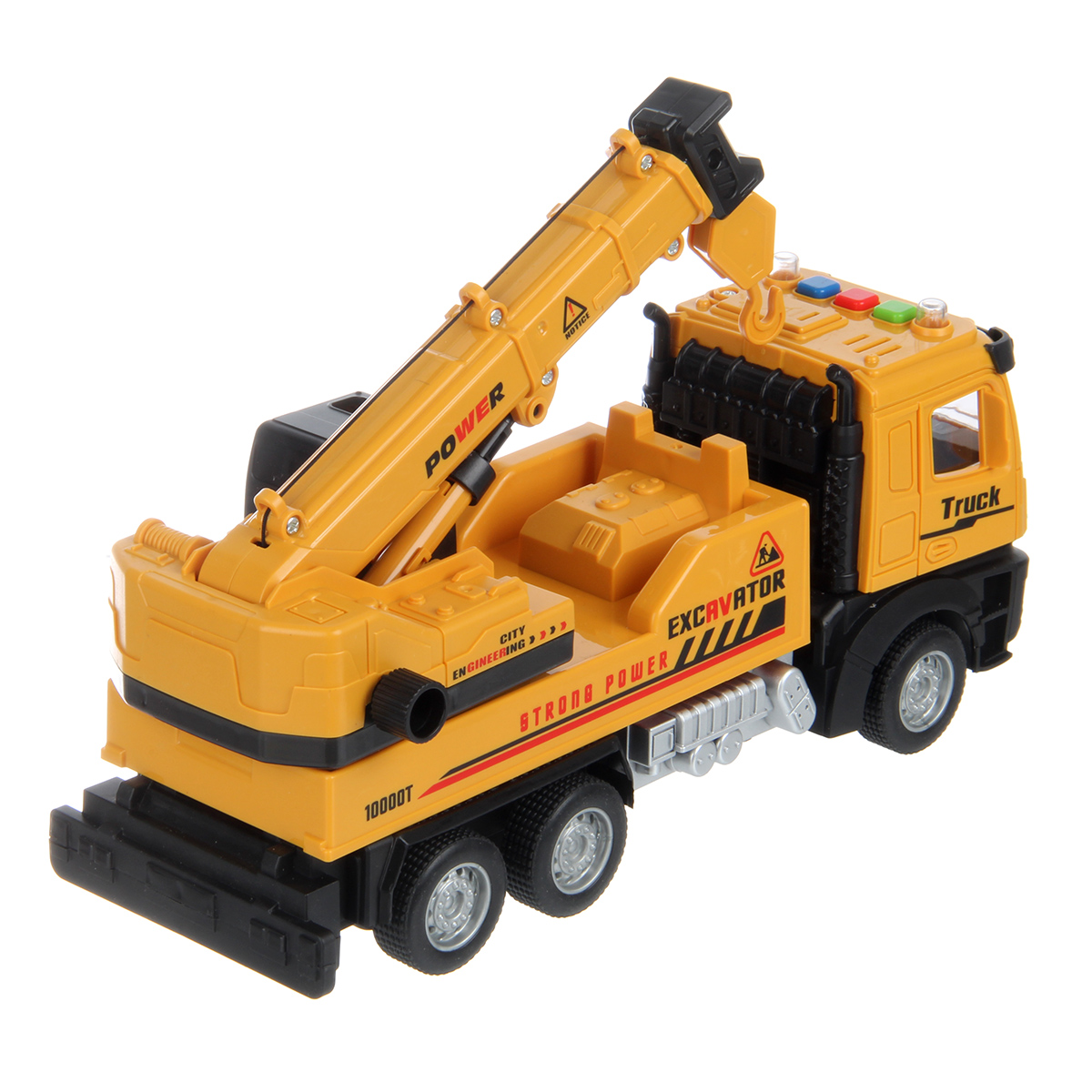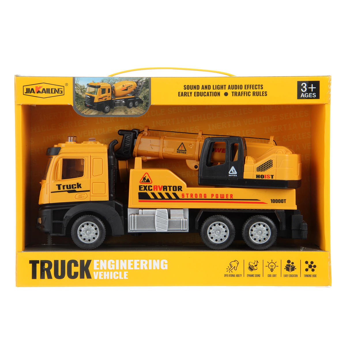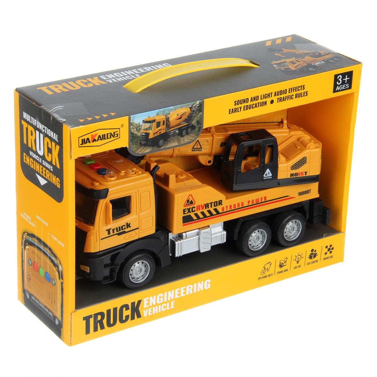 Фрикционная машинка со звуковыми эффектами, красивой подсветкой лампочек и подвижными деталями. Игрушка автокран с выдвижной стрелой, веревка с крюком опускается с помощью рычага, игрушечная спецтехника выполнена в реалистичном дизайне и красивой расцветке. Игрушечный автокран с прорезиненными колесами изготовлен из прочных и долговечных материалов. Игрушечная машина станет замечательным подарком на Новый год и День рождения, поставляется в красивой упаковке.