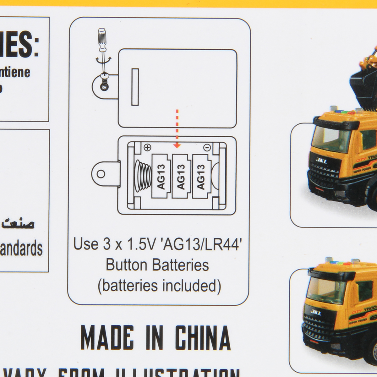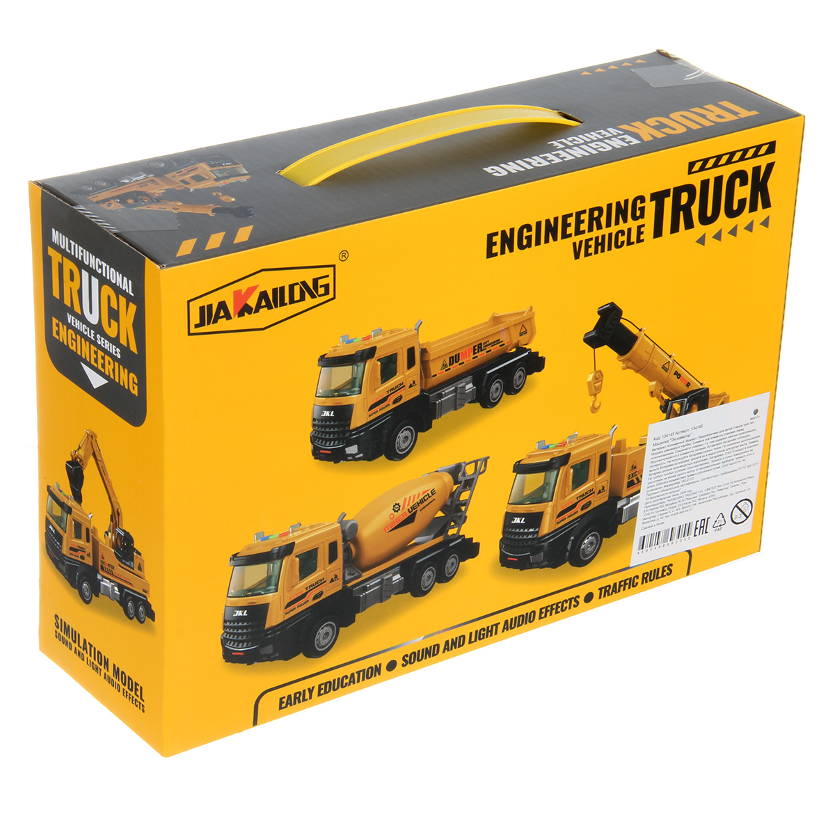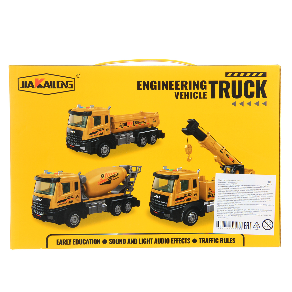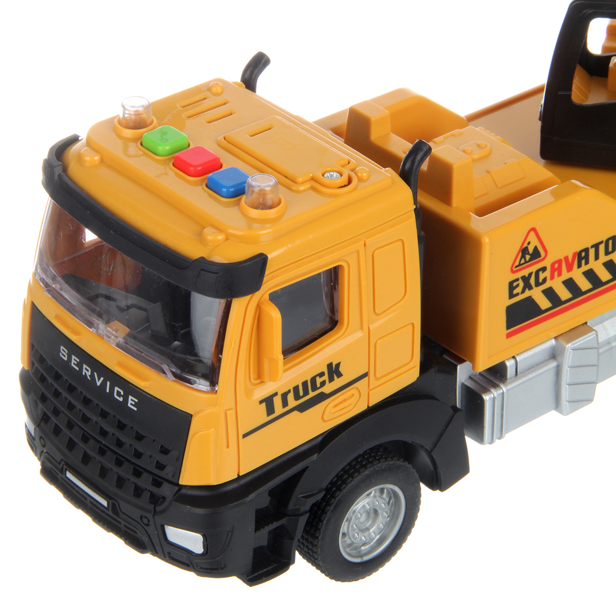 3. При нажатии кнопок на кабине издает звуки заводящегося двигателя, гудка, заднего хода, подсветка лампочек на кабине.