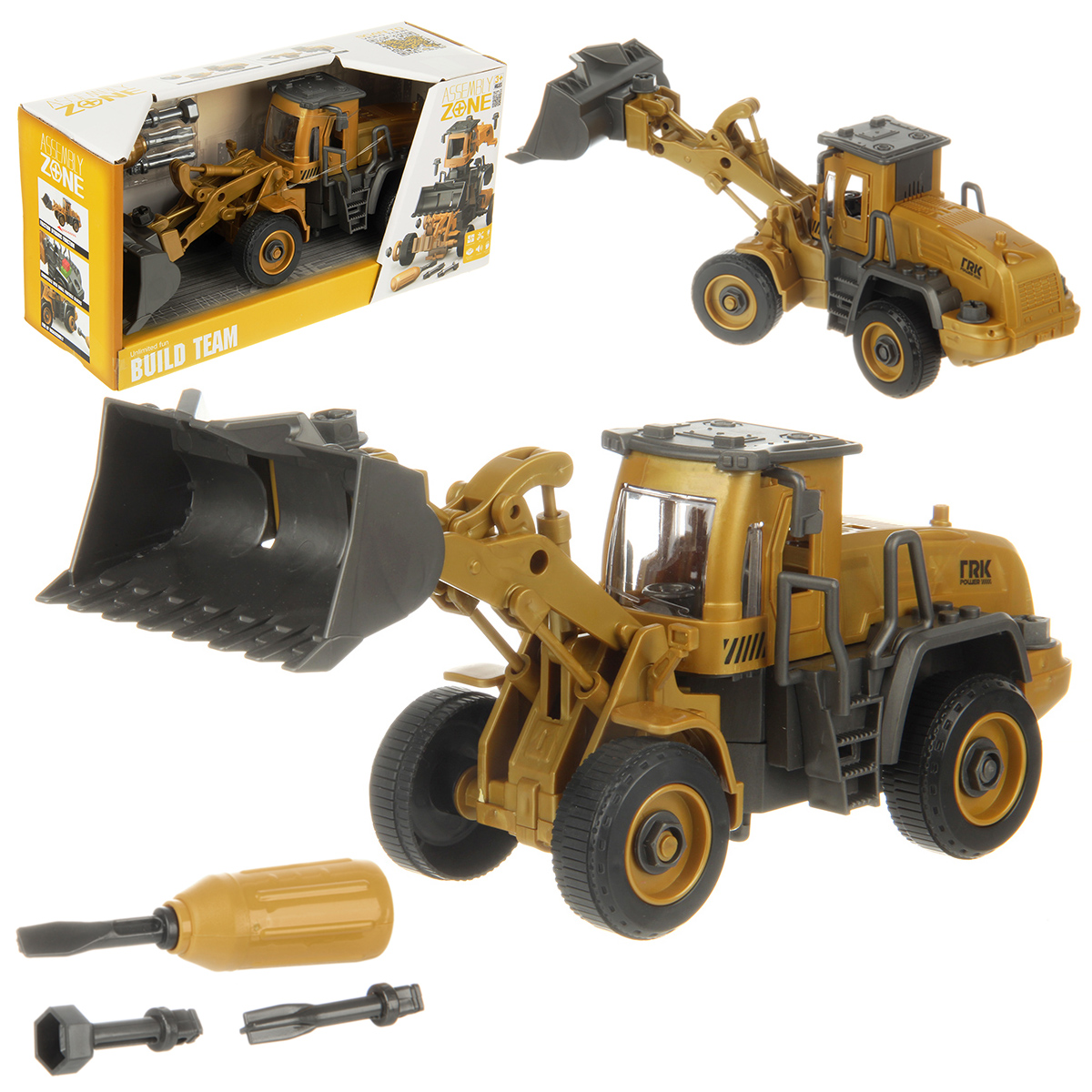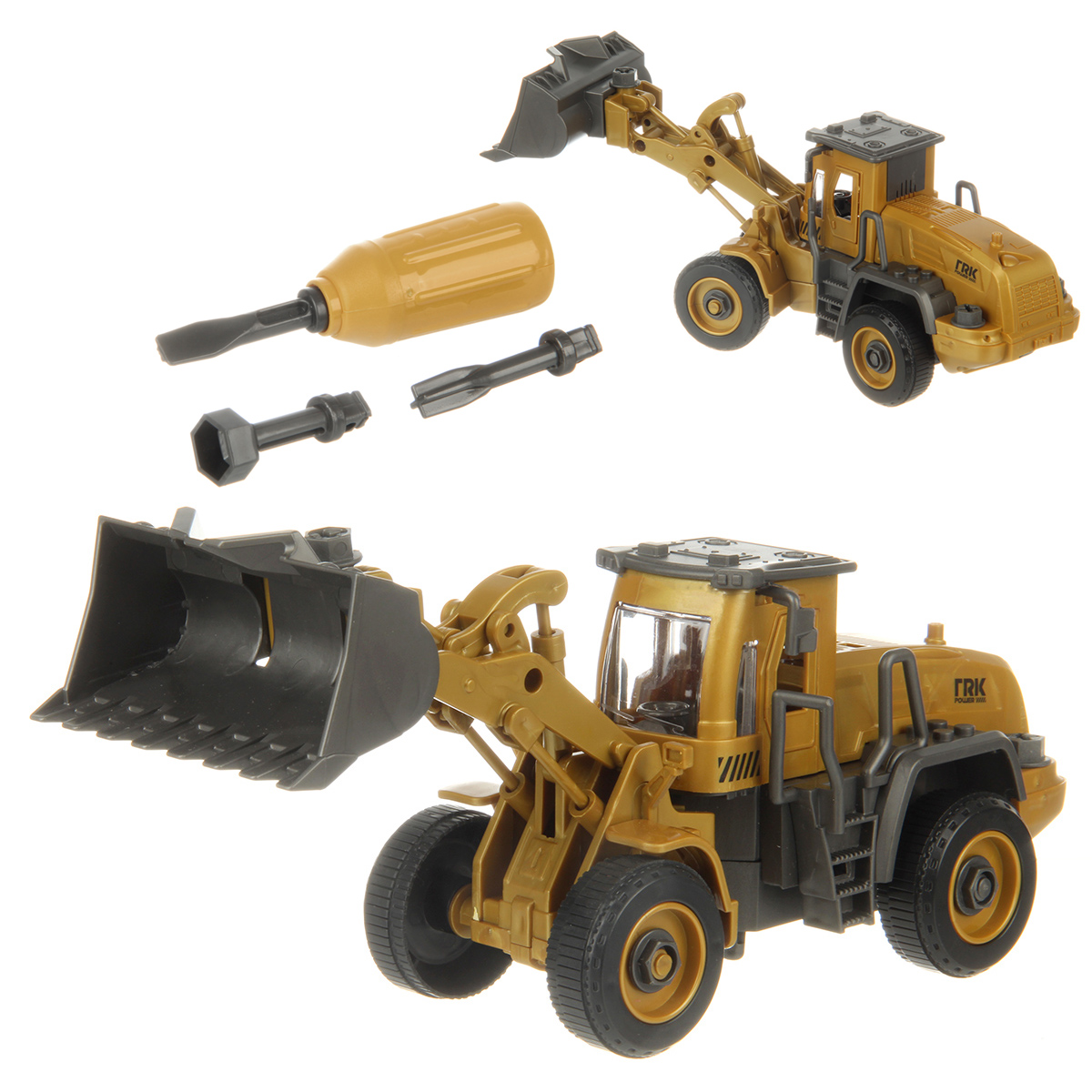В наборе экскаватор, отвертка и 3 насадки к ней.
