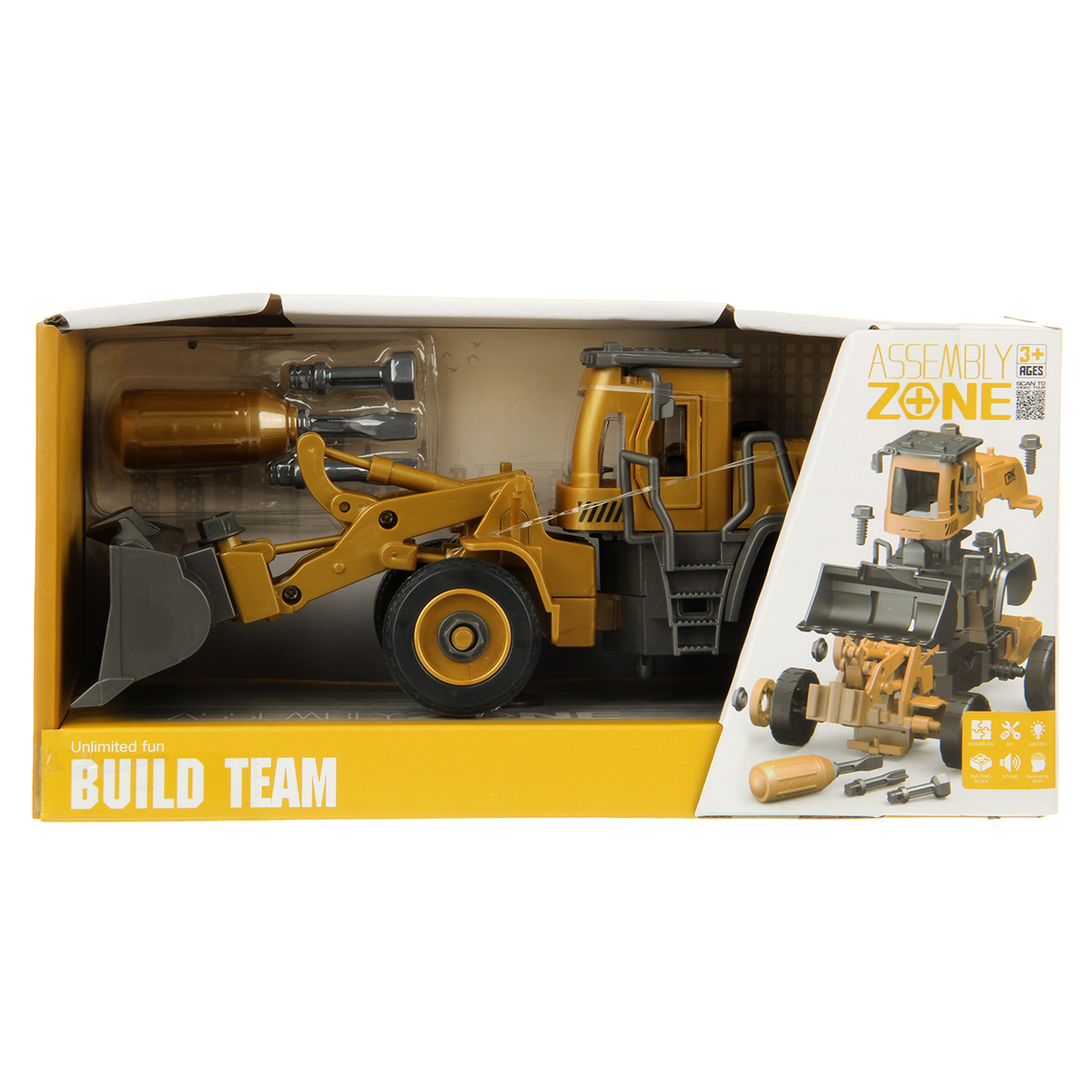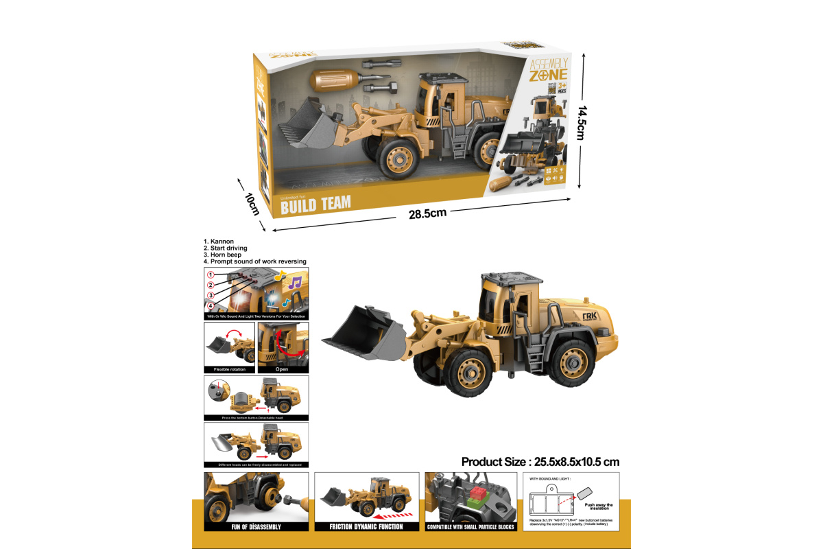 Детская игрушка спецтехника в реалистичном дизайне, трактор с фрикционным механизмом, подвижный ковш, игрушка спецтехника с двумя площадками для сборки Lego.