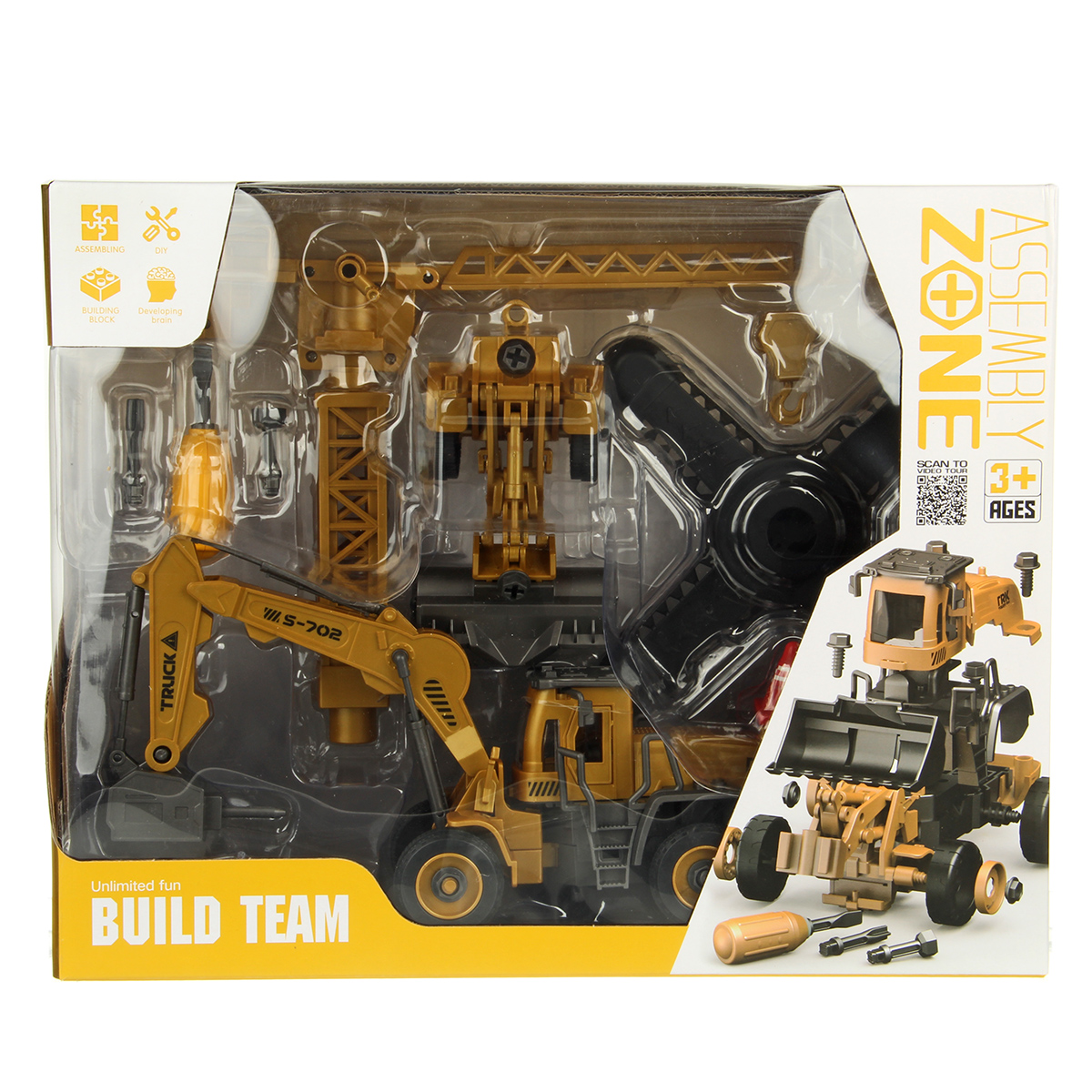 Подъемный кран и трактор 2 в 1 с набором отверток станет отличным дополнением в коллекцию детской спецтехники.