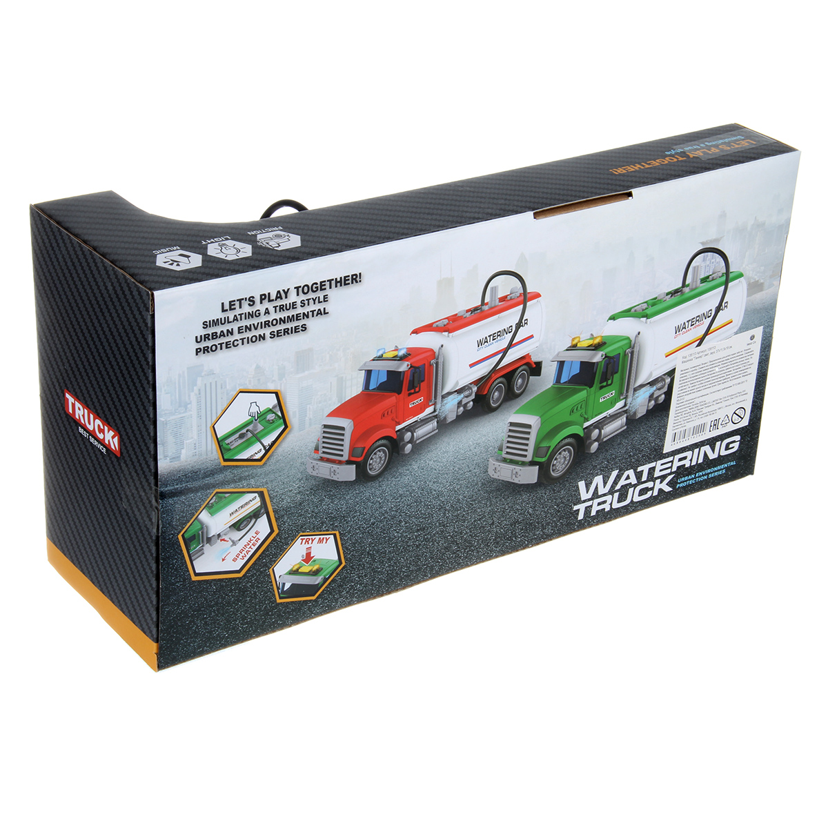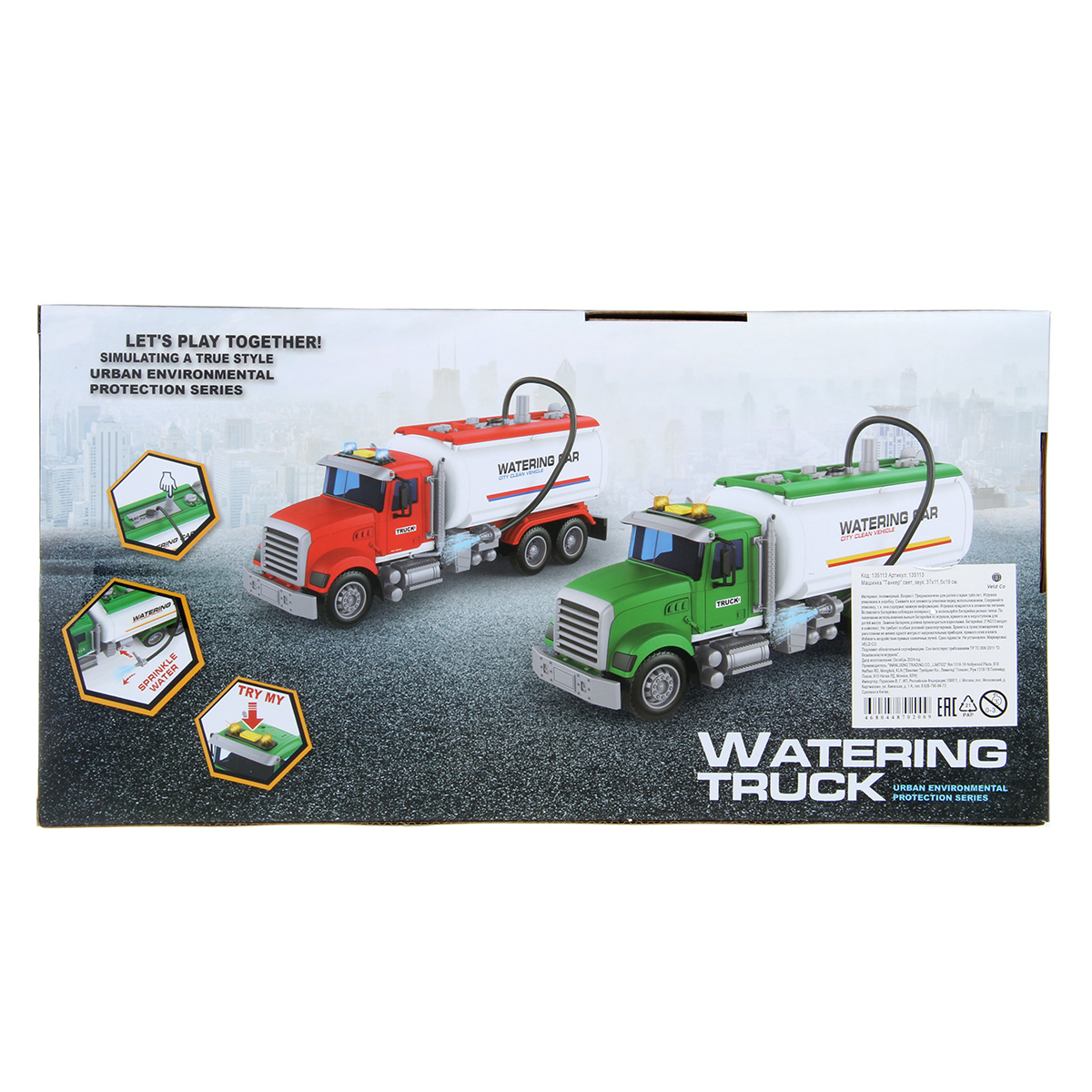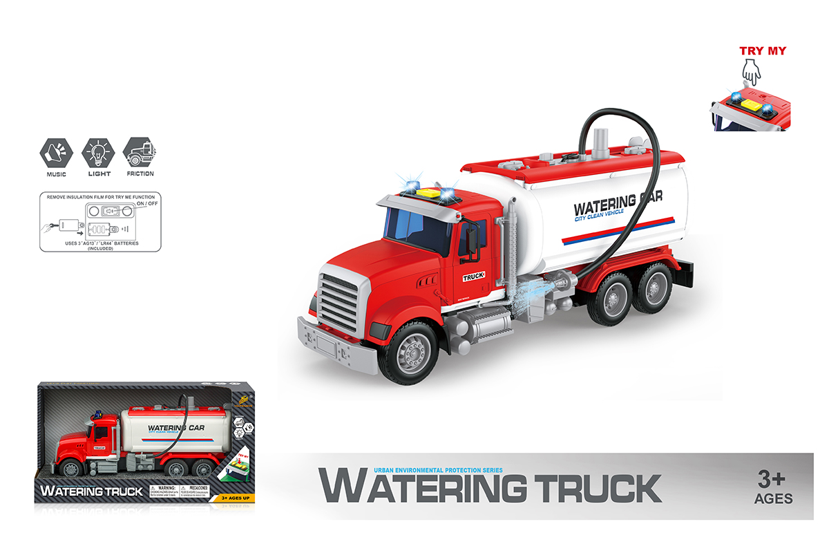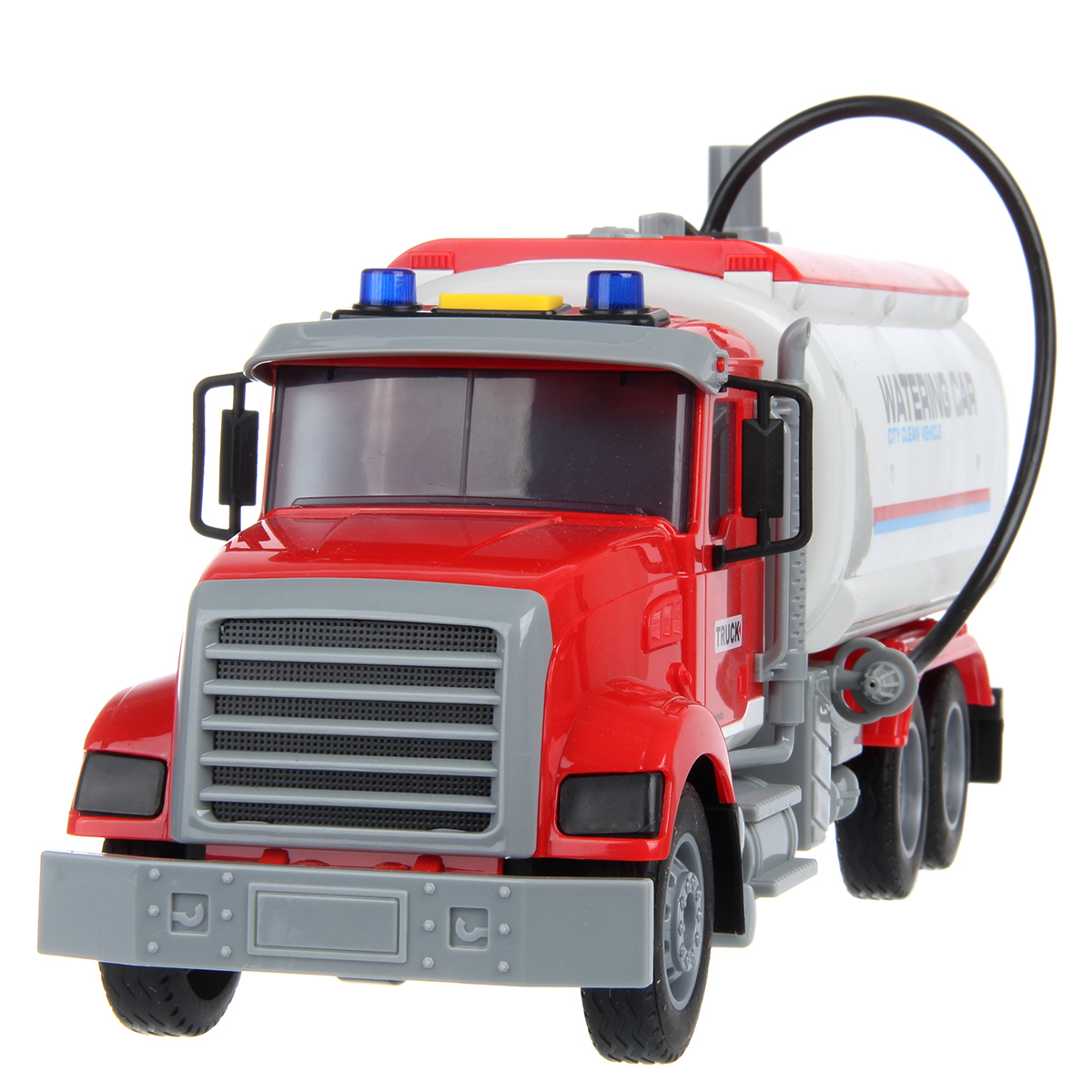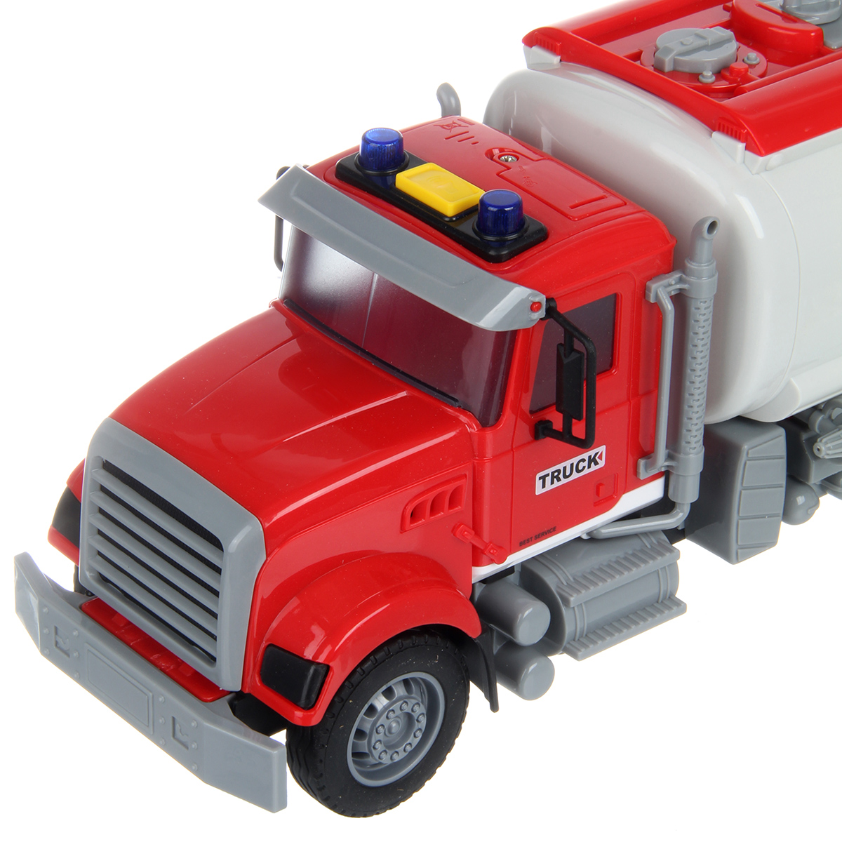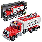 Большая машина автоцистерна с подвижными деталями, звуковыми и световыми эффектами, функцией подачи воды из шланга. Игрушка спецтехника издает звуки заднего хода и гудка, имеет подсветку лампочек на кабине, можно играть в темное время суток, у фрикционной игрушечной машины есть снимающийся с держателя пожарный вентиль. Игрушка на батарейках изготовлена из прочных и долговечных материалов. Игрушечный транспорт станет замечательным подарком для детей на Новый год и День рождения, ребенок узнает больше о работе спецтехники.