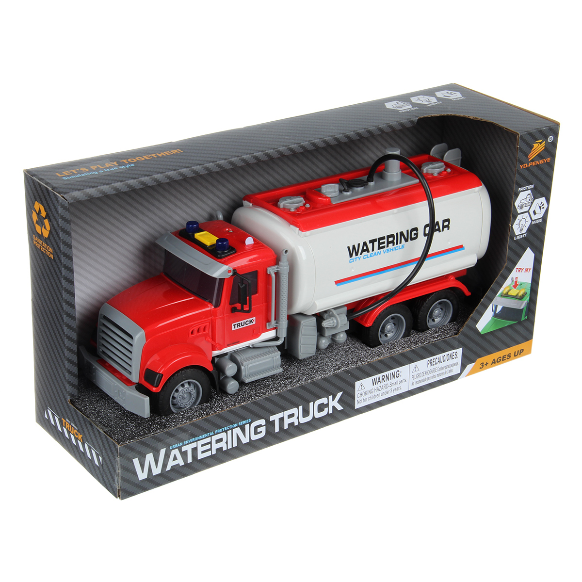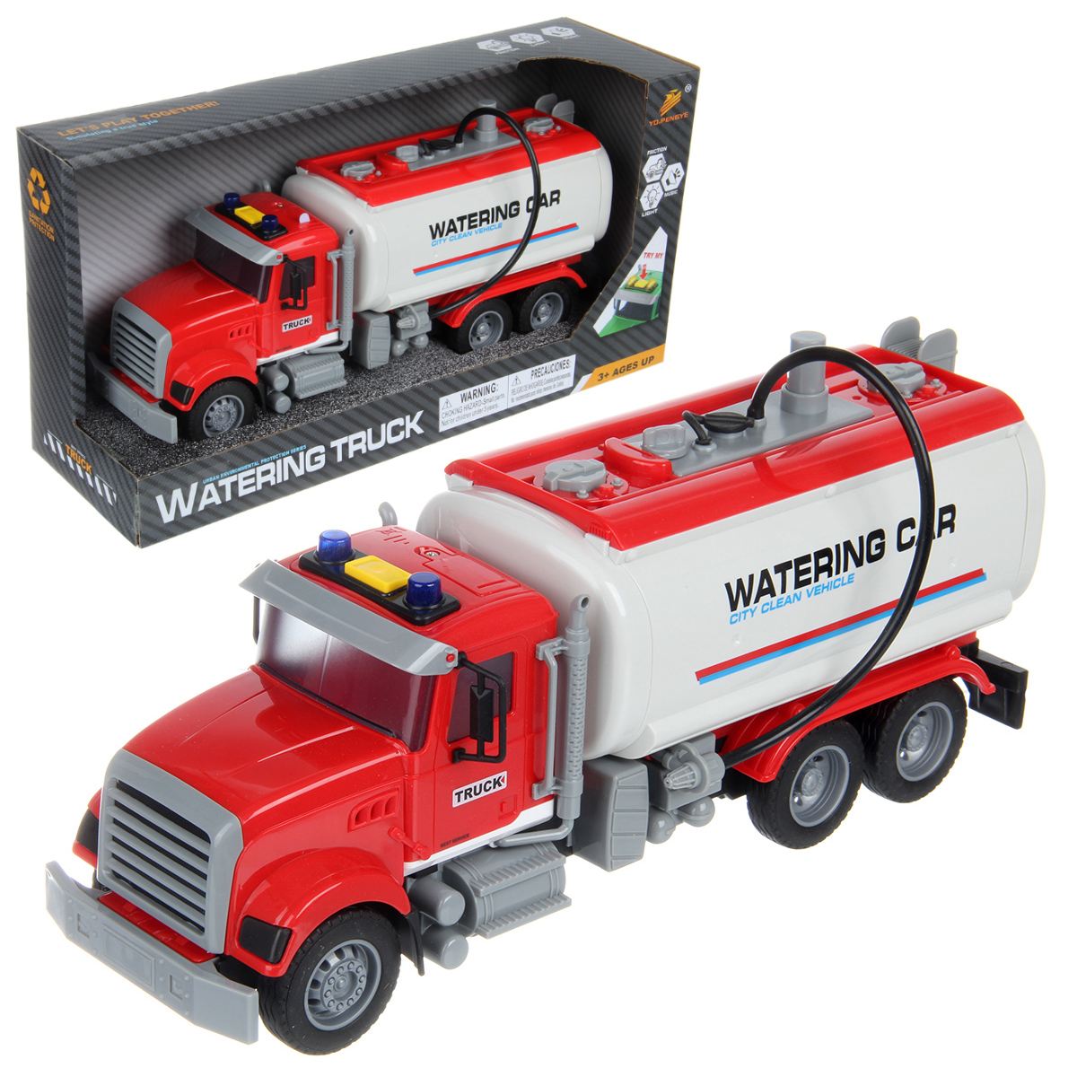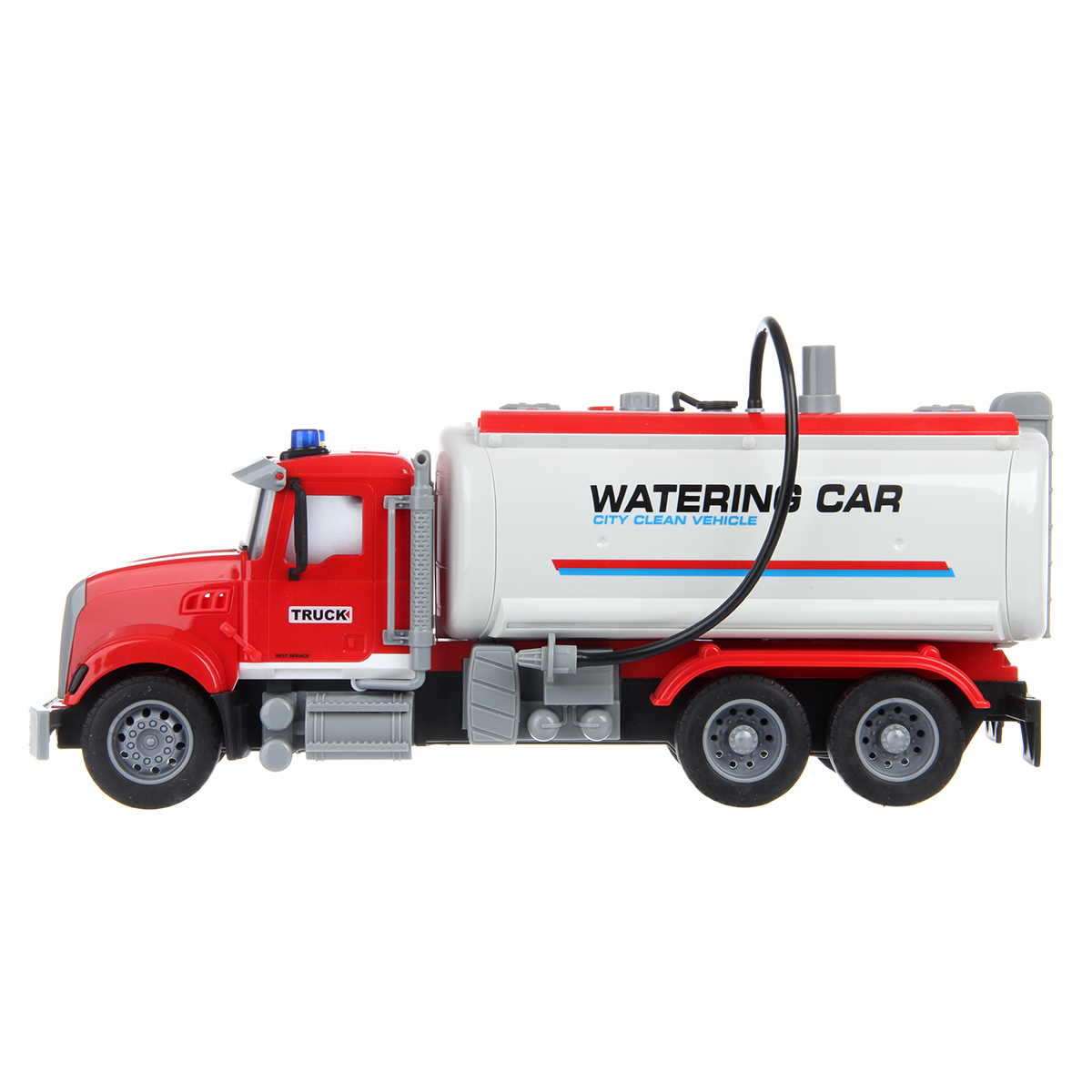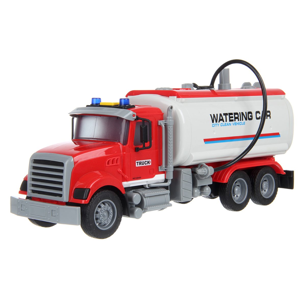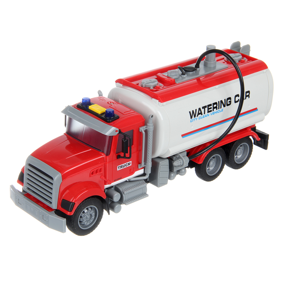 Большая машина автоцистерна с подвижными деталями, звуковыми и световыми эффектами, функцией подачи воды из шланга. Игрушка спецтехника издает звуки заднего хода и гудка, имеет подсветку лампочек на кабине, можно играть в темное время суток, у фрикционной игрушечной машины есть снимающийся с держателя пожарный вентиль. Игрушка на батарейках изготовлена из прочных и долговечных материалов. Игрушечный транспорт станет замечательным подарком для детей на Новый год и День рождения, ребенок узнает больше о работе спецтехники.