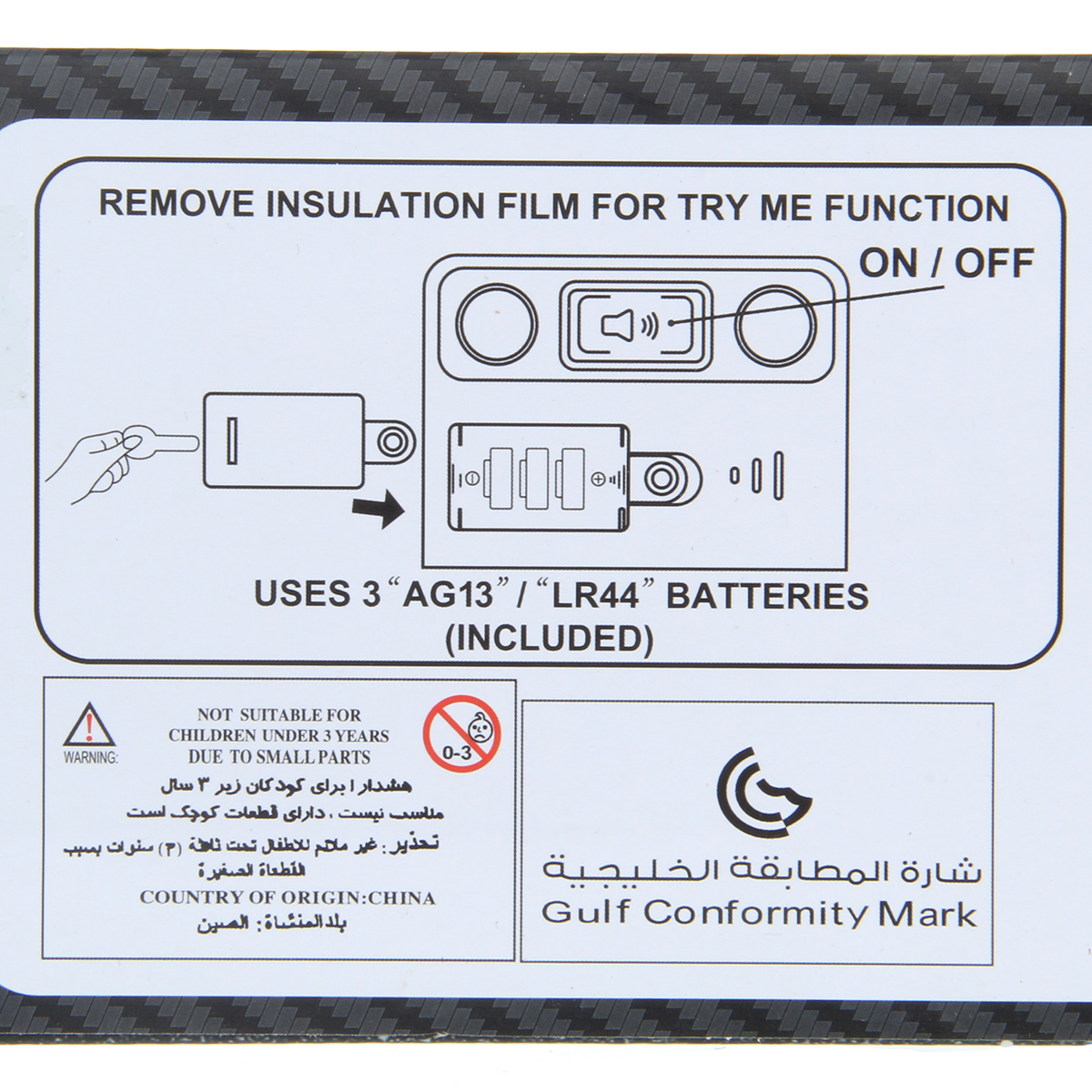 Машинка работает от 3 батареек LR44, входят в комплект.