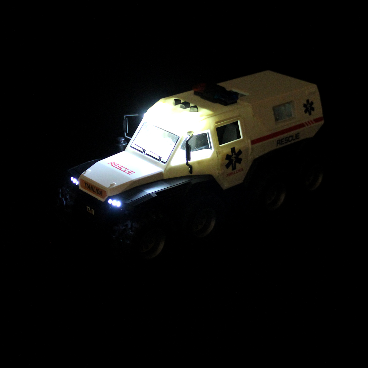 3. Издает звуки аварийной остановки, заводящегося двигателя, гудка, подсветка фонарей на крыше, люстры, передних фар.