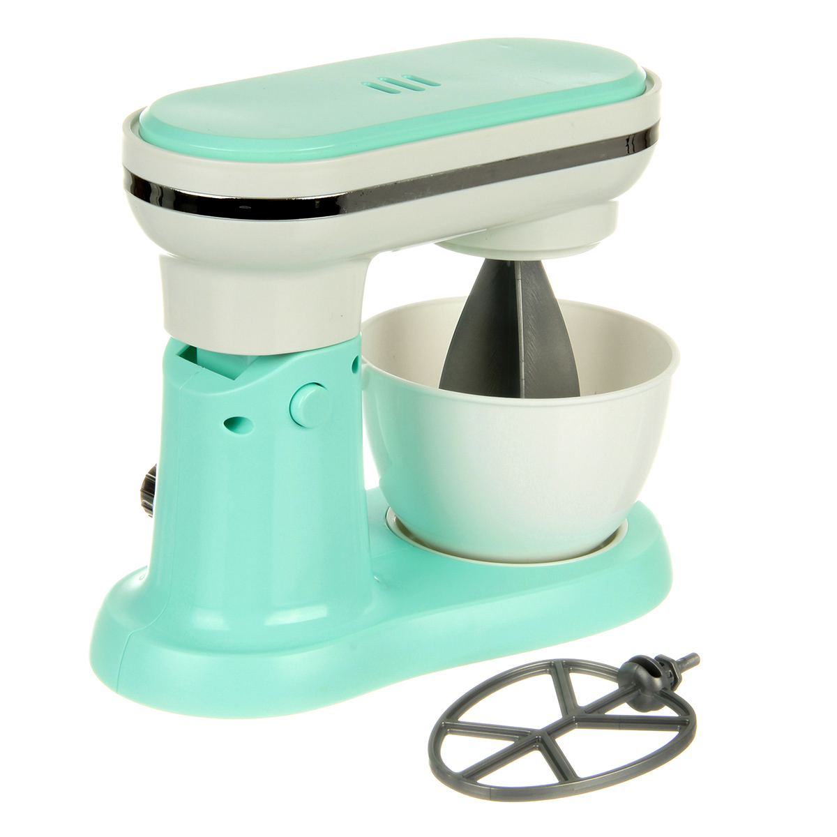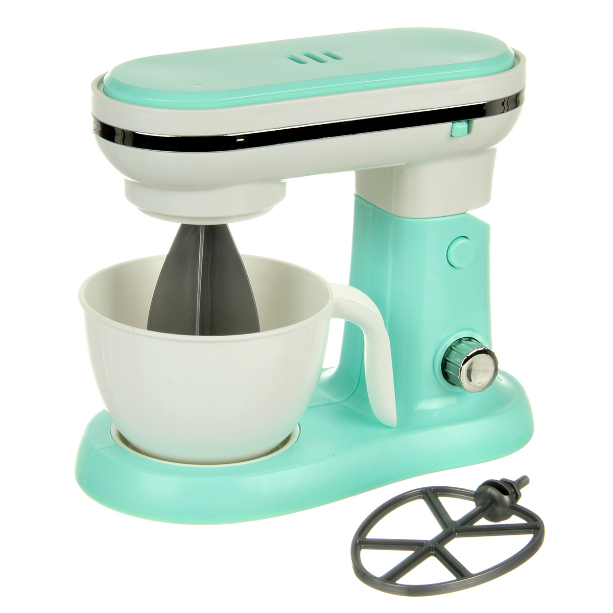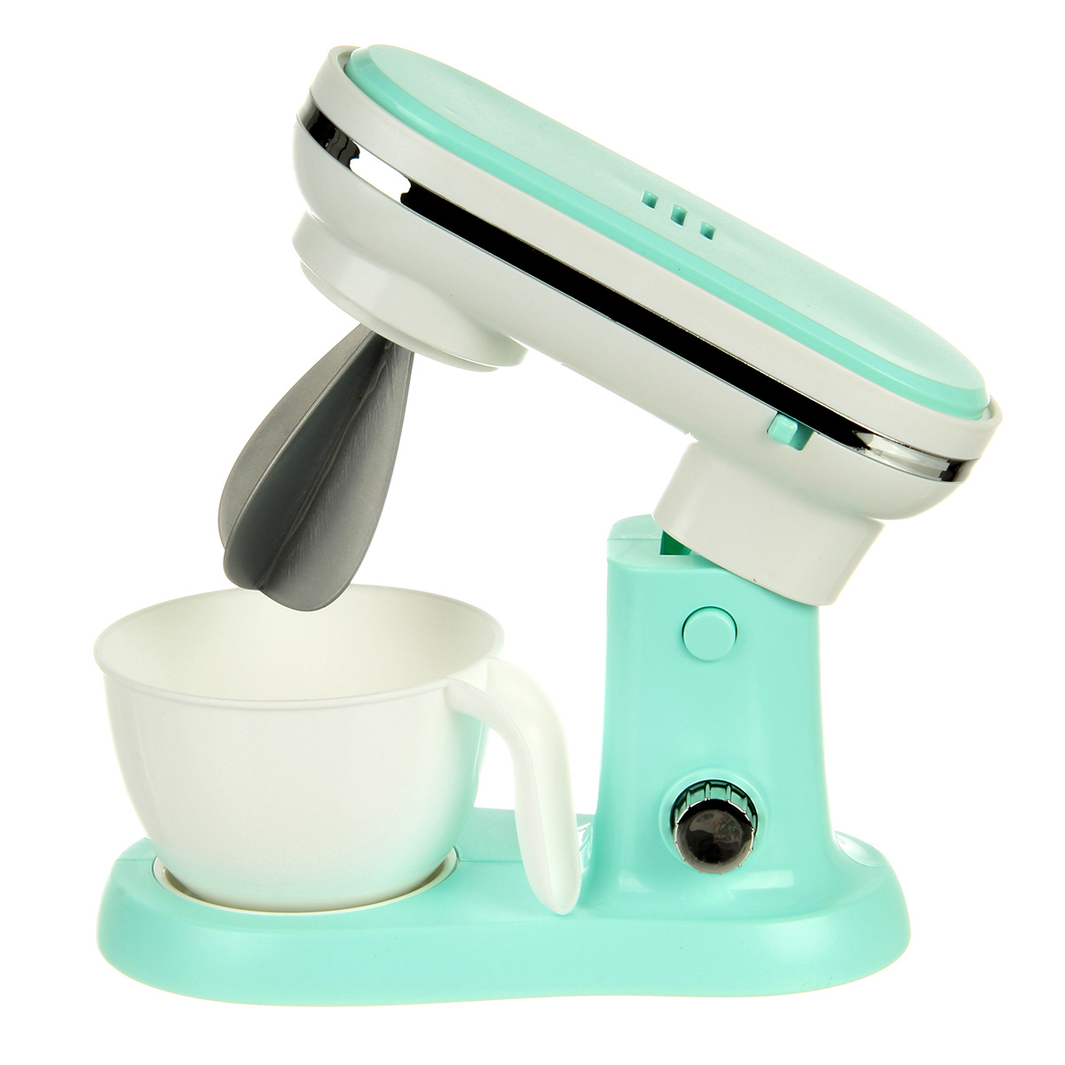 Детская игрушка миксер с вращающимися насадками и поднимающейся моторной головкой.