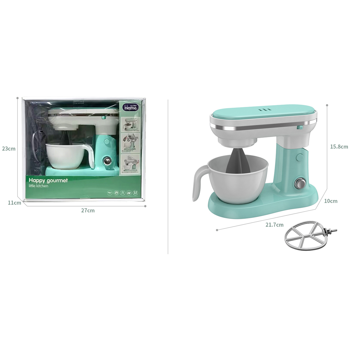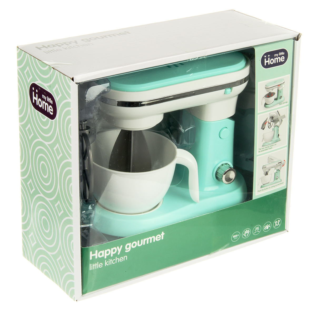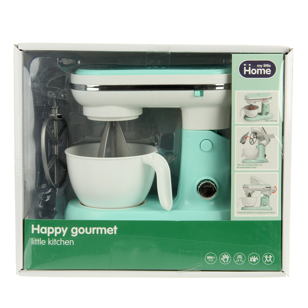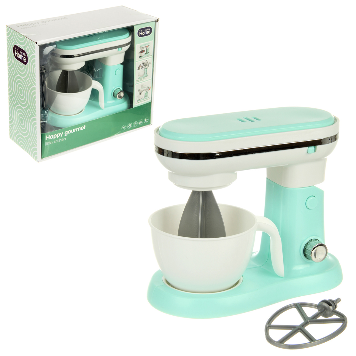 Детская игрушка миксер с вращающимися насадками и поднимающейся моторной головкой.