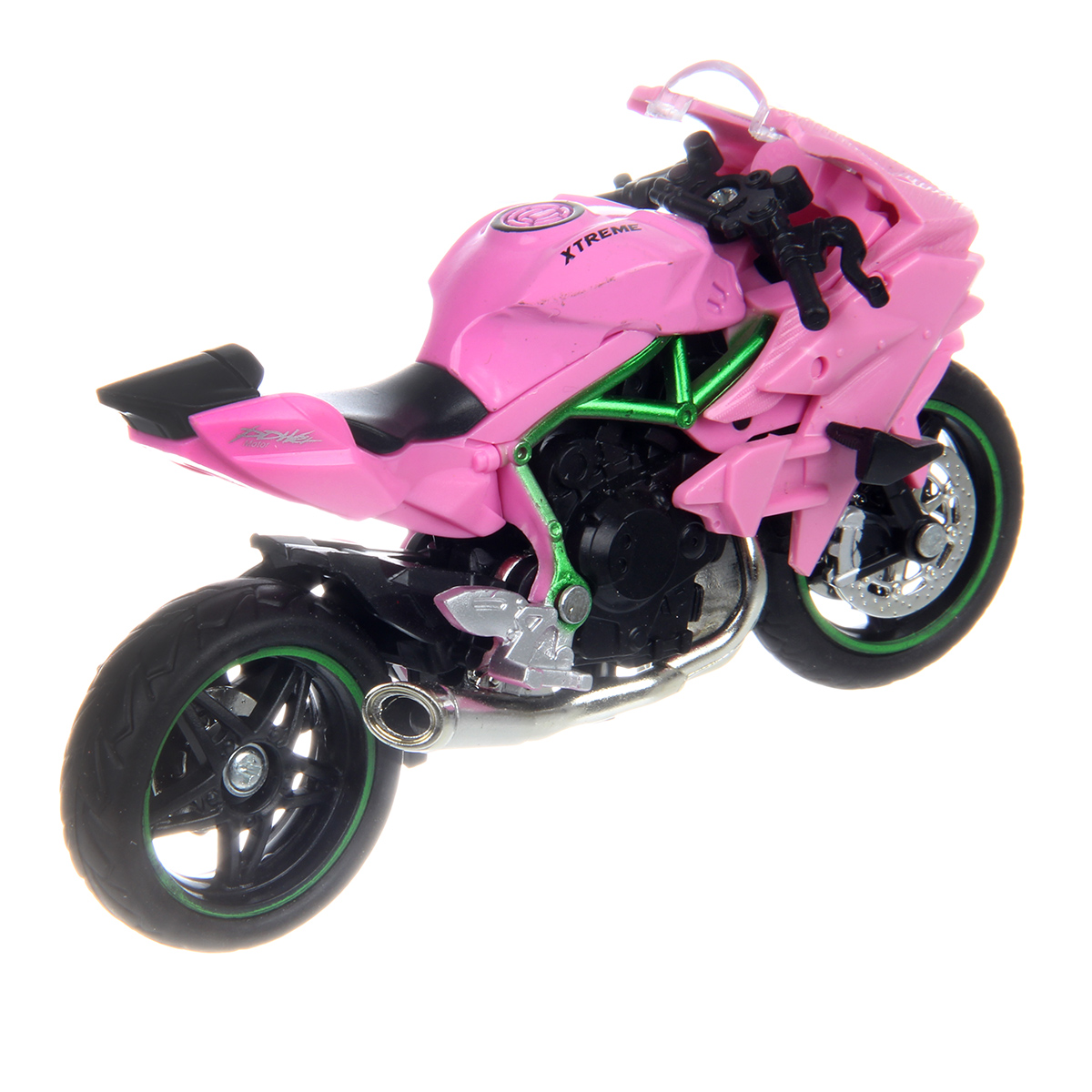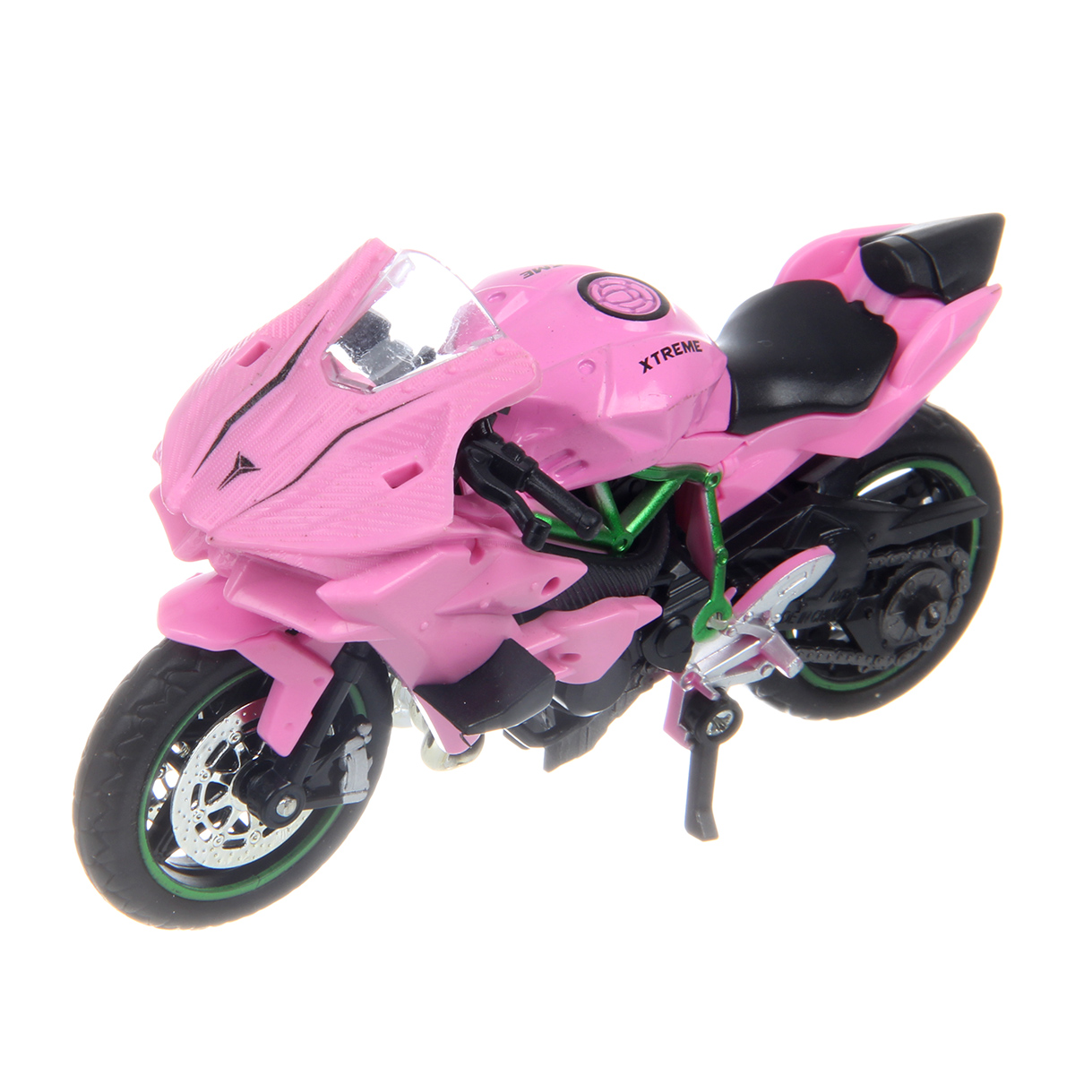 Игрушечный мотоцикл изготовлен из прочных и долговечных материалов, обладает компактными размерами, удобно брать с собой, выполнен в стильной расцветке.
