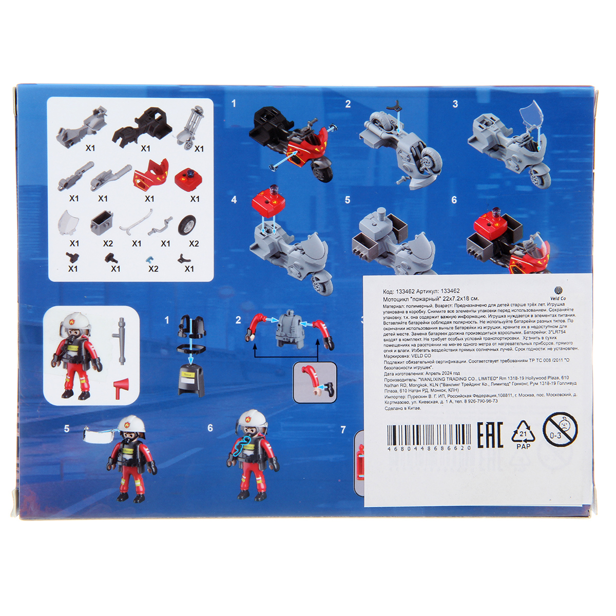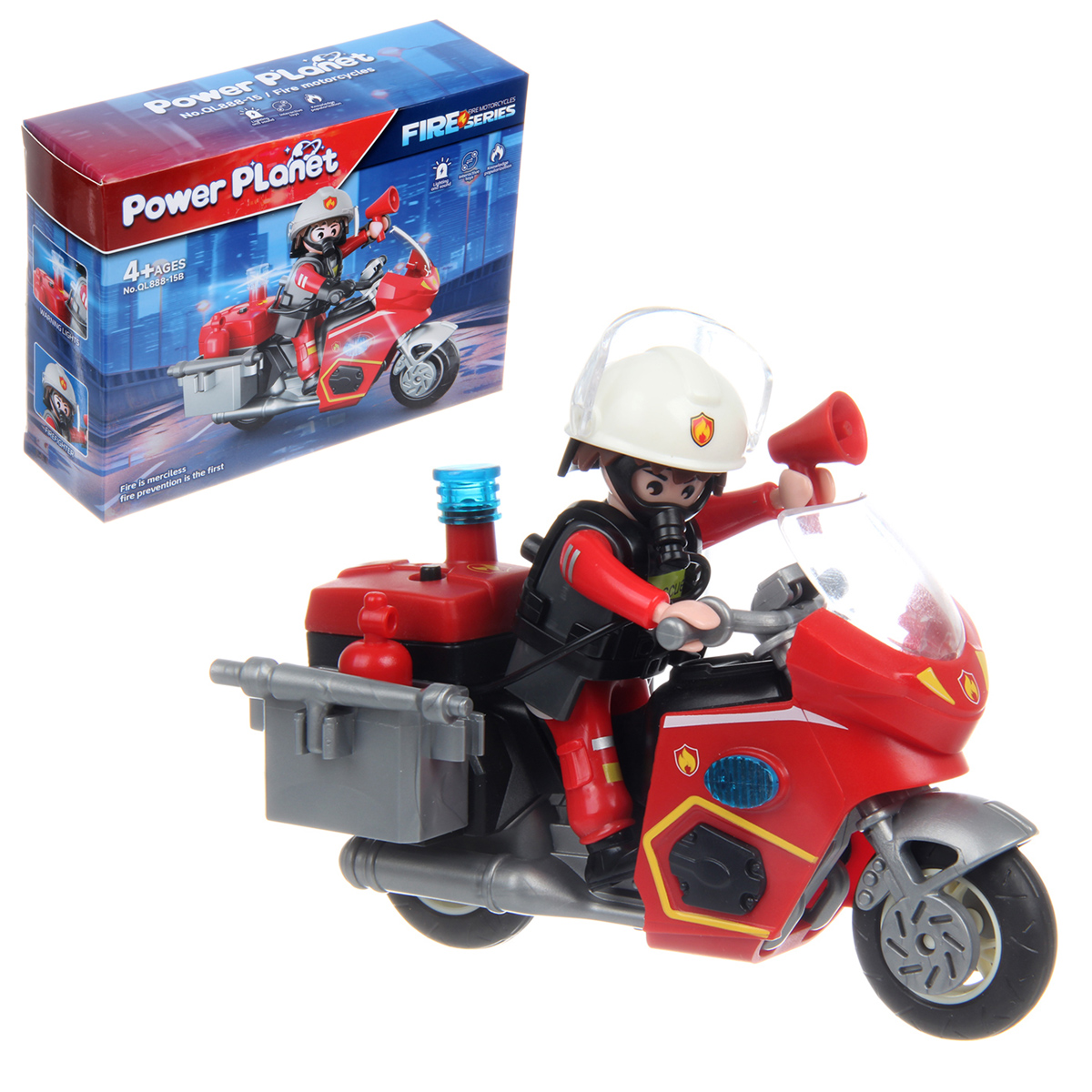 Роскошная игрушка конструктор с фигуркой пожарного и мотоциклом, это отличный набор для тематических игр. Пожарный с подвижными руками и ногами, вкладываем в руки аксессуары, игрушечный мотоцикл с движением во все стороны и красивой подсветкой.