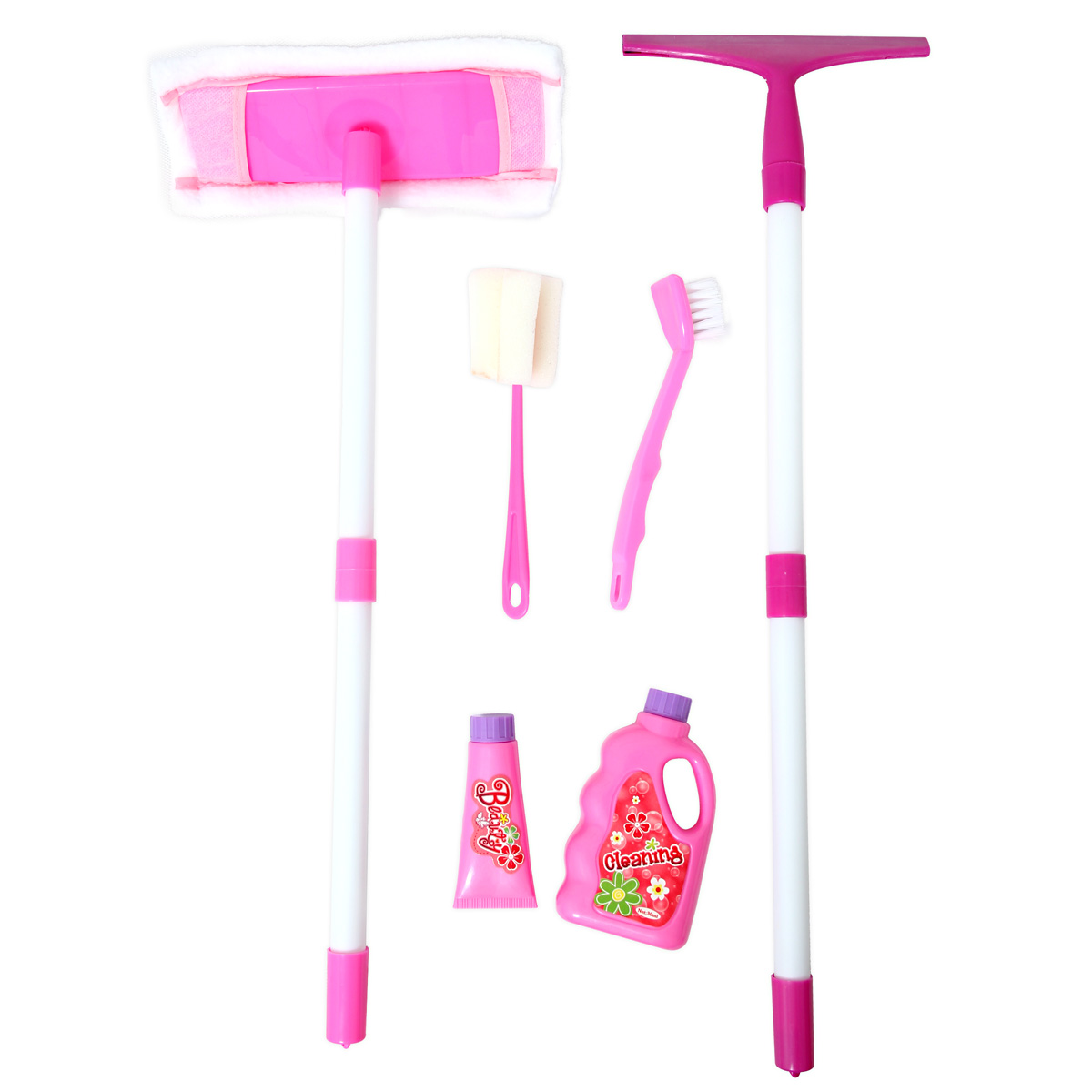 Набор отлично подойдет для игр в маленькую хозяйку. Здесь есть все необходимое для уборки. Малышу будет очень приятно иметь набор отличающийся лишь по размеру от своей мамы.  Размеры швабры 50*1,5*20