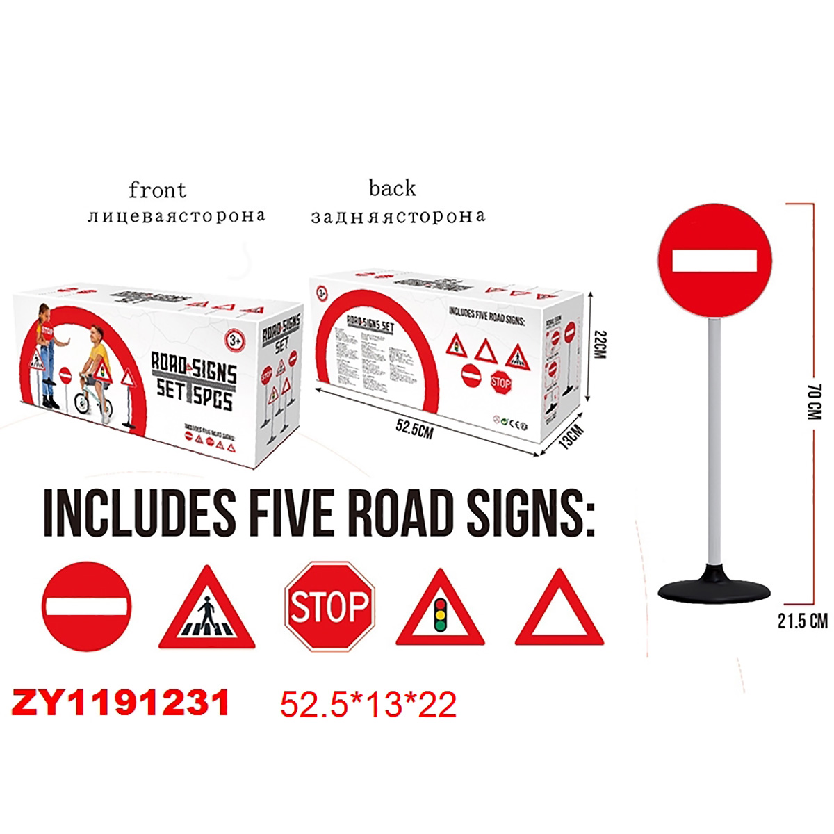 Очень полезная для развития ребенка игрушка - набор дорожных знаков. Знаки большие, сборно-разборные, можно поставить их на коврик с нарисованными дорогами города и изучать дорожное движение. В комплект входят знаки дорожного движения и набор наклеек. Благодаря такому набору ребенок выучит правила дорожного движения, познакомится с основными знаками, будет развивать концентрацию внимания, память, зрительное восприятие. Игрушка изготовлена из высококачественного и безопасного полимерного материала. Размеры знака Stop: 71*21*21 см. Размеры знака "Въезд запрещен": 71*21*21 см. Размеры коробки: 22*13*53 см.