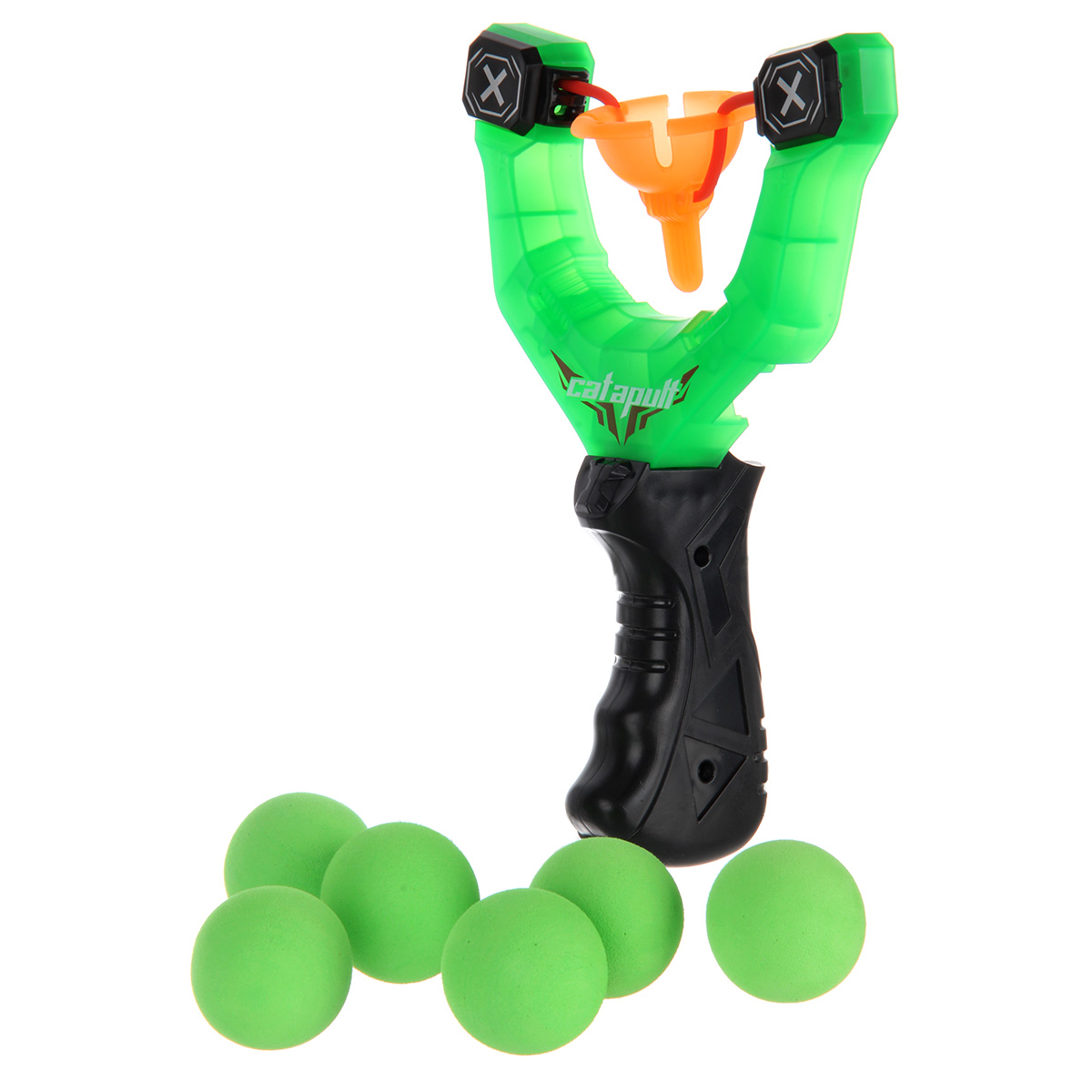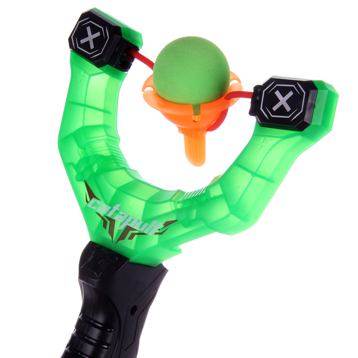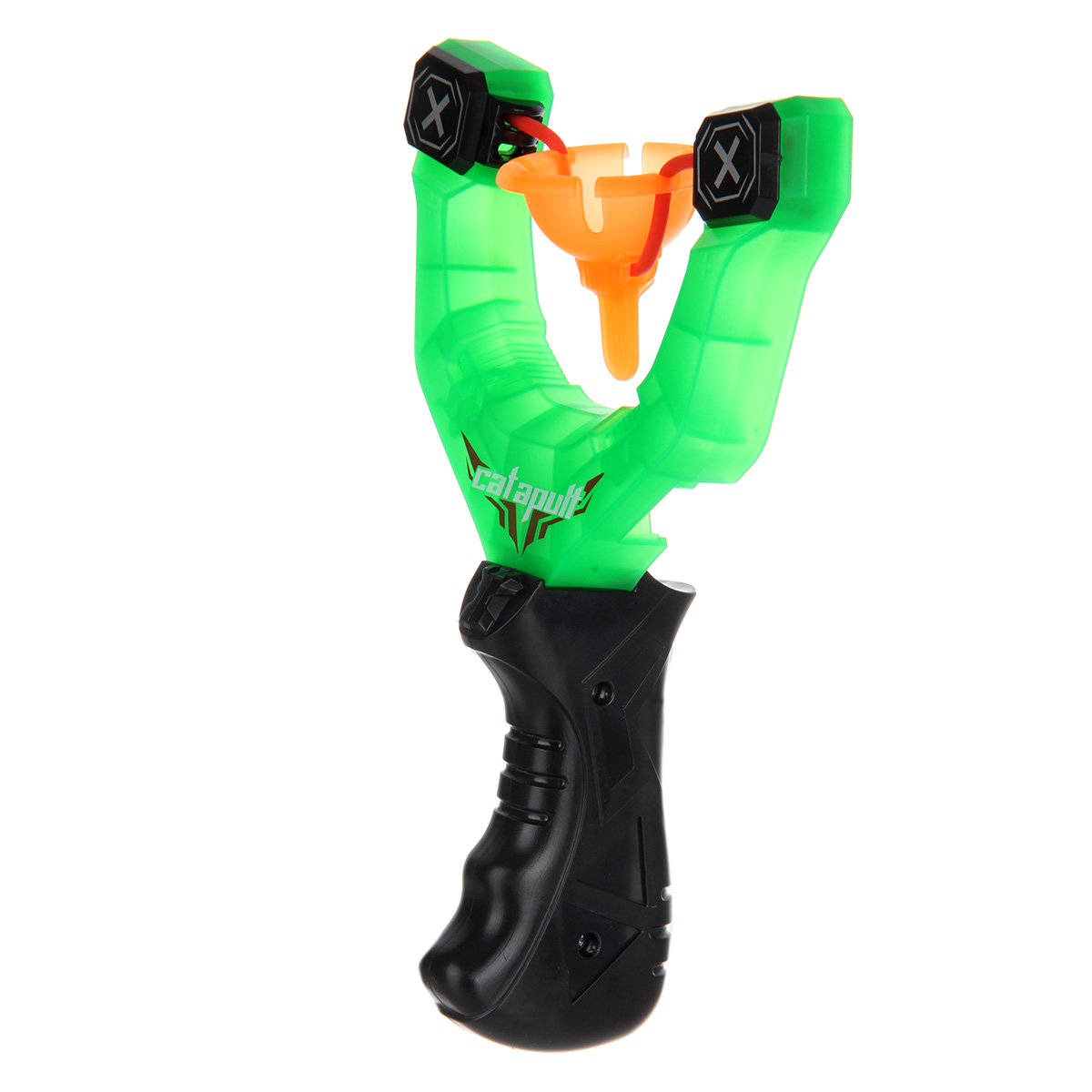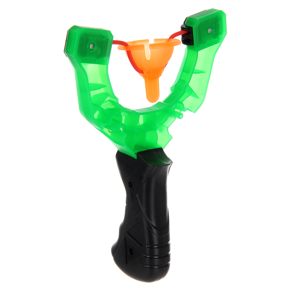 Упор на резинке. Вставьте шарик в упор. Оттяните упор на себя, держа за язычок. Отпустите, шарик полетит вперед. Шарики мягкие, безопасные снаряды. Рукоять комфортно ложится в руку, удобно держать.