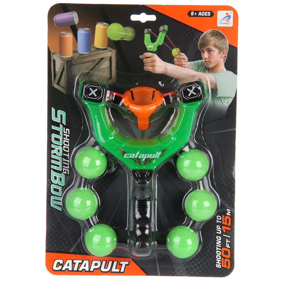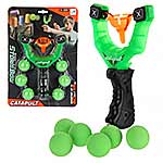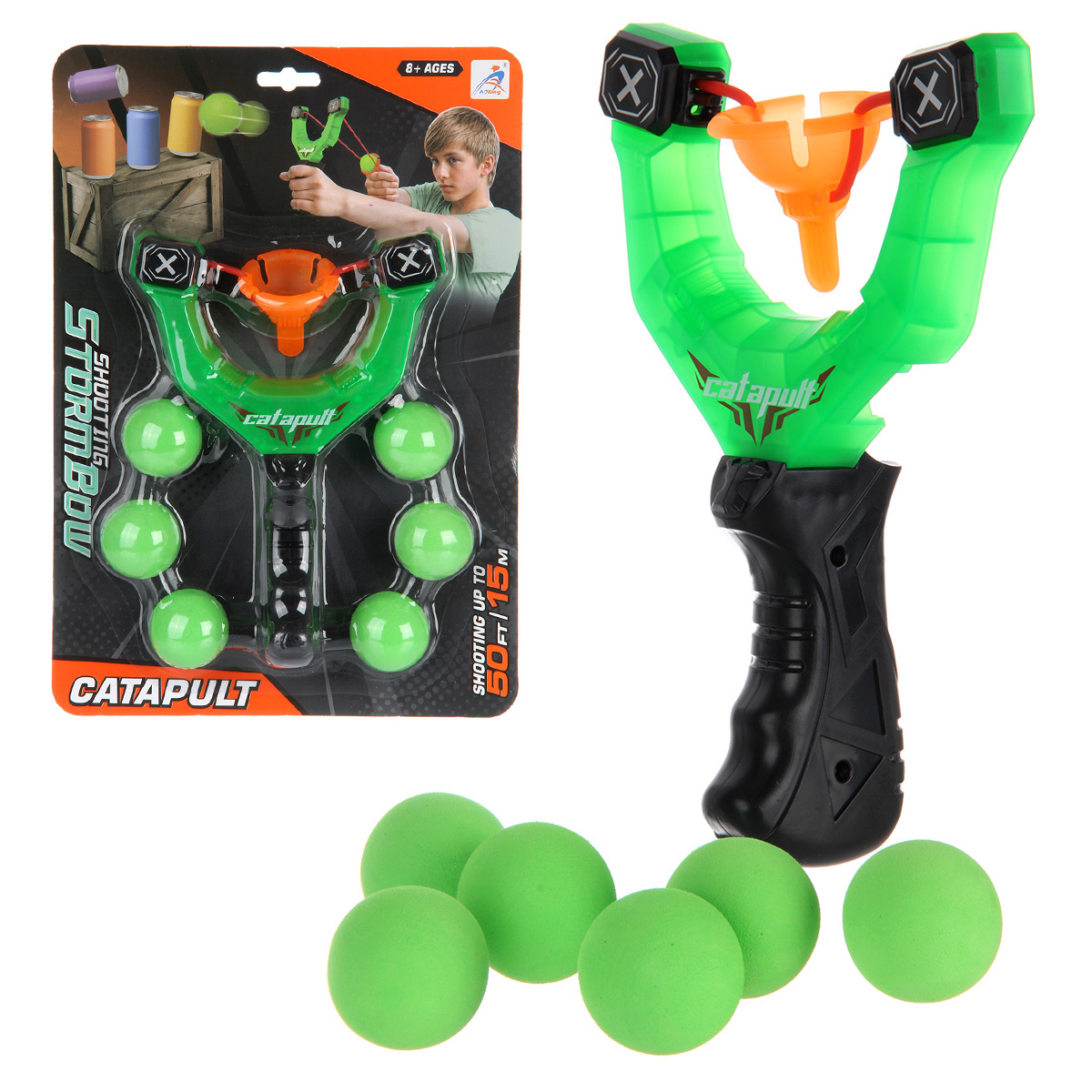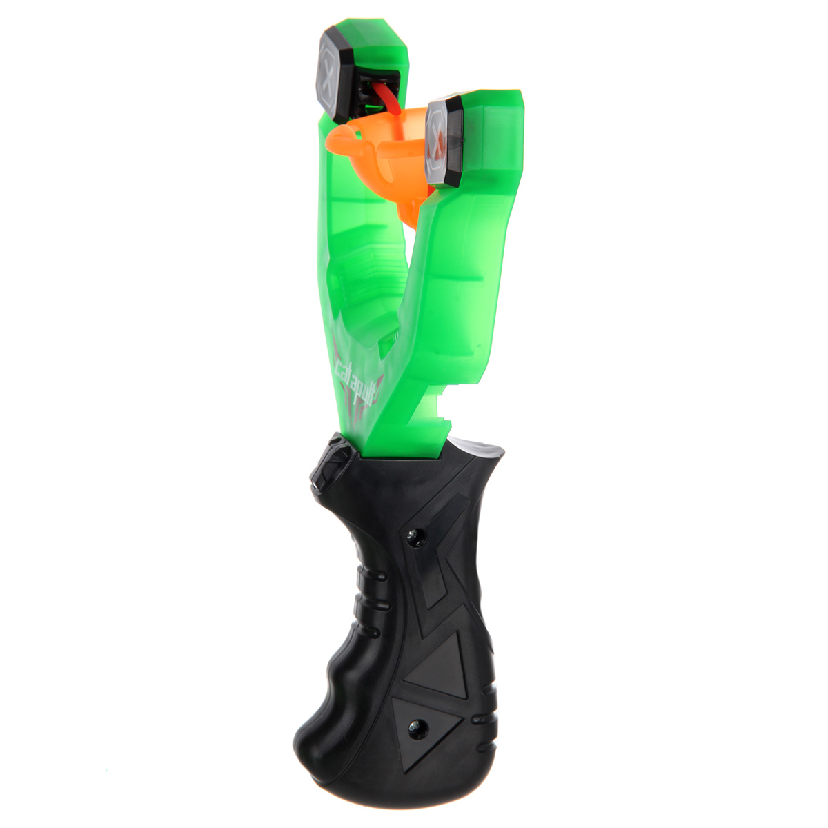 Упор на резинке. Вставьте шарик в упор. Оттяните упор на себя, держа за язычок. Отпустите, шарик полетит вперед. Шарики мягкие, безопасные снаряды. Рукоять комфортно ложится в руку, удобно держать.