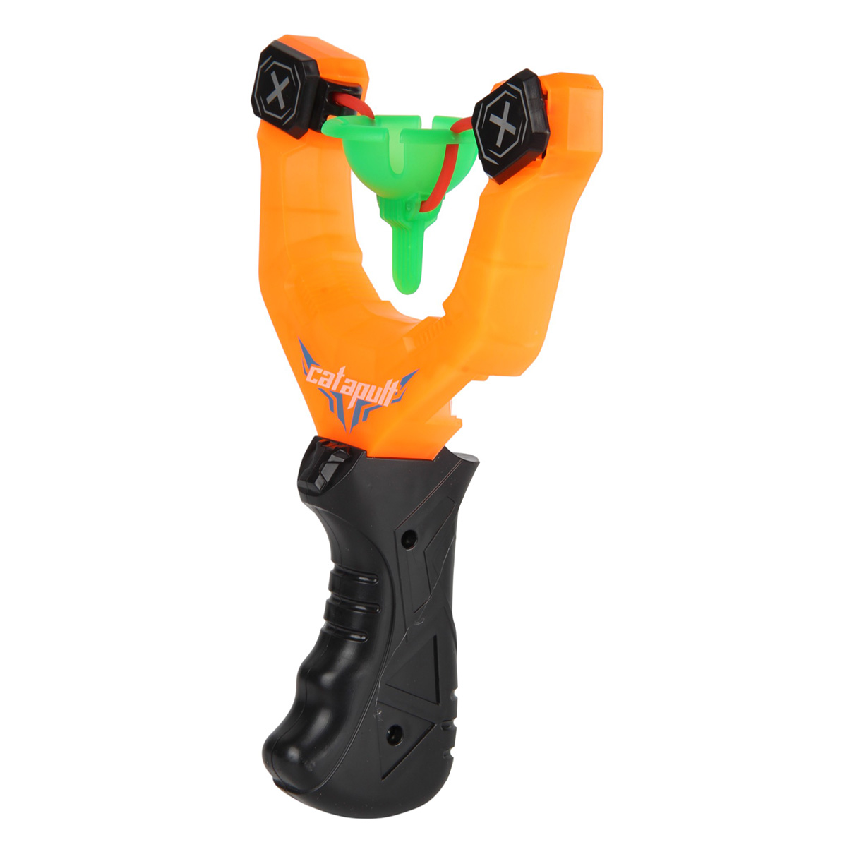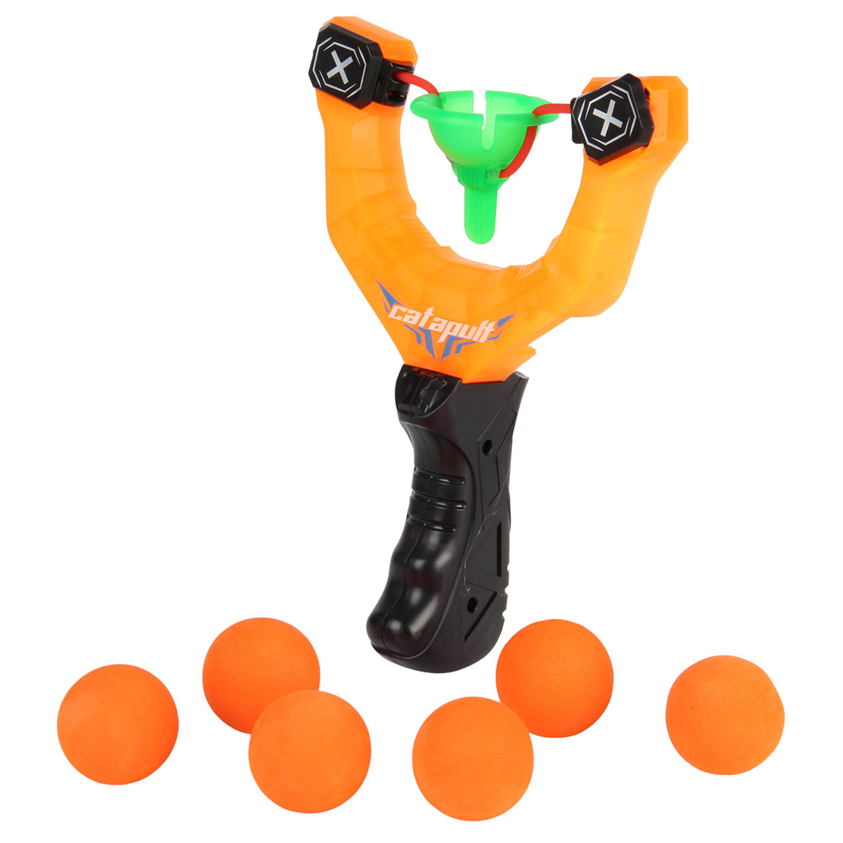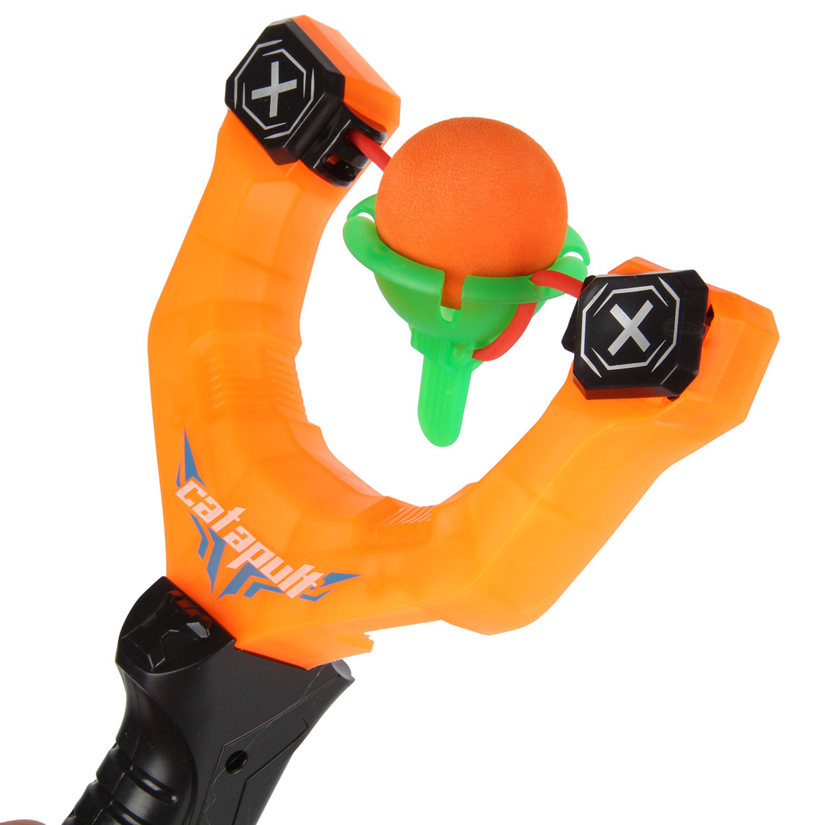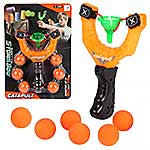 Упор на резинке. Вставьте шарик в упор. Оттяните упор на себя, держа за язычок. Отпустите, шарик полетит вперед. Шарики мягкие, безопасные снаряды. Рукоять комфортно ложится в руку, удобно держать.