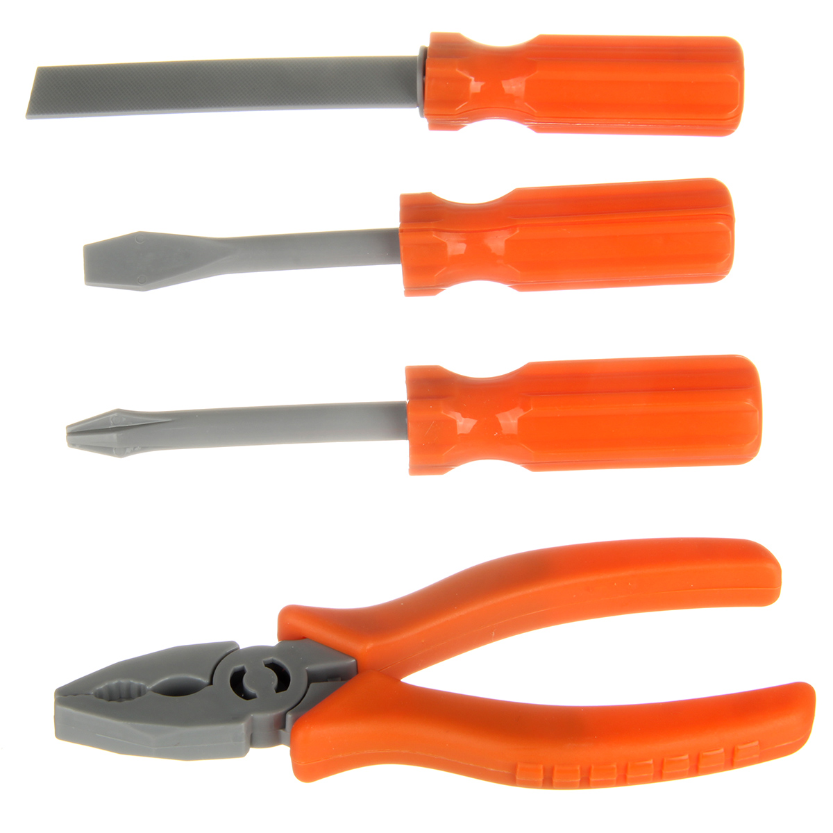 Игровой набор с игрушечными детскими инструментами изготовлен из прочных и безопасных материалов.