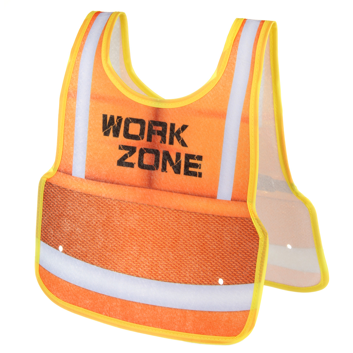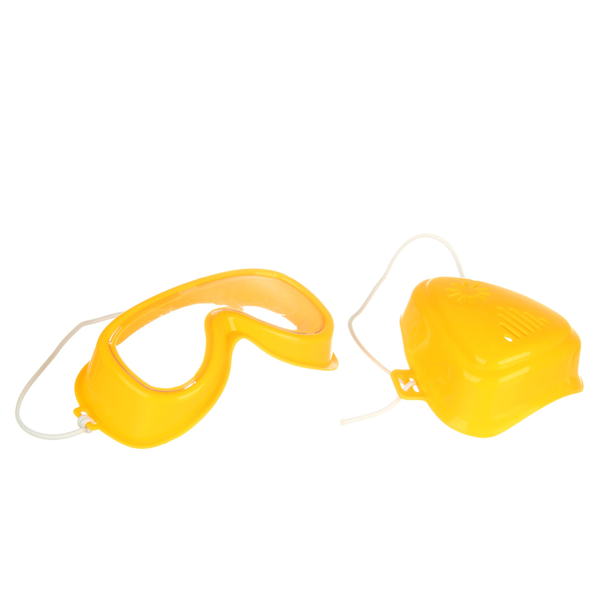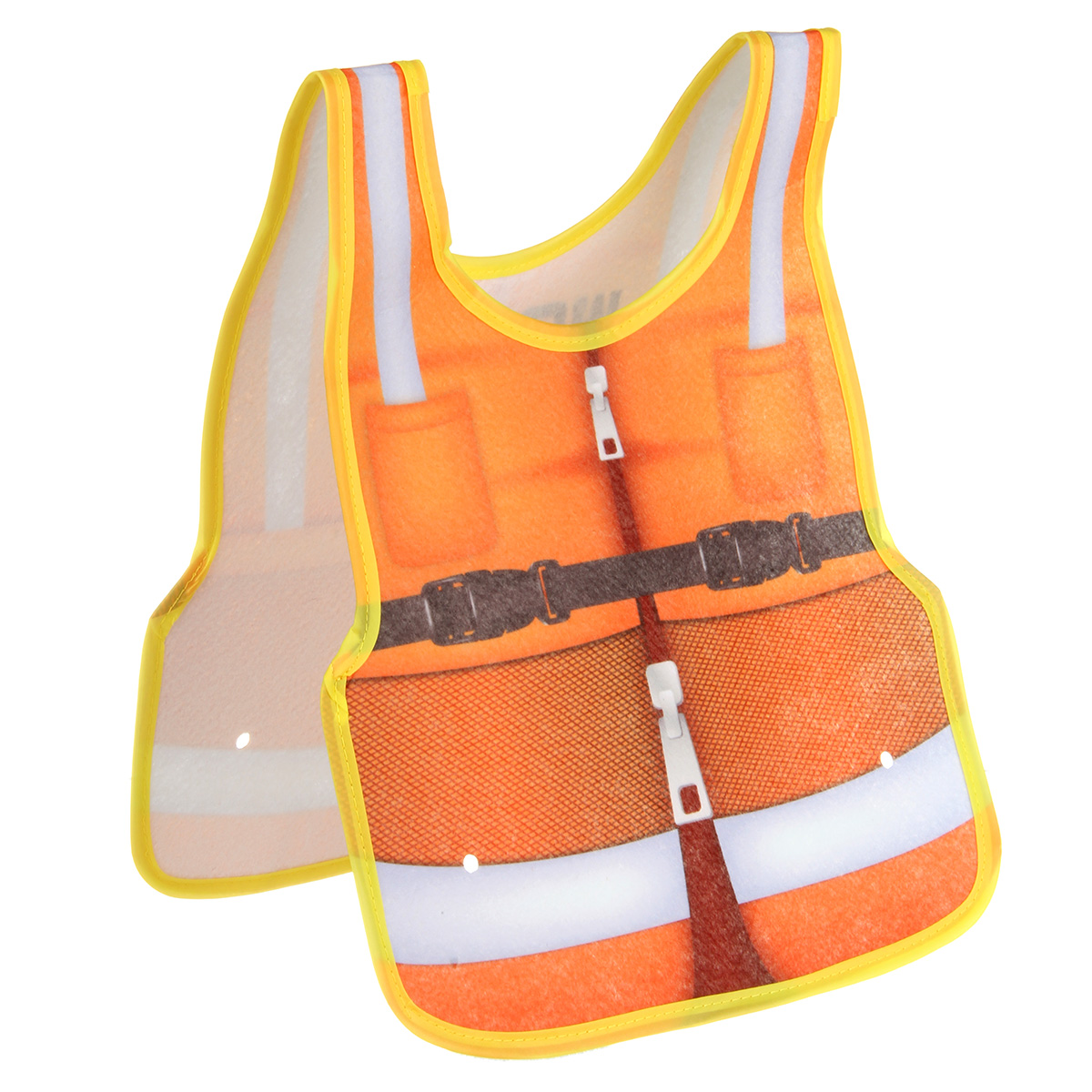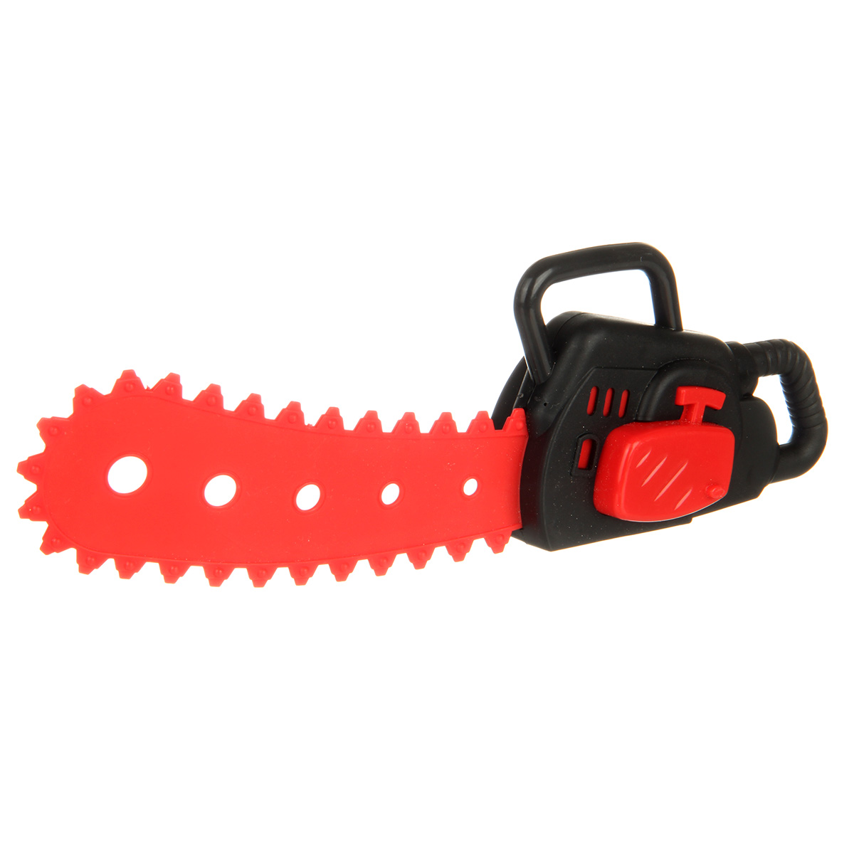 В комплекте жилет, игрушка шуруповерт с 2 насадками, игрушка бензопила, респиратор, очки, пассатижи, пила, клещи, 4 элемента для скрутки, 2 болта, 2 гайки, 2 ленты, каска.
