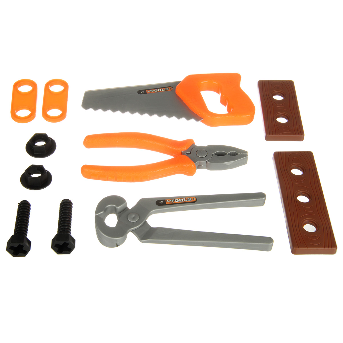 Набор инструментов детский изготовлен из прочных и долговечных материалов.