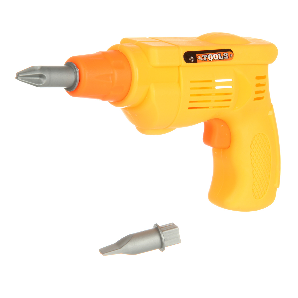 Игрушечный инструмент выполнен в реалистичном дизайне, яркой расцветке.