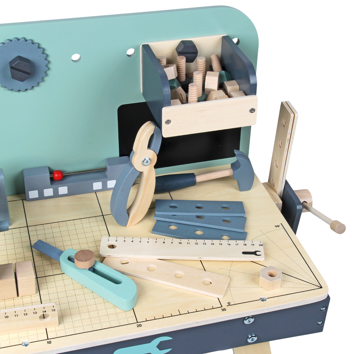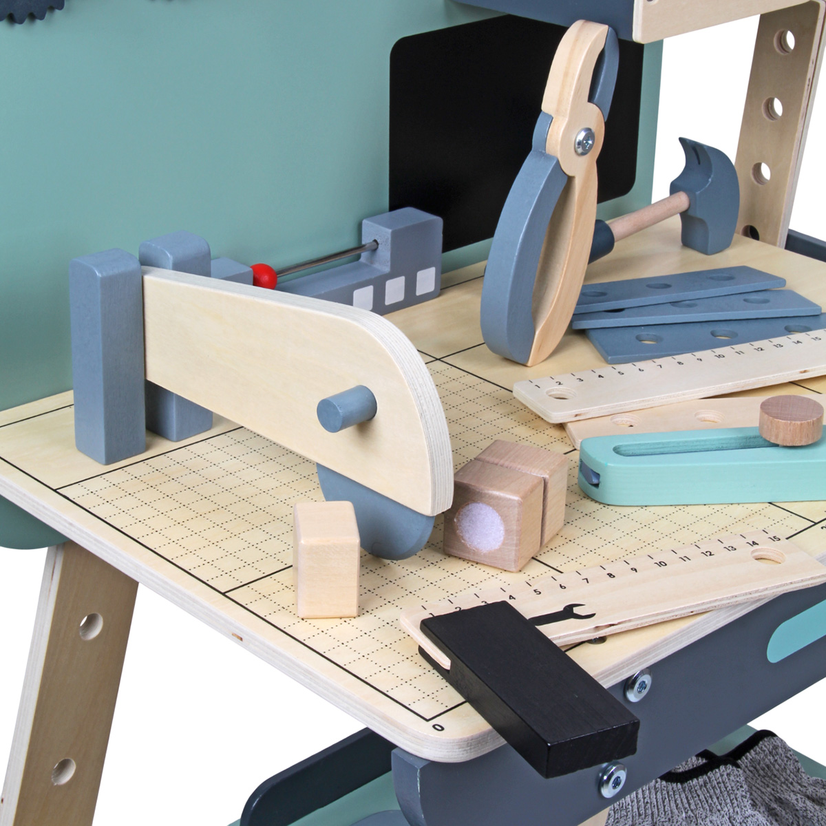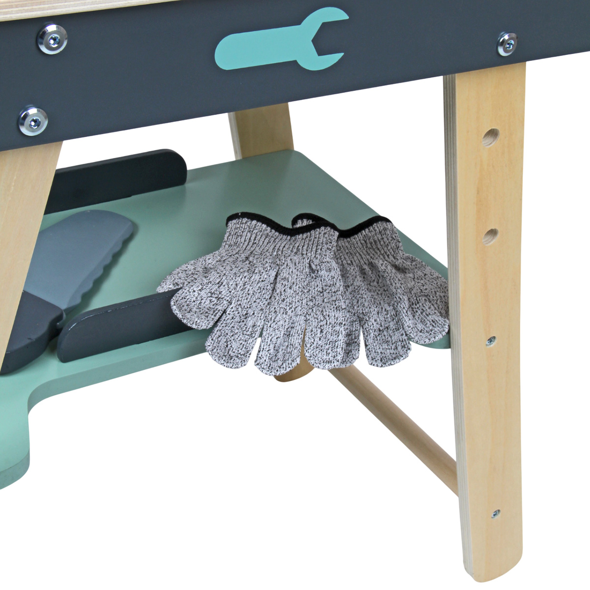 Деревянный верстак с продуманной системой крепежа, долговечность и надежность конструкции, разные игровые зоны.