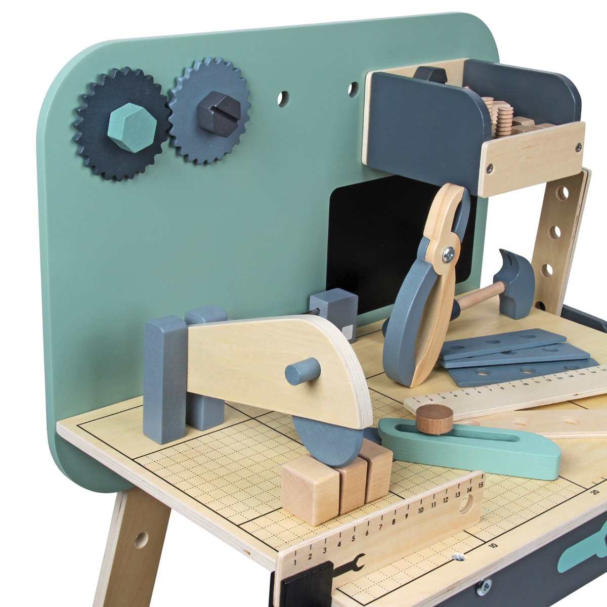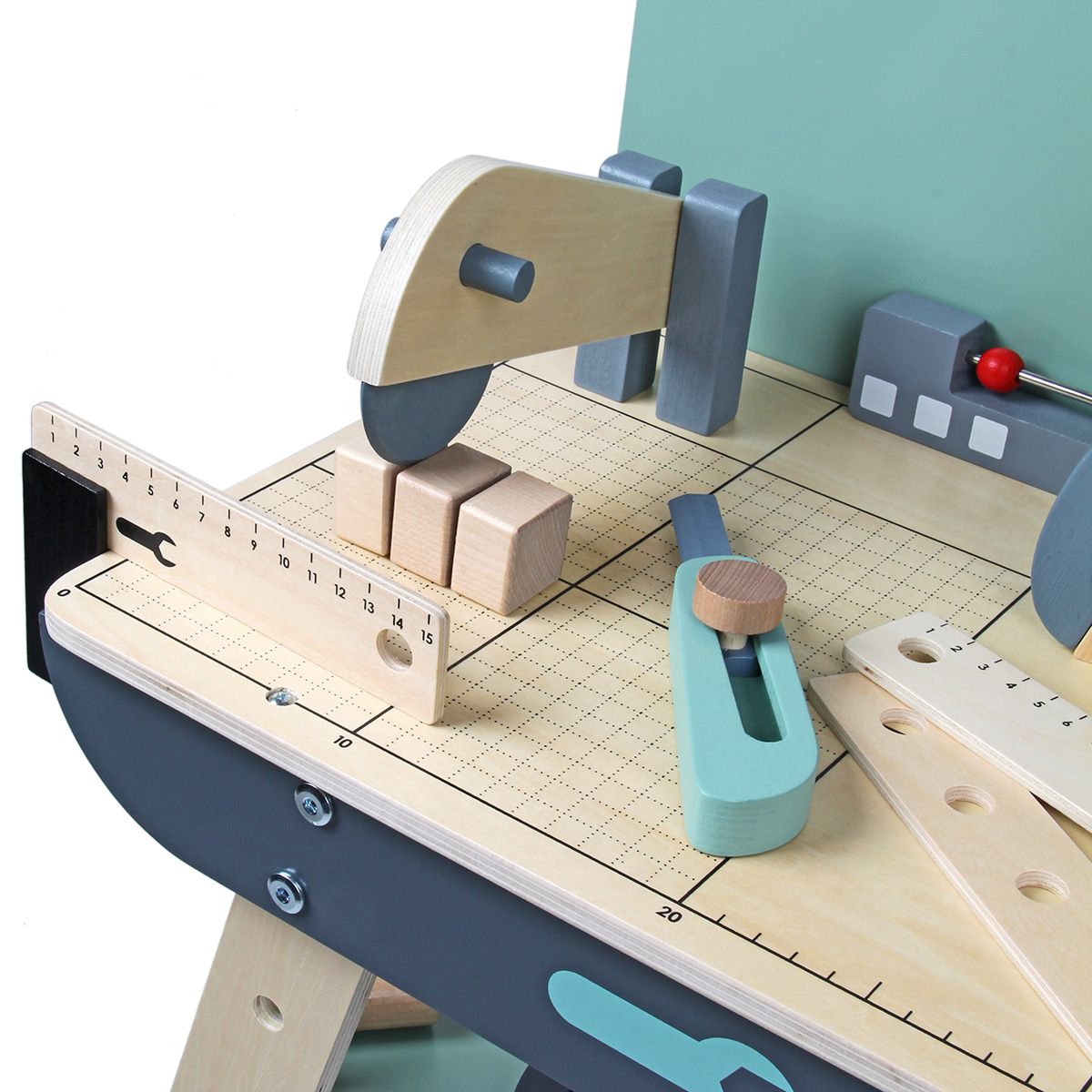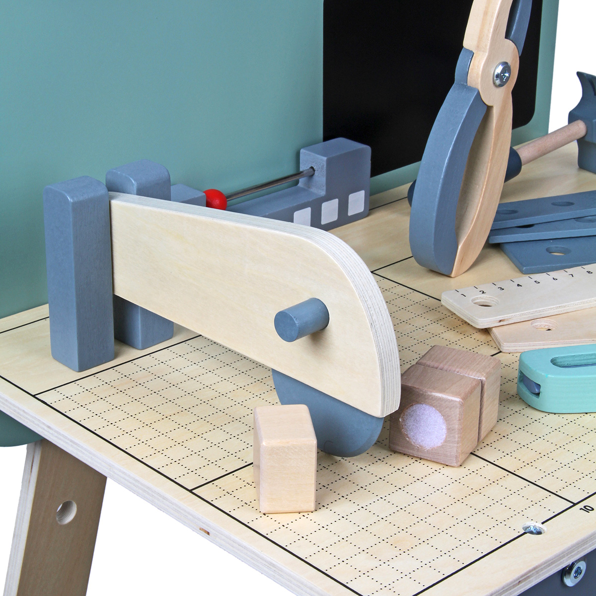 Деревянный верстак с продуманной системой крепежа, долговечность и надежность конструкции, разные игровые зоны.