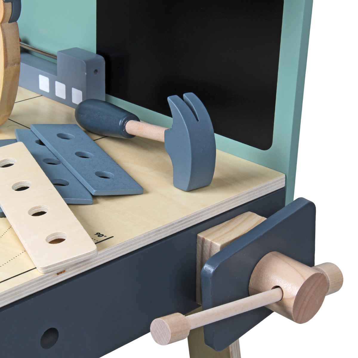 Детская мастерская изготовлена из МДФ, древесины, металла, текстиля.