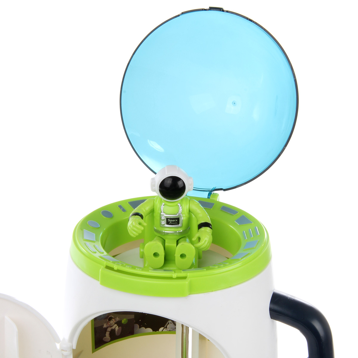 Можно посадить космонавта в кабину, площадка с креслом опускается вниз вручную.