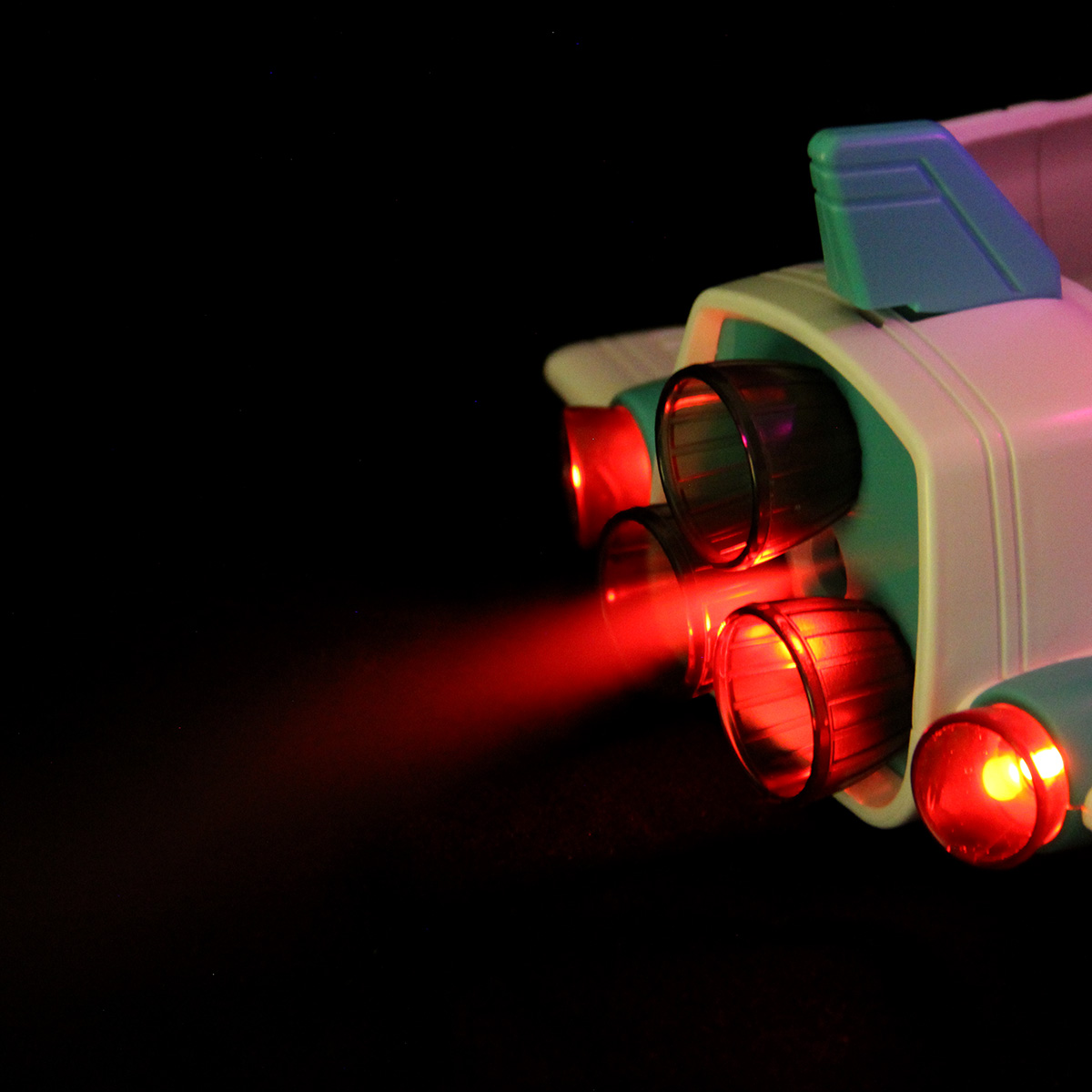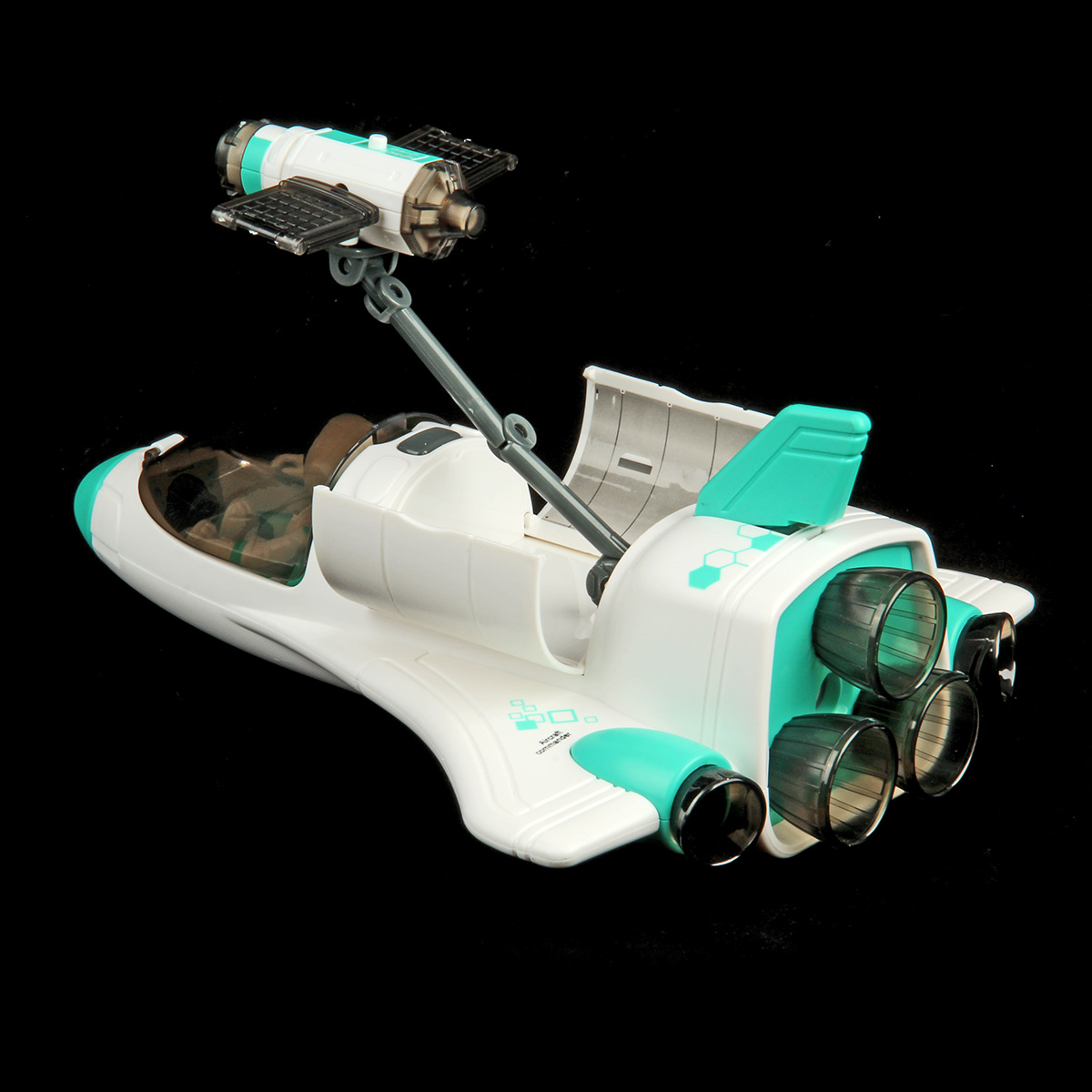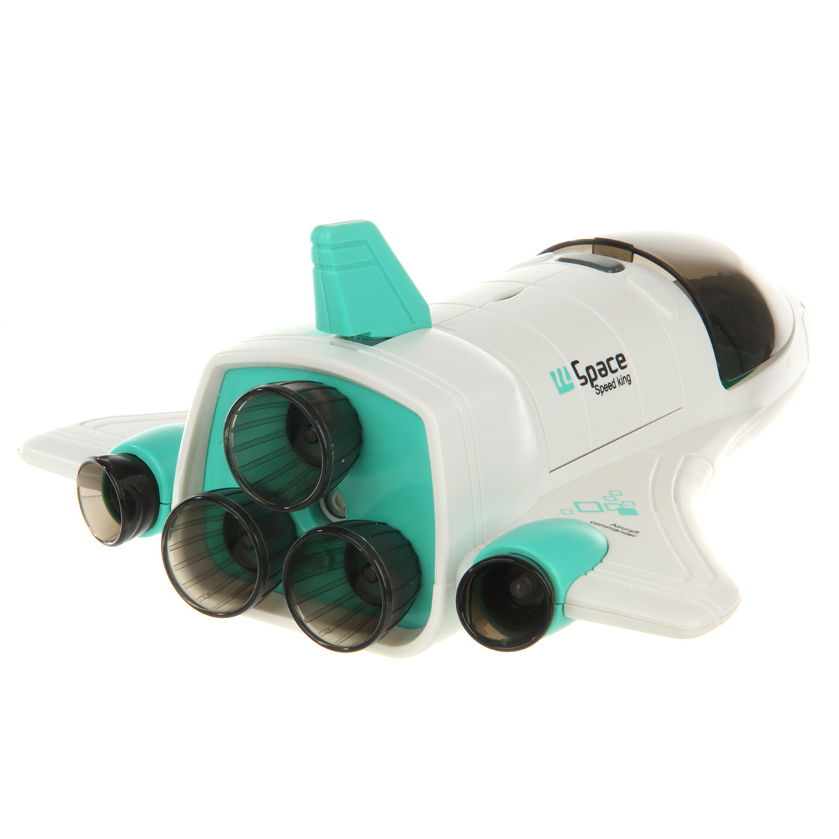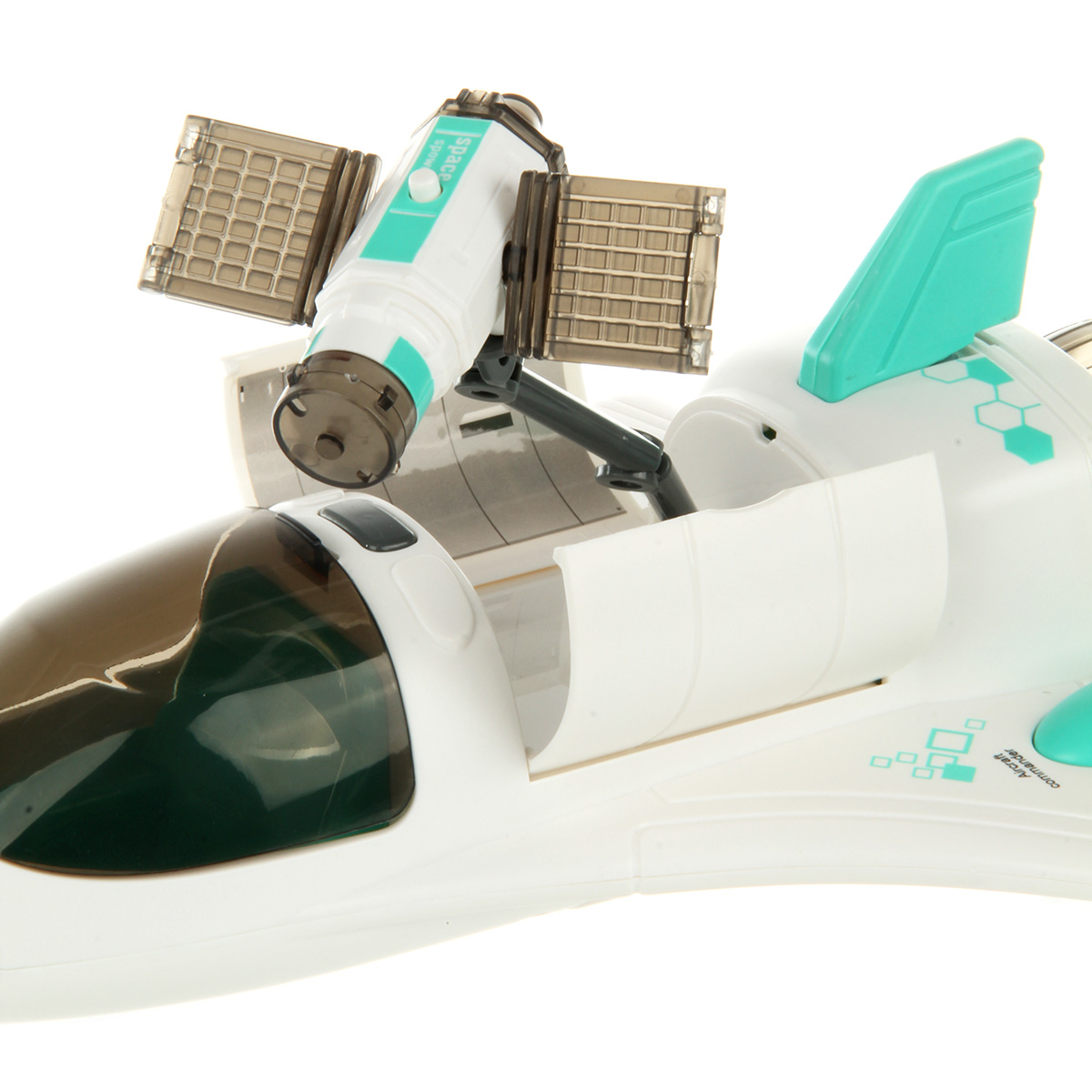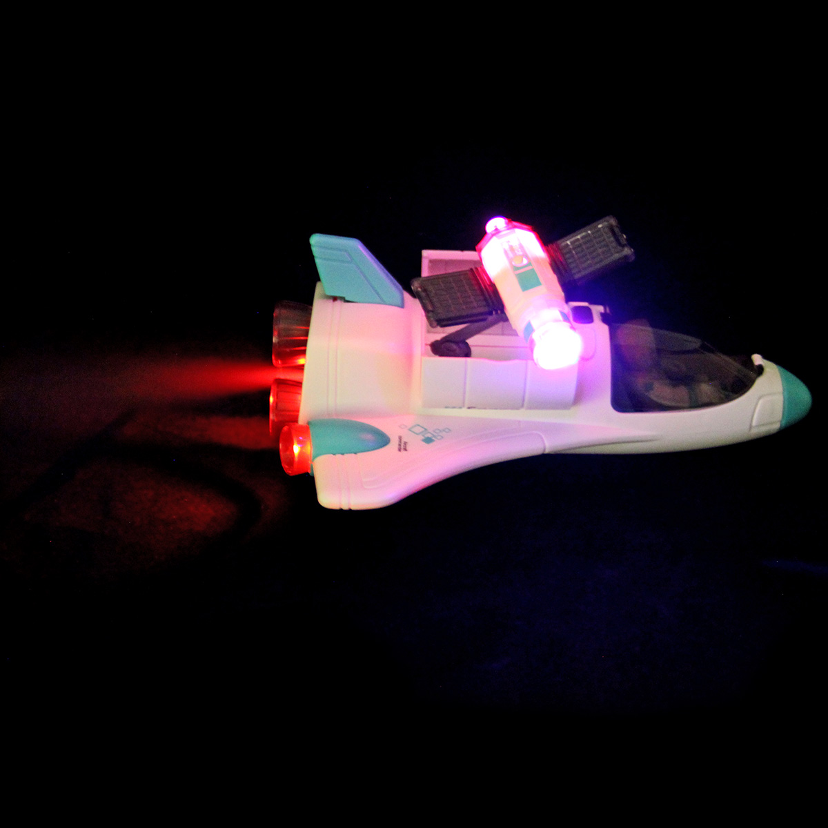Функционал ракеты. При нажатии кнопки на корпусе ракета издает звук взлета, 3 лампочки в задней части, где сопла, подсвечиваются красным, из отверстия с металлическим фрагментом идет пар, катается вперед и назад, кабина открывается, можно посадить внутрь космонавта. Открываются двери отсека на корпусе, поднимается и раскладывается манипулятор, манипулятор крутится. На манипуляторе можно закрепить космонавта.