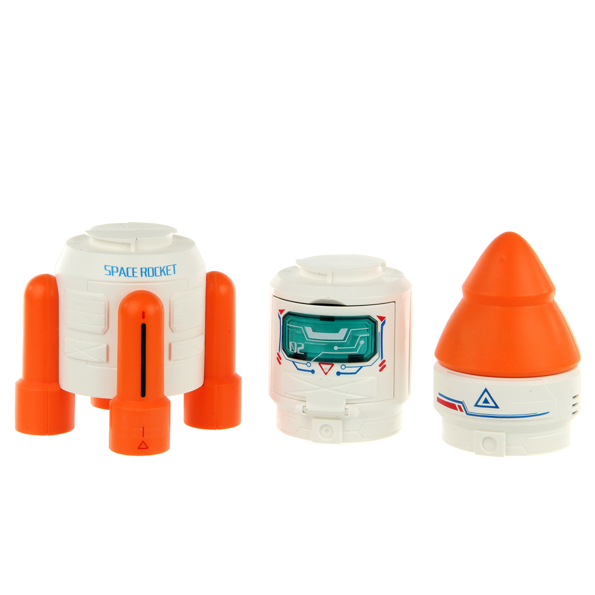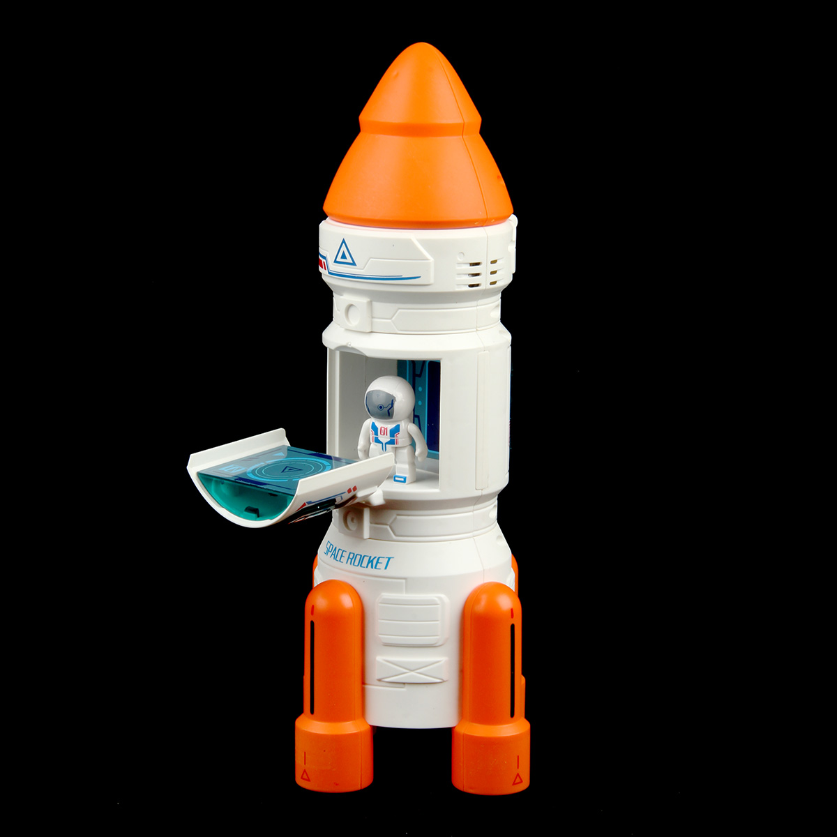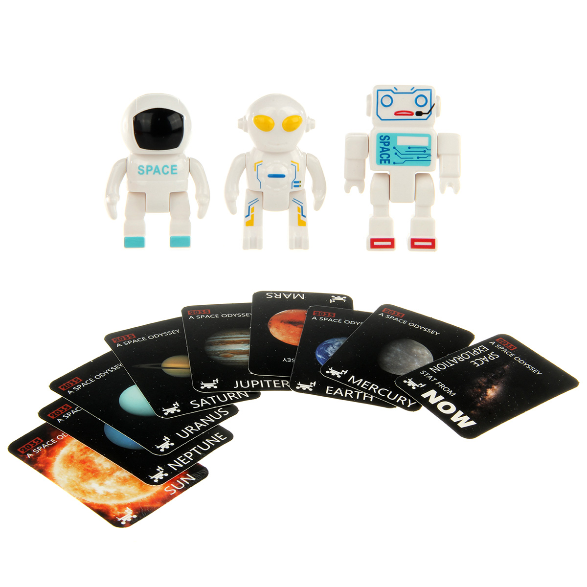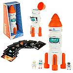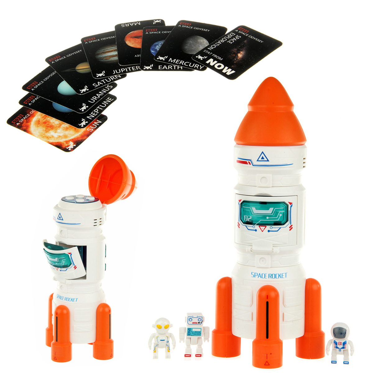 В комплекте игрушка космический корабль, 3 космонавта, 9 карточек с изображением планет.