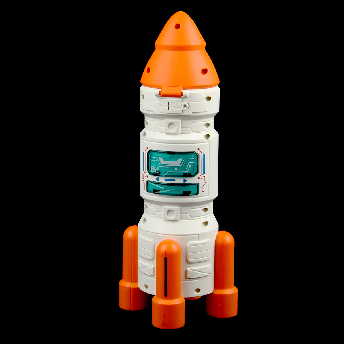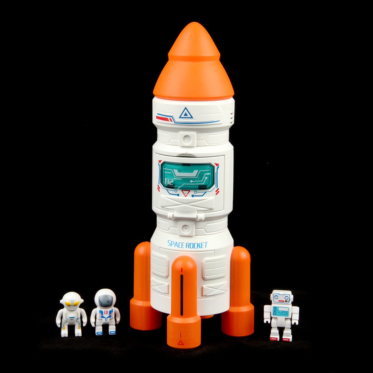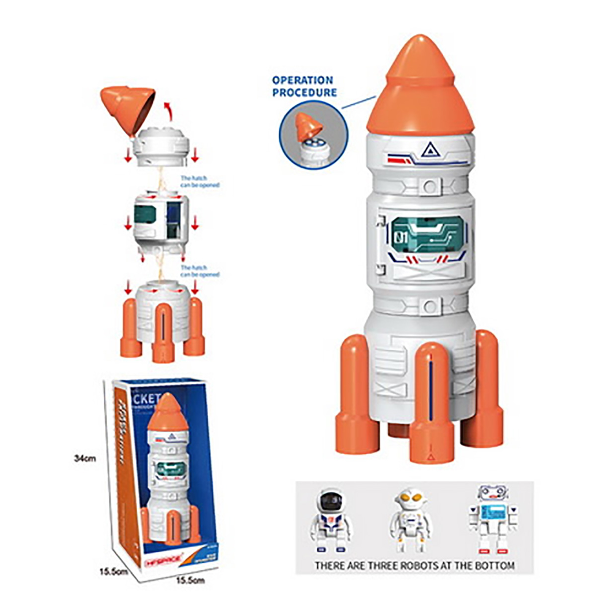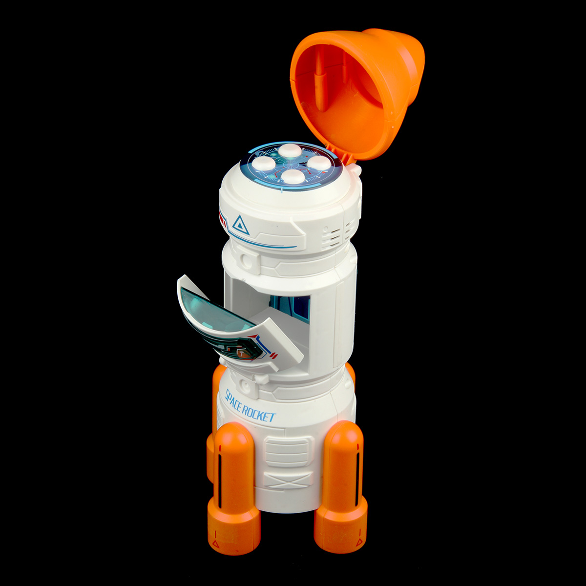 В комплекте игрушка космический корабль, 3 космонавта, 9 карточек с изображением планет.