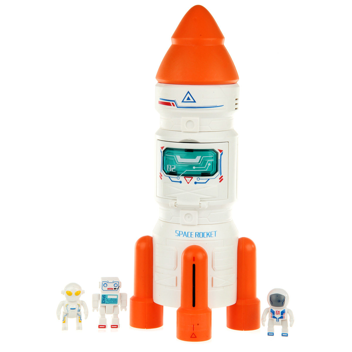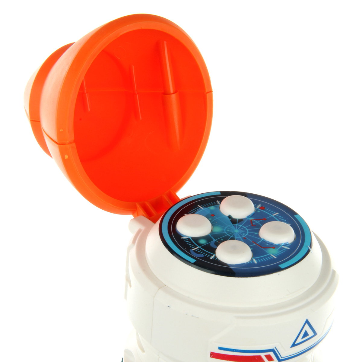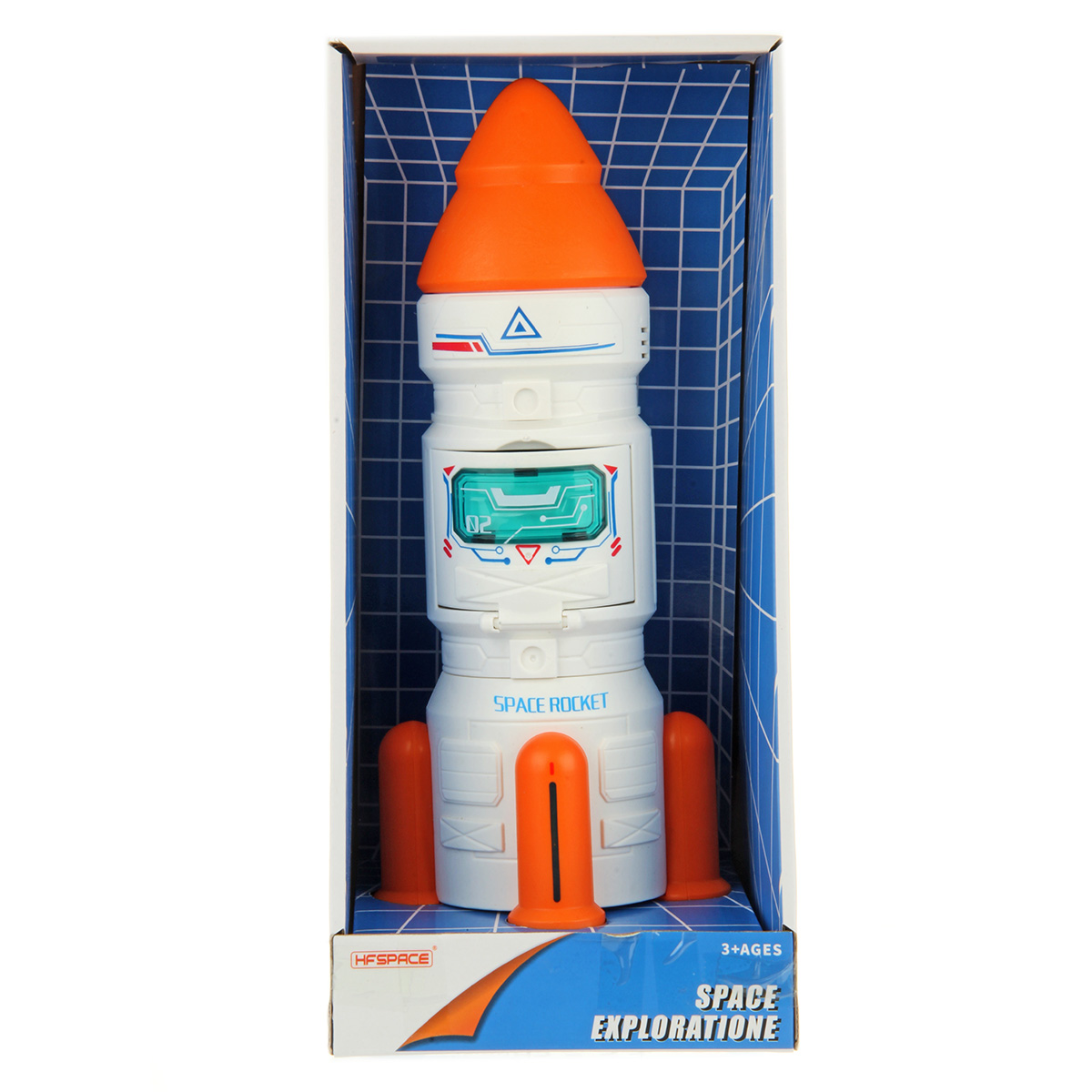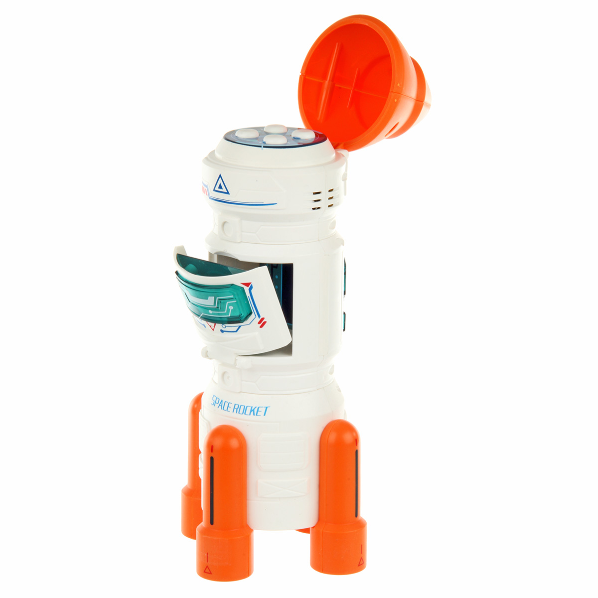 В комплекте игрушка космический корабль, 3 космонавта, 9 карточек с изображением планет.