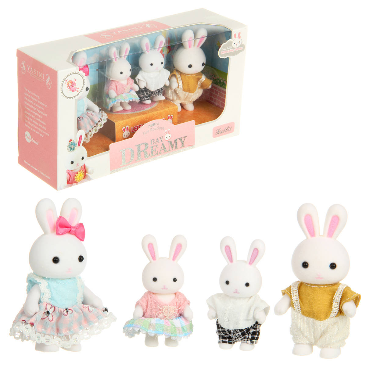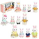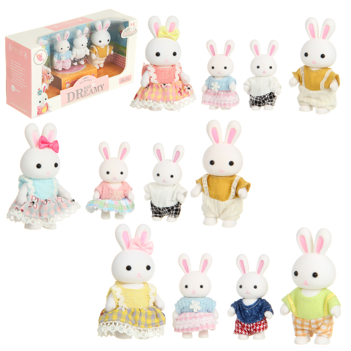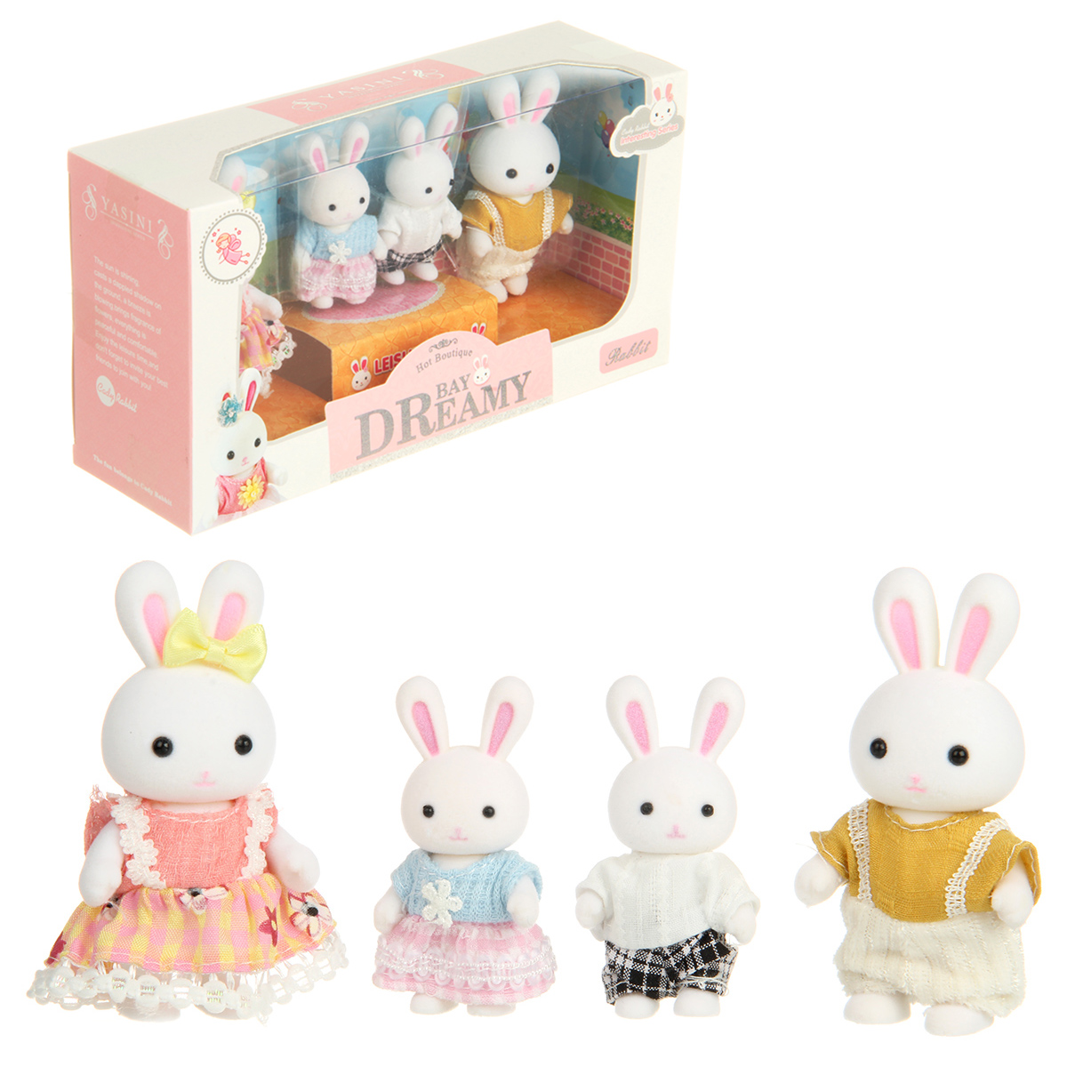 В комплекте семья зайчиков, мама, папа и двое детей.