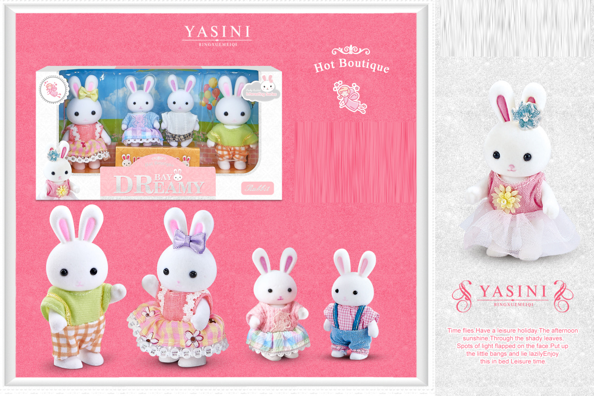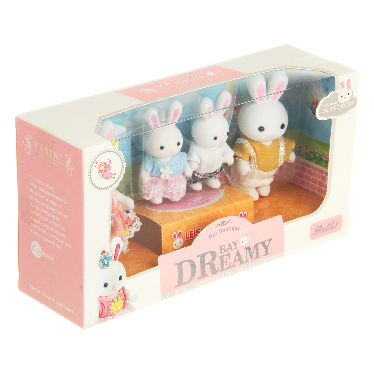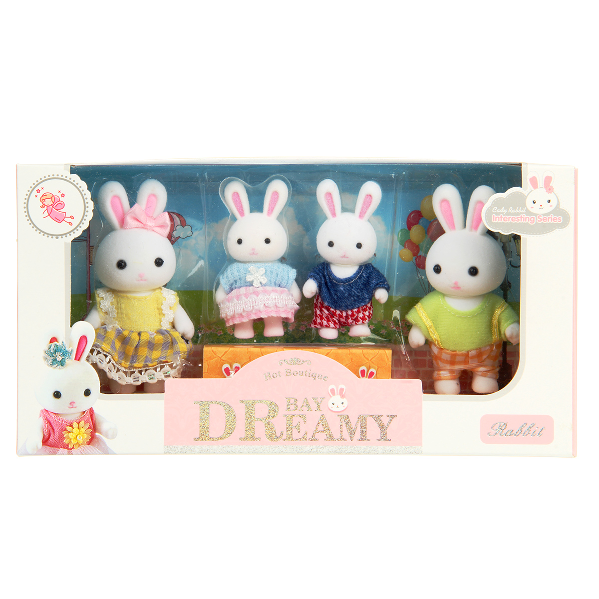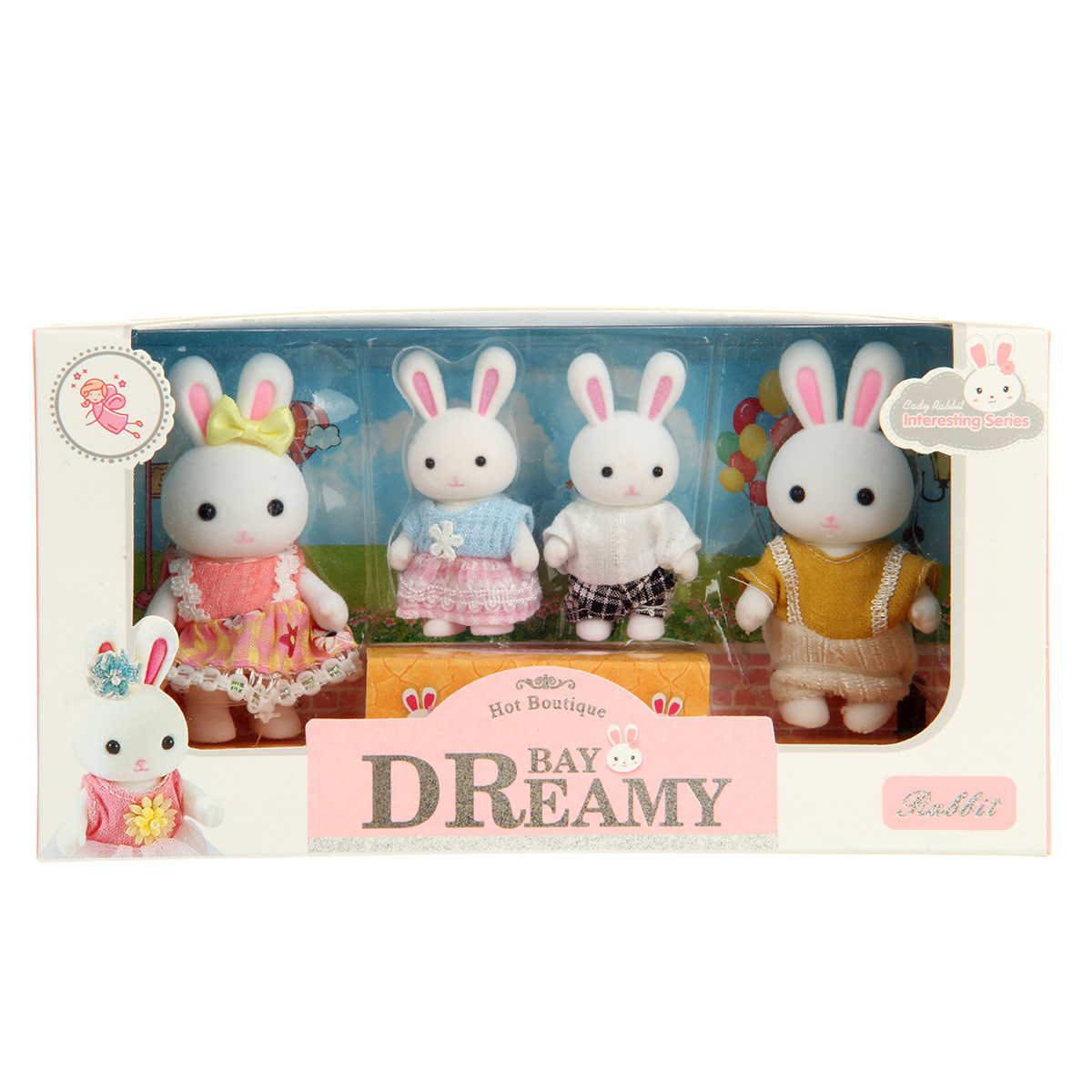 В комплекте семья зайчиков, мама, папа и двое детей.