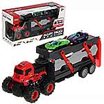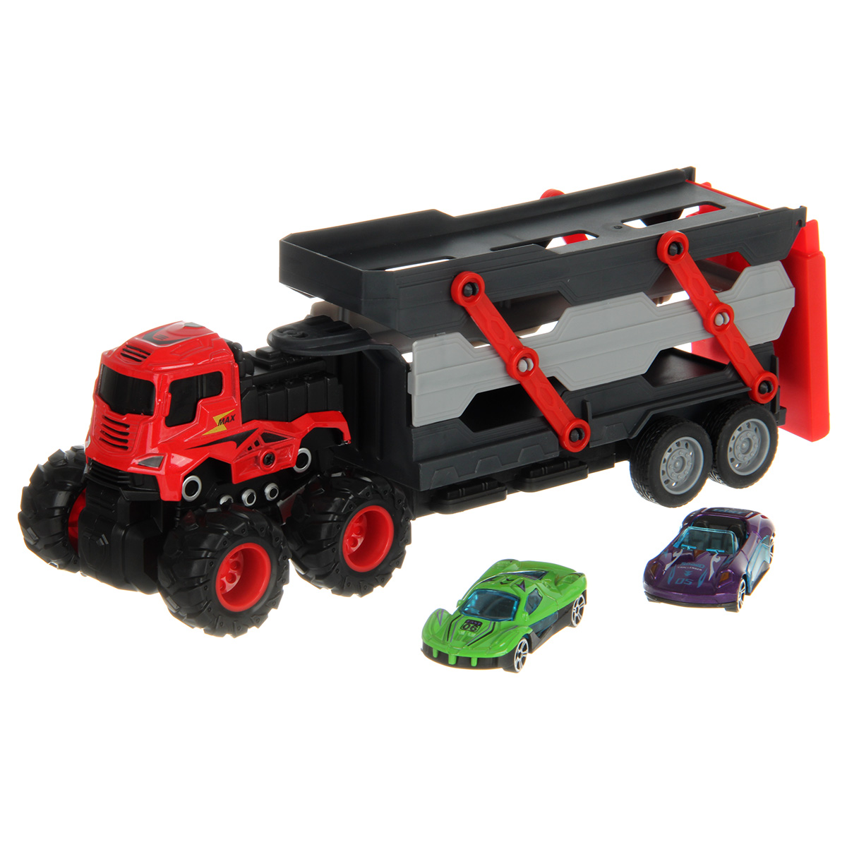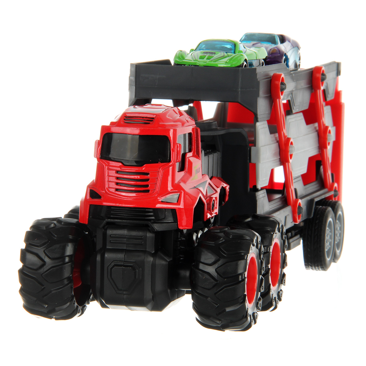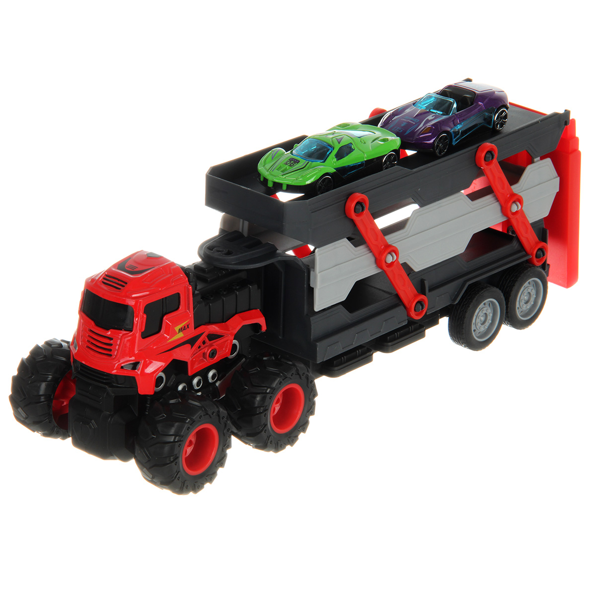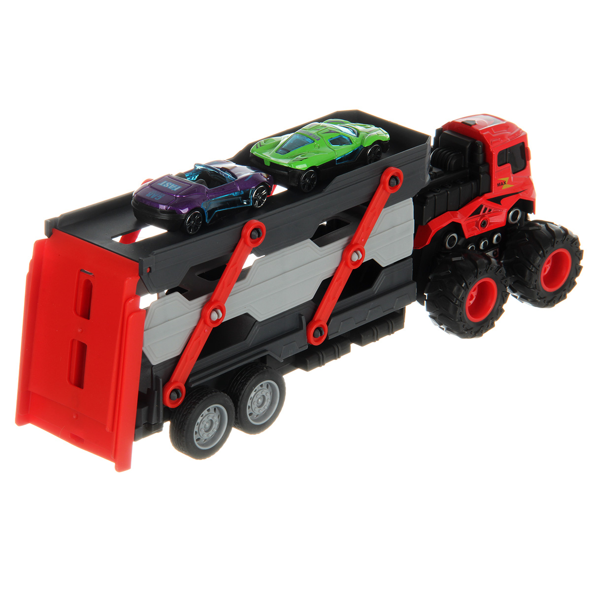 Игровой набор автовоз с фрикционным механизмом и металлическими гоночными машинками. Весь игрушечный транспорт катается вперёд и назад, платформа автовоза выдвигается, аппарель раскладывается. Детский трек для машинок изготовлен из прочных и долговечных материалов с вниманием к деталям. Оформлен в приятной расцветке.