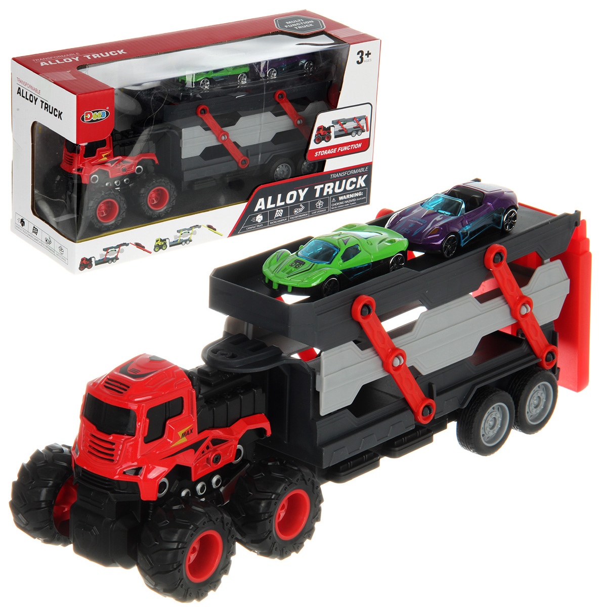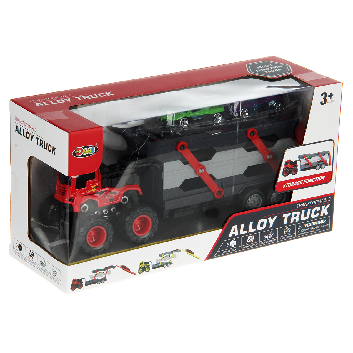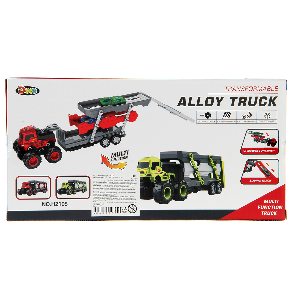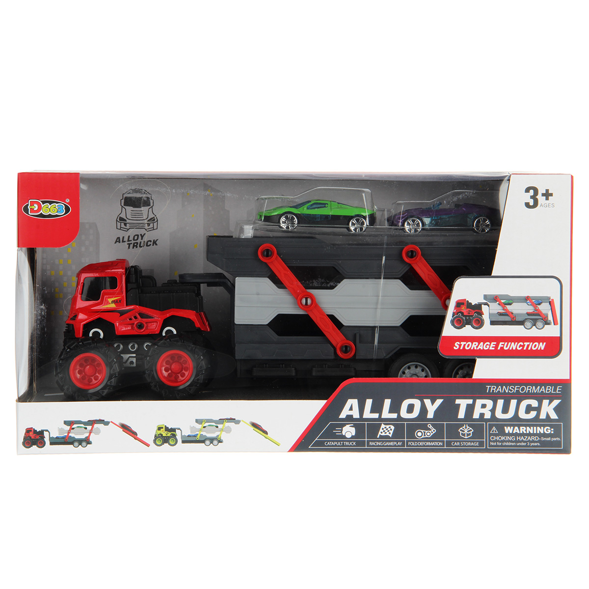 Игровой набор автовоз с фрикционным механизмом и металлическими гоночными машинками. Весь игрушечный транспорт катается вперёд и назад, платформа автовоза выдвигается, аппарель раскладывается. Детский трек для машинок изготовлен из прочных и долговечных материалов с вниманием к деталям. Оформлен в приятной расцветке.
