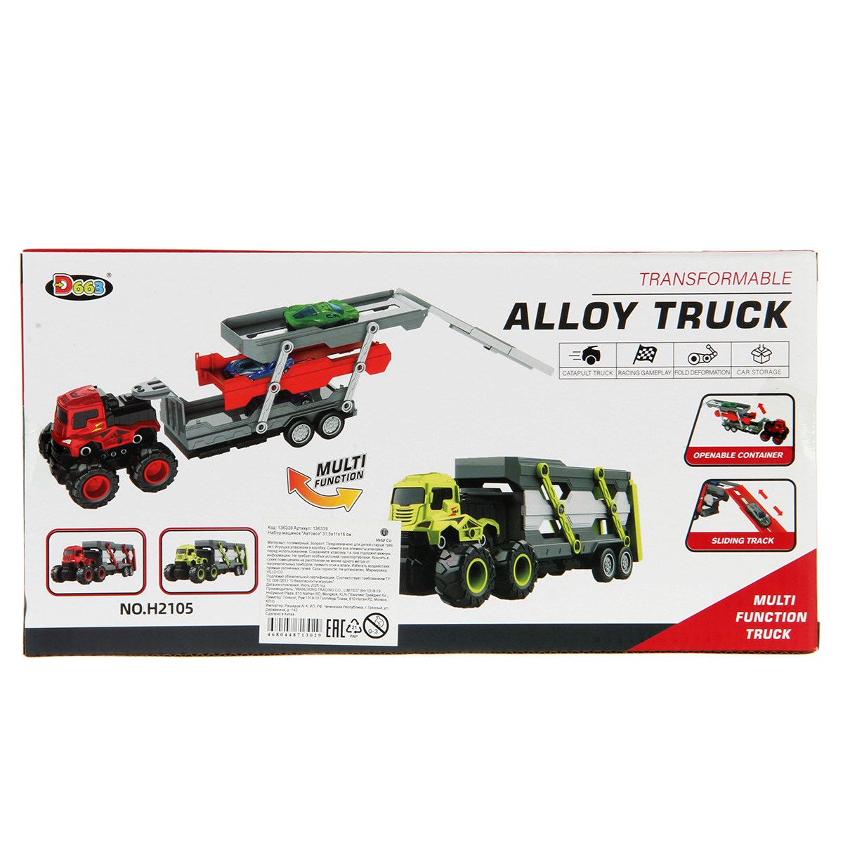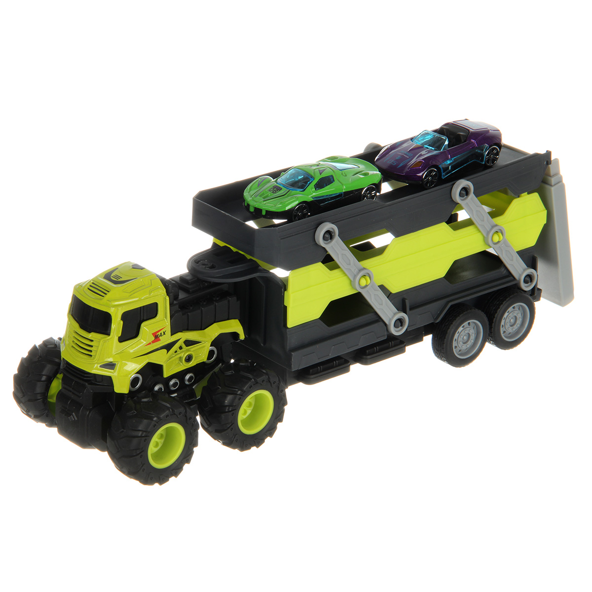 Игровой набор автовоз с фрикционным механизмом и металлическими гоночными машинками. Весь игрушечный транспорт катается вперёд и назад, платформа автовоза выдвигается, аппарель раскладывается. Детский трек для машинок изготовлен из прочных и долговечных материалов с вниманием к деталям. Оформлен в приятной расцветке.